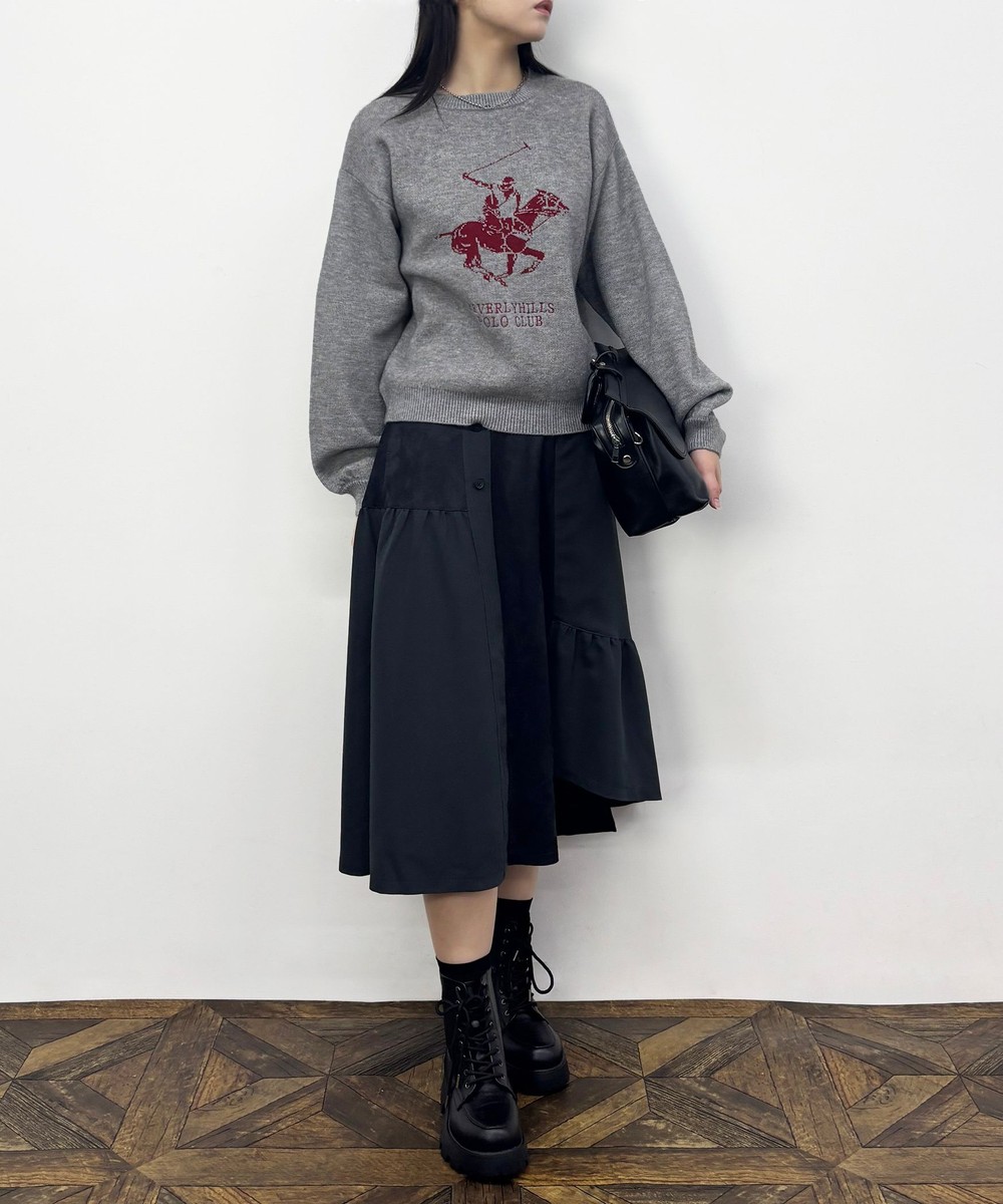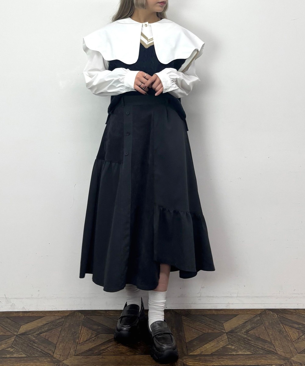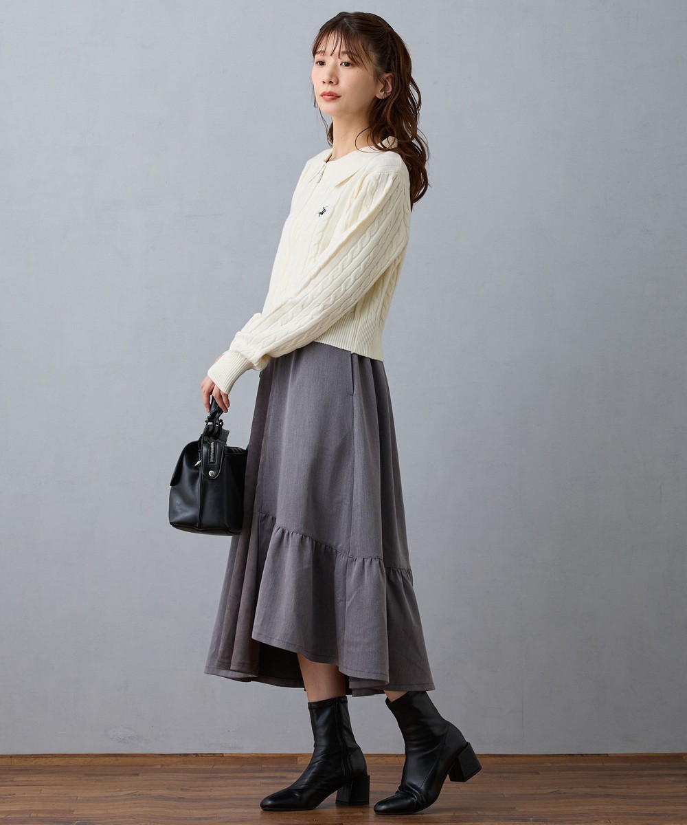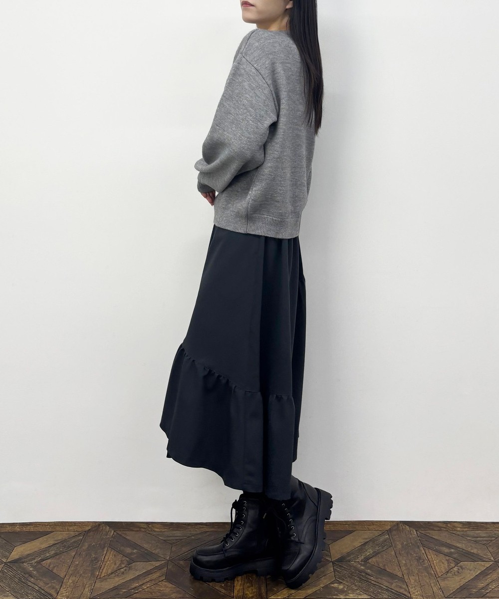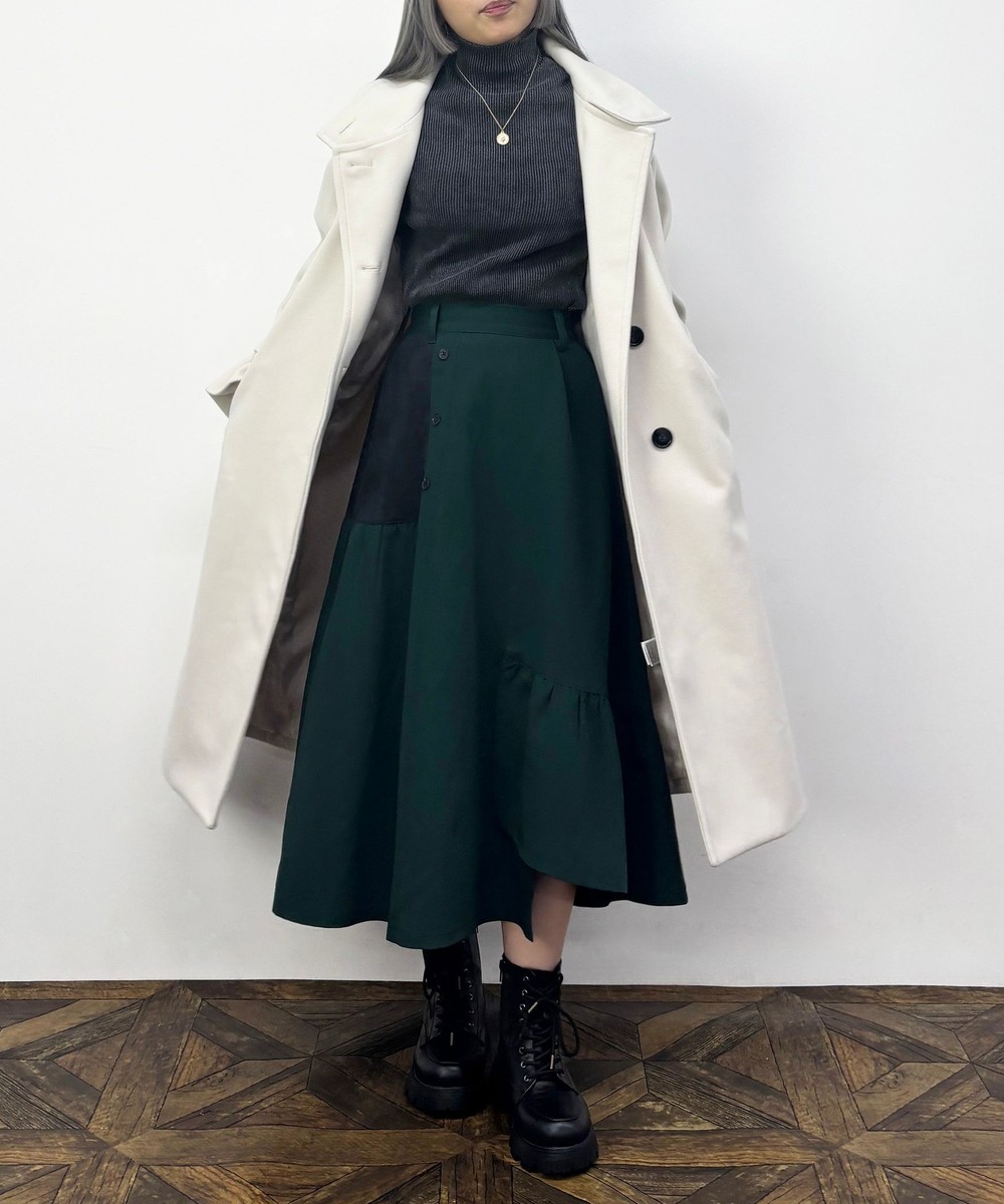 腰回りはすっきりとさせ厚手のニットとの合わせでも着ぶくれしないようにしつつも、裾はフレア分量をたっぷりととり動きのあるシルエットになるようこだわりました。