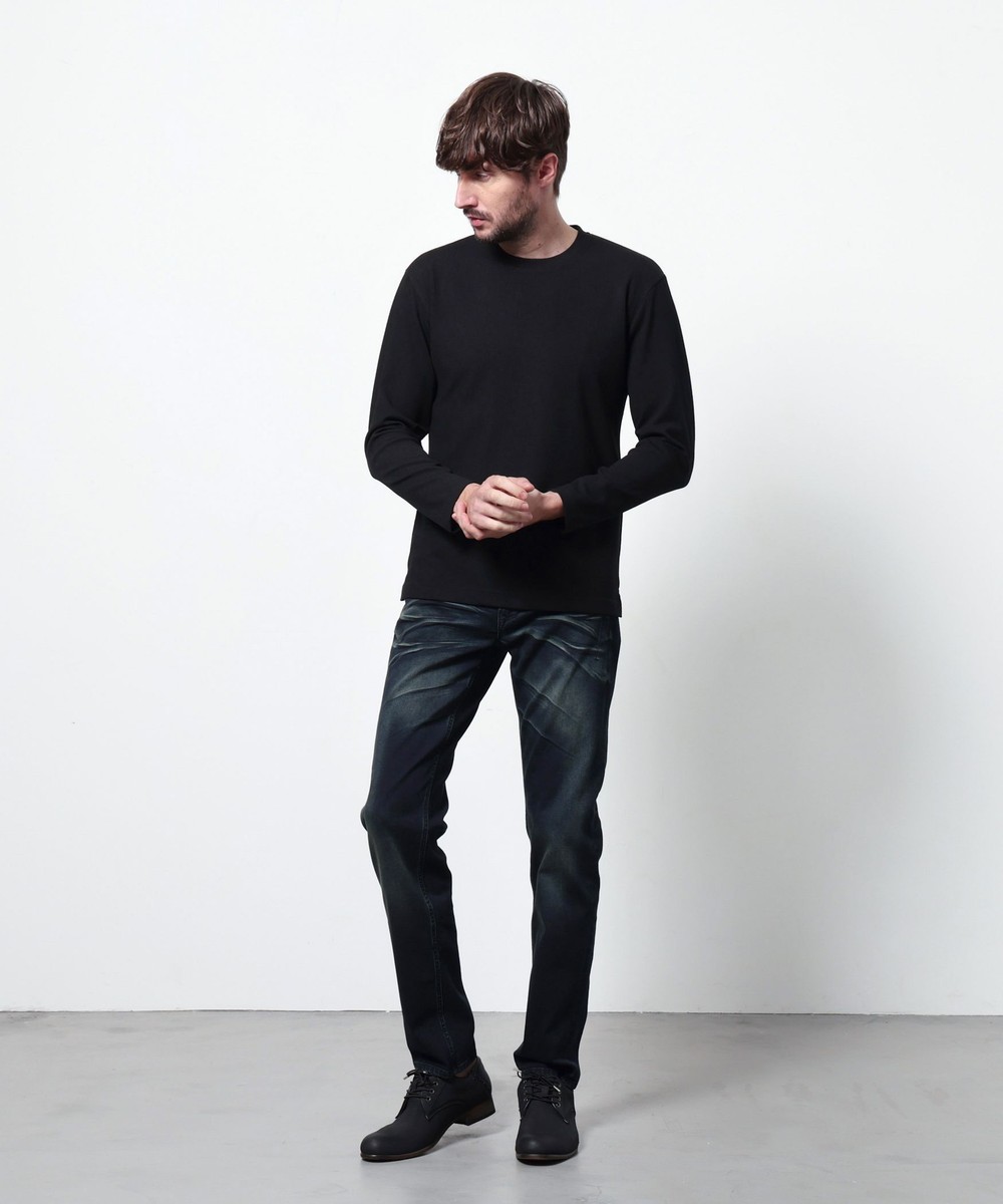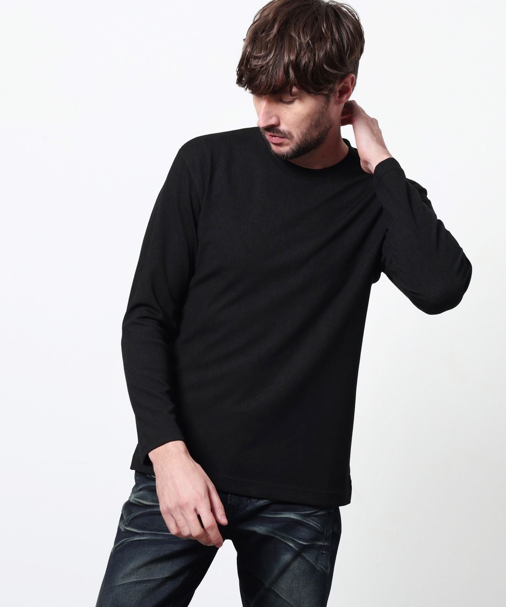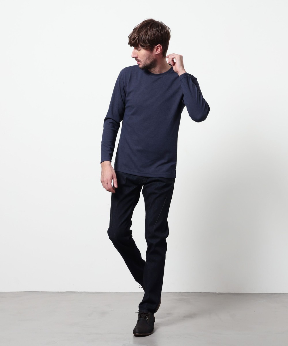 素材の特徴を生かした、シンプルなクルーネックプルオーバーデザイン。