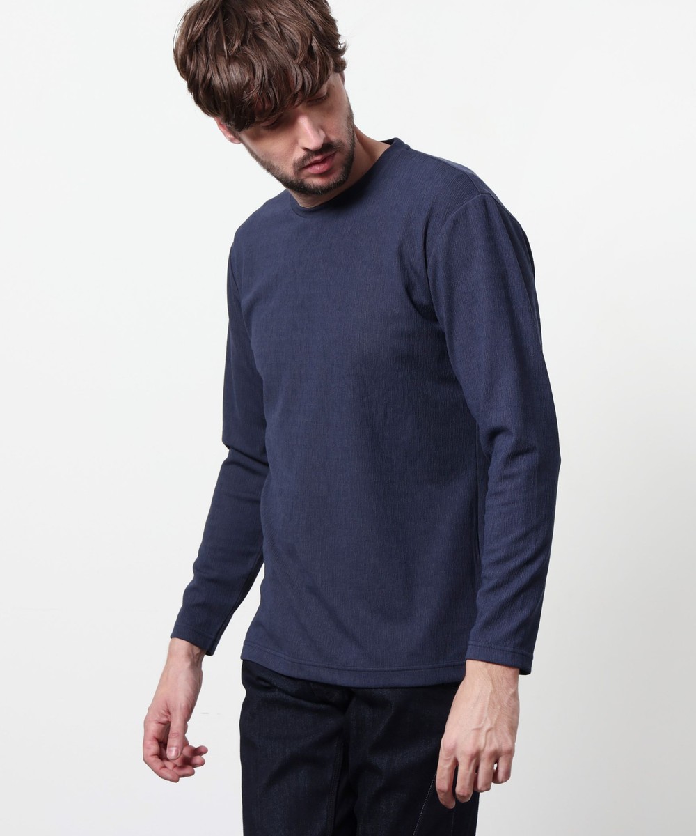 タテ方向にタック編みの様な凹凸が出ている独特な表面感が特長です。