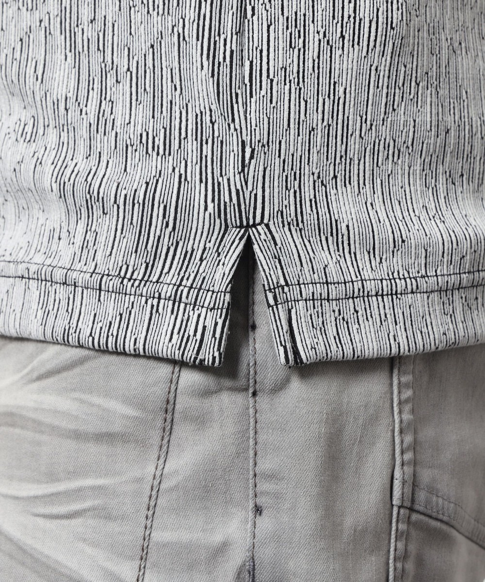 裾脇にスリットを入れることで、デザインのアクセントにしながら、裾が上がって来るのを抑えるようにしております。
