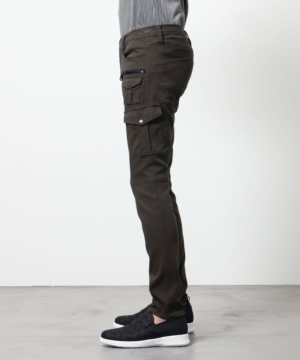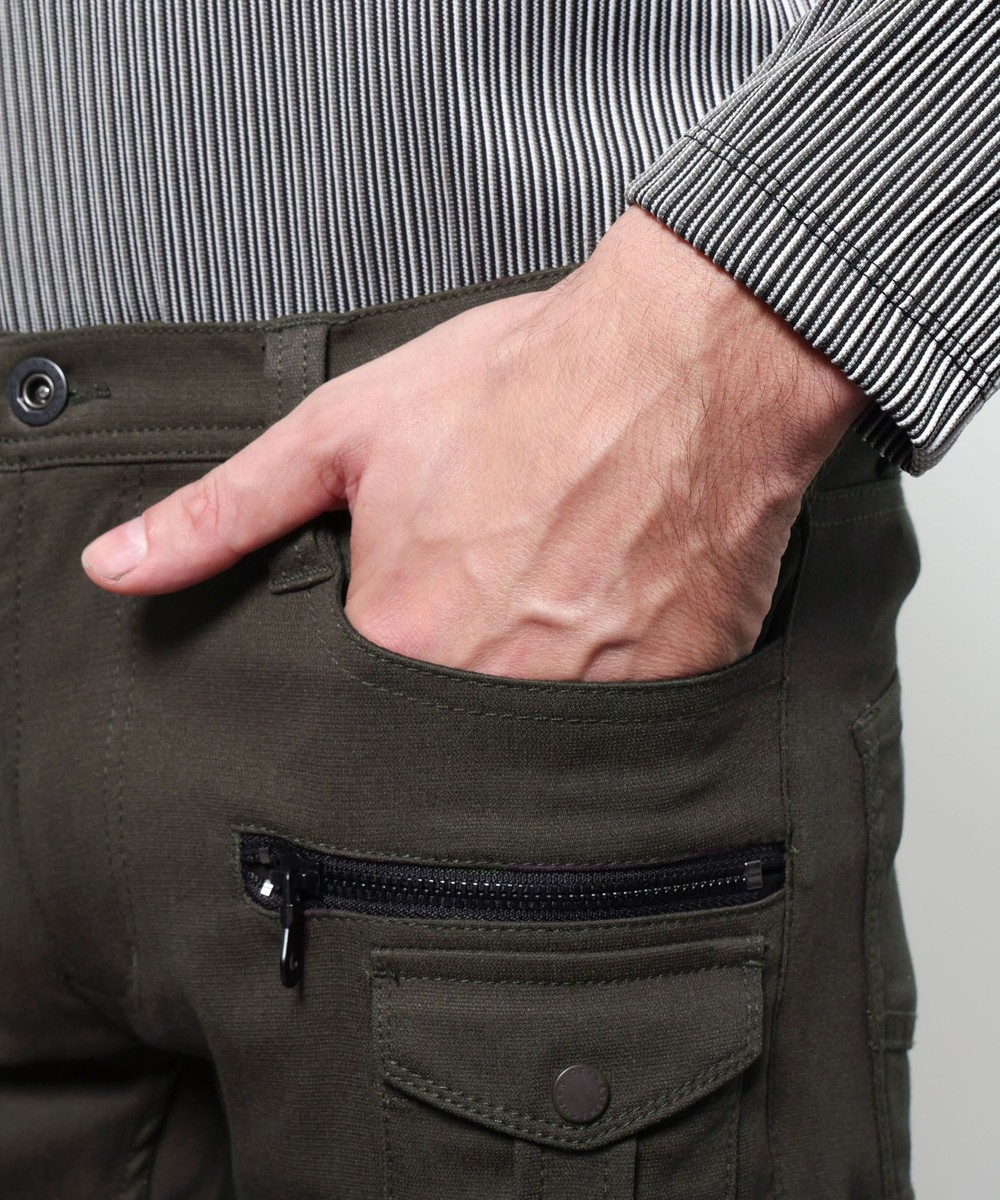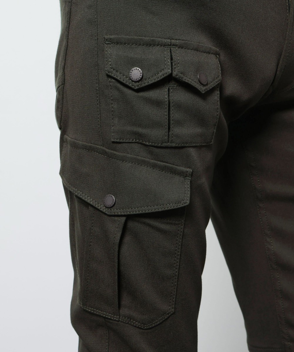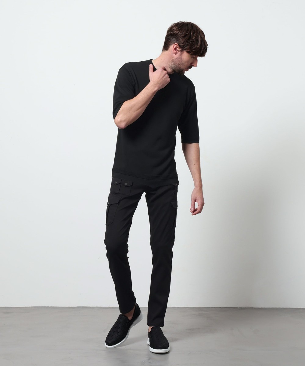 重く野暮ったくなりがちなカーゴパンツですが、ポケットの位置とサイズを調整する事でシャープな印象に仕上げています。