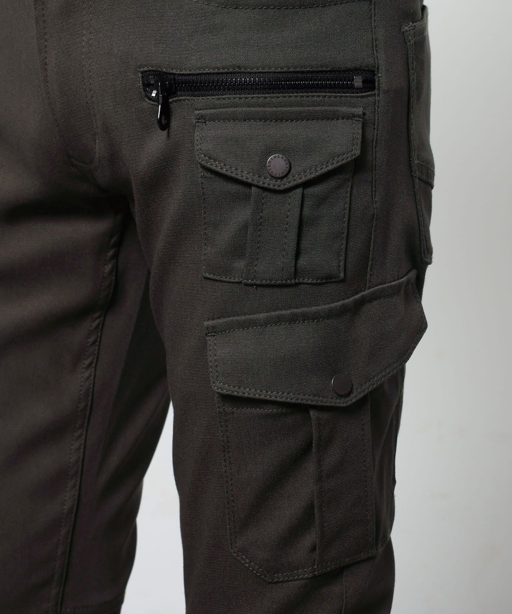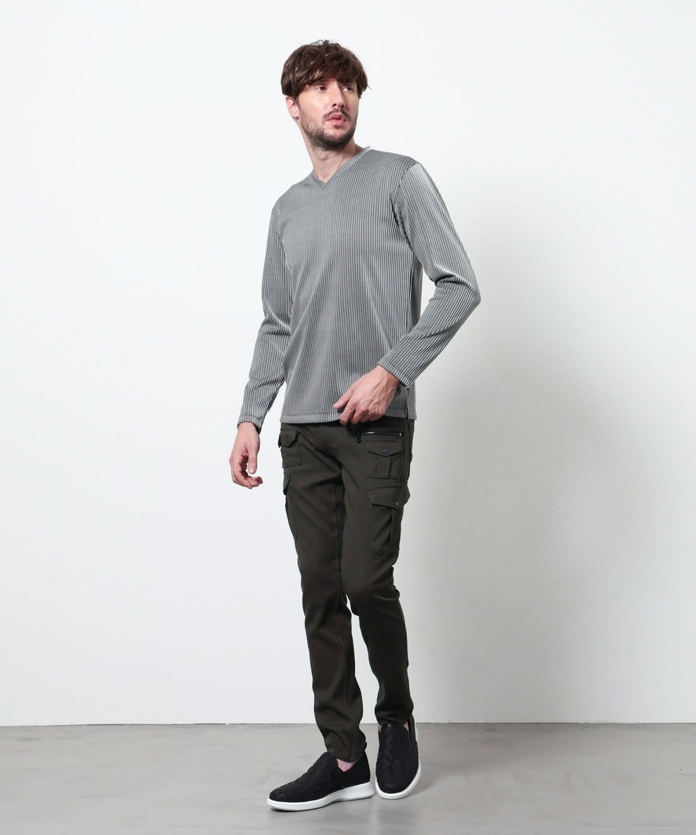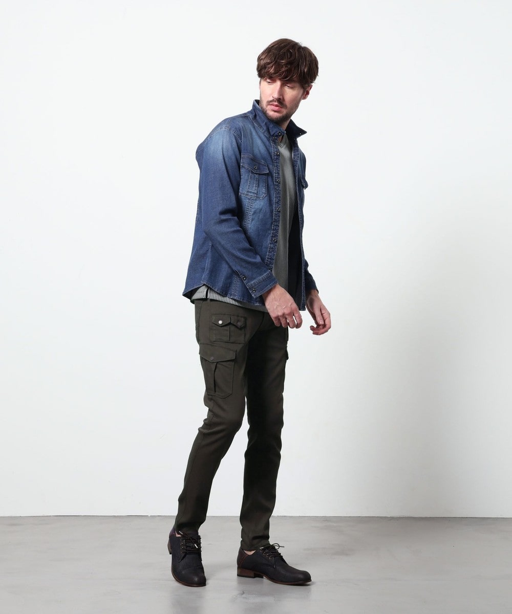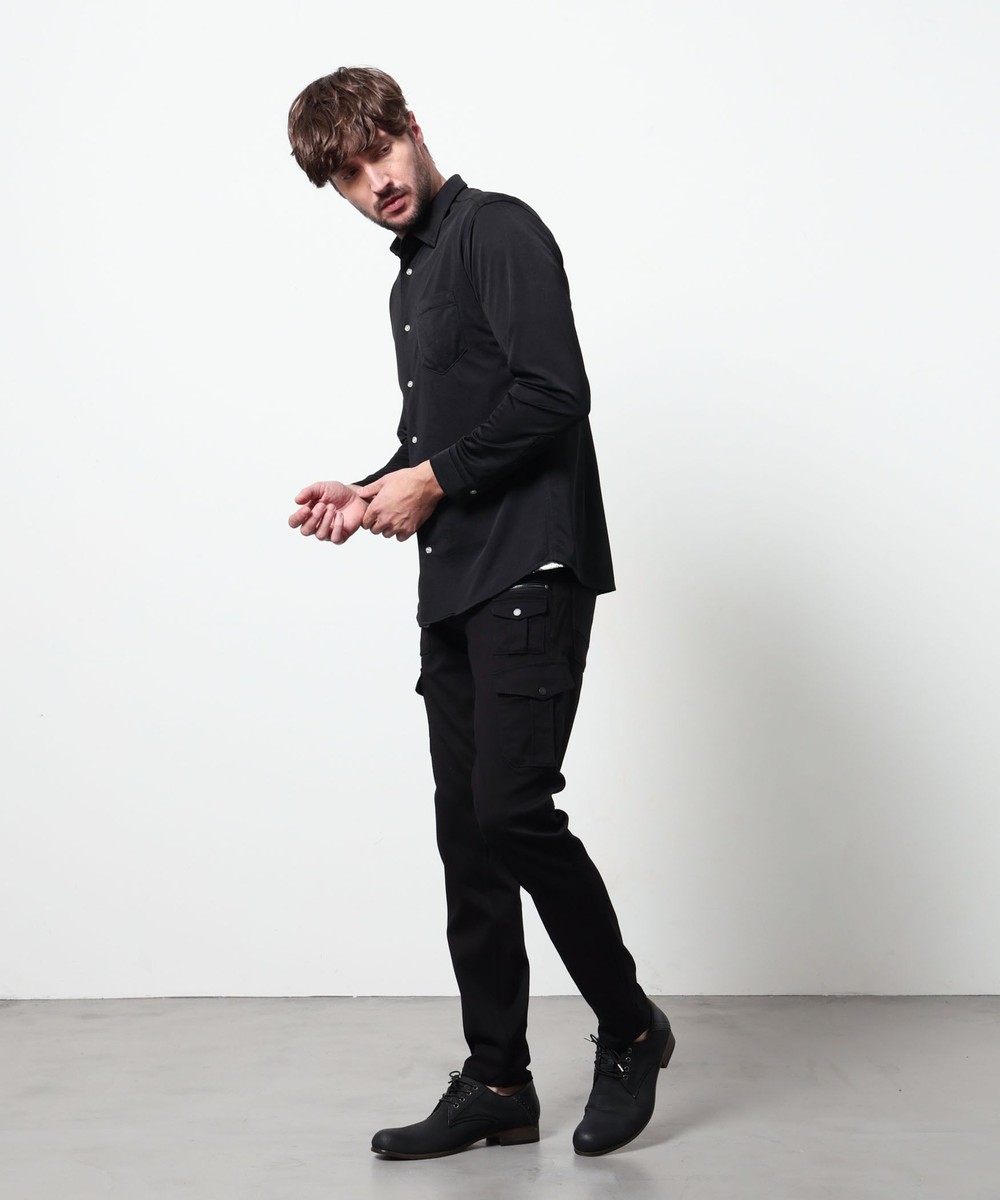 重く野暮ったくなりがちなカーゴパンツですが、ポケットの位置とサイズを調整する事でシャープな印象に仕上げています。