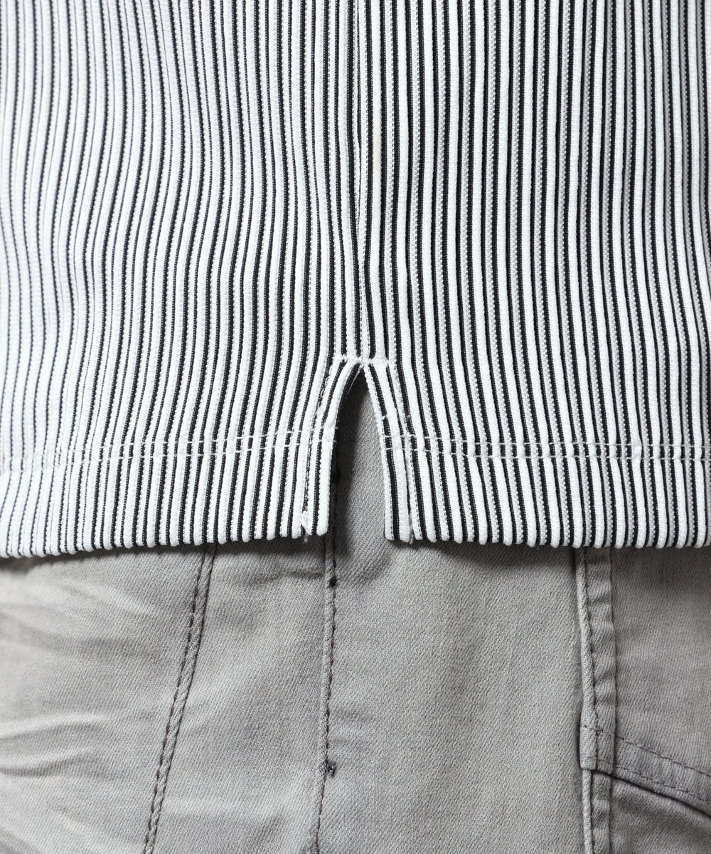 裾脇に深めのスリットを入れることで、デザインのアクセントにしながら、裾が上がってくるのを抑えるようにしております。