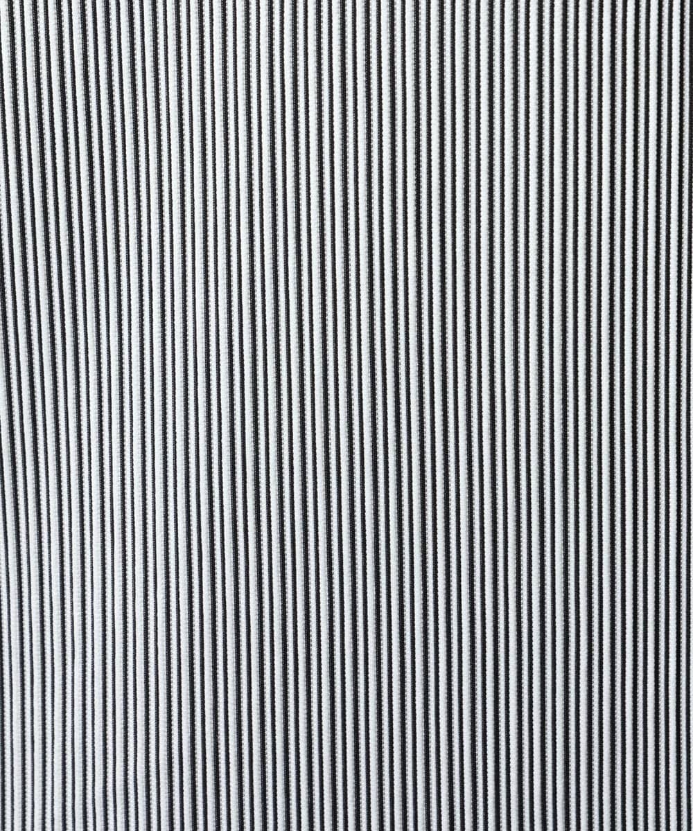 多色の先染めポリエステル糸で表現した色鮮やかなランダムタックボーダーになります。