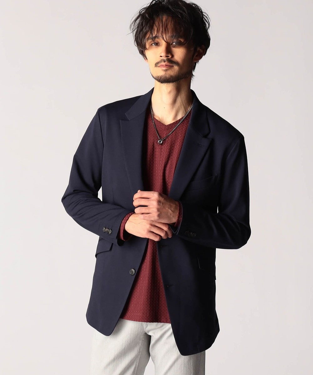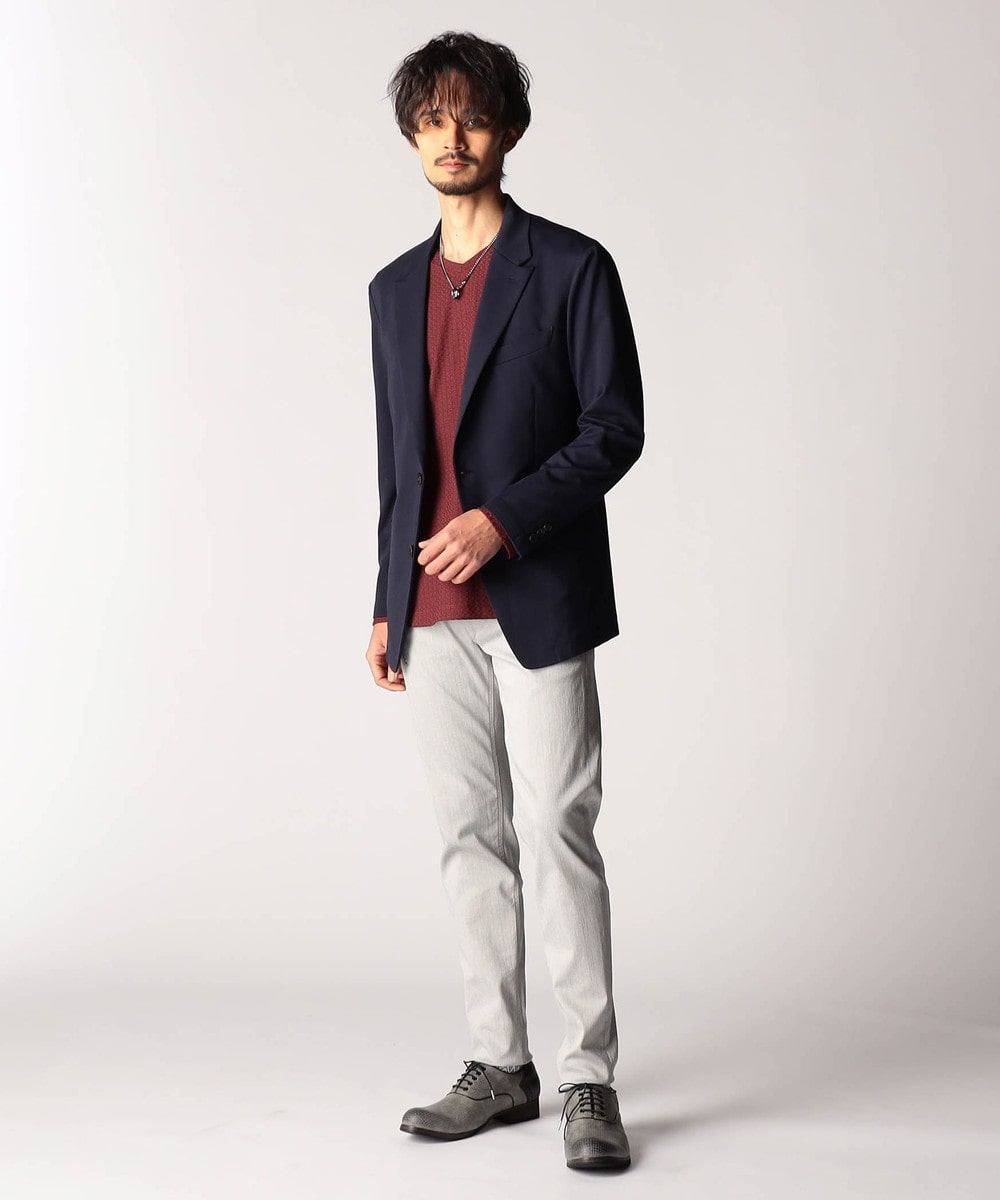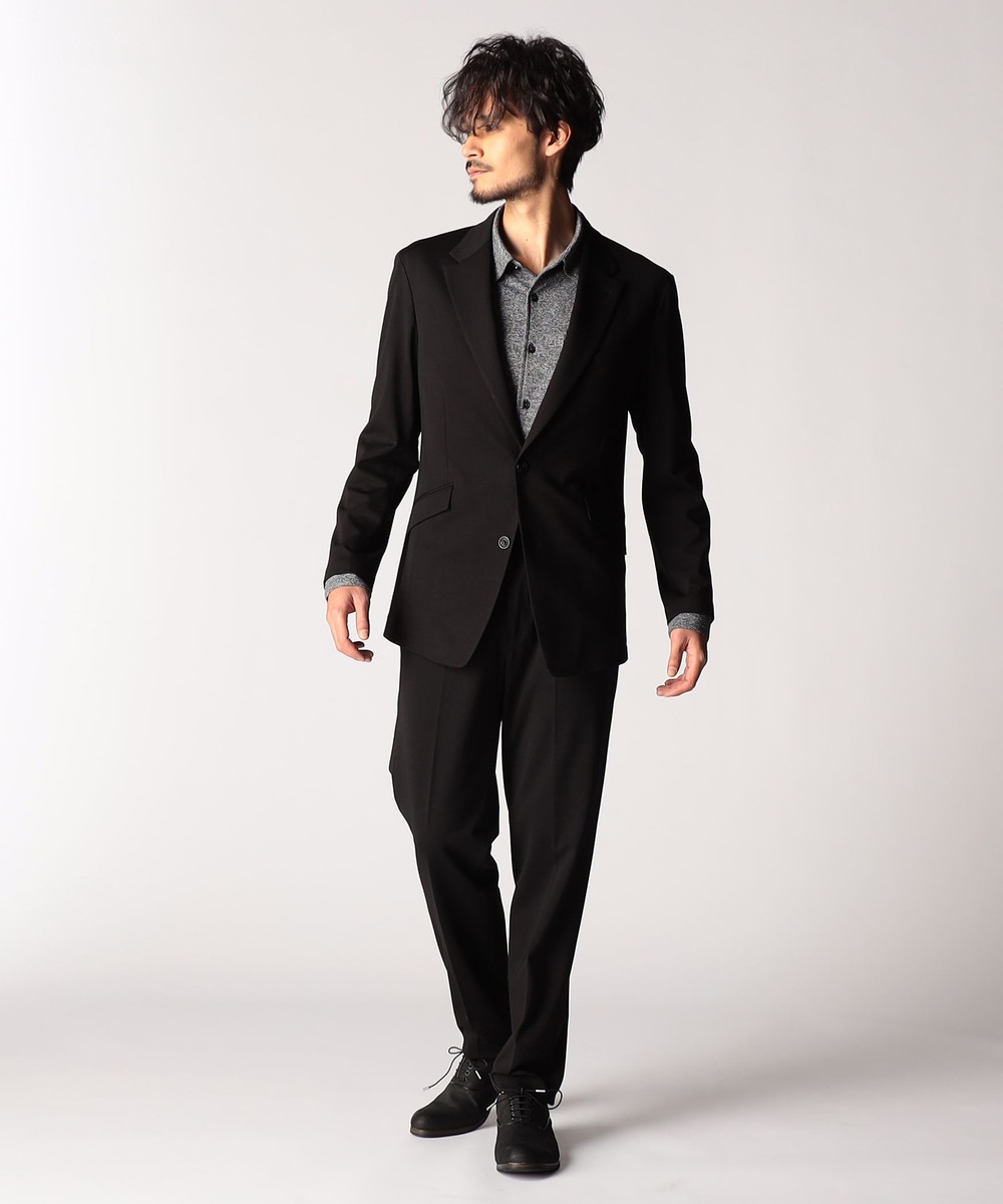 マルチストレッチのジャージ素材になりますので、ウエストシェイプを入れた綺麗なシルエット。少し細身の程良いサイズ感です。