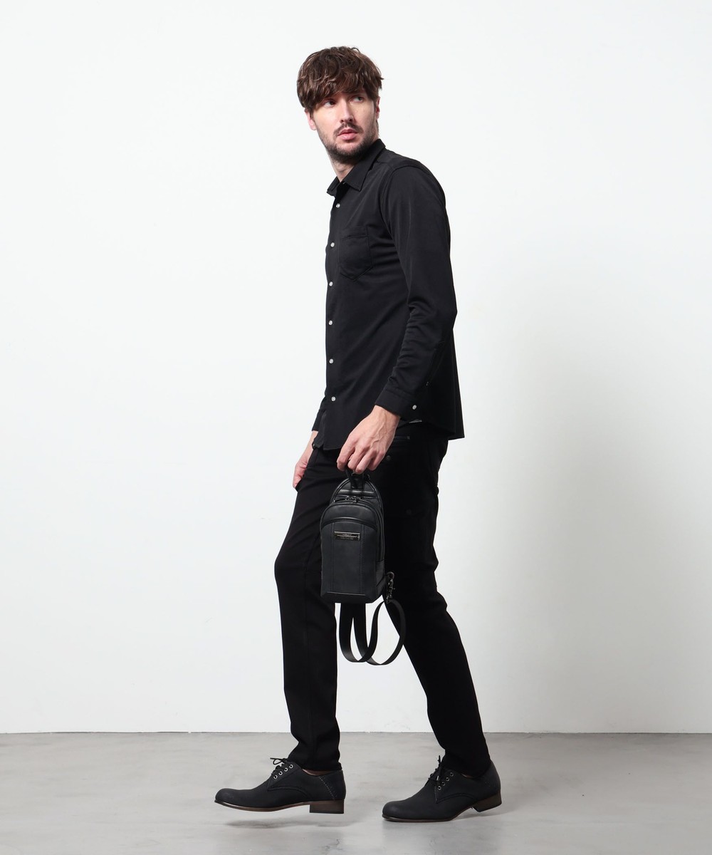 カラーにより異なる素材を使用したモードな印象のミニボディバッグ。