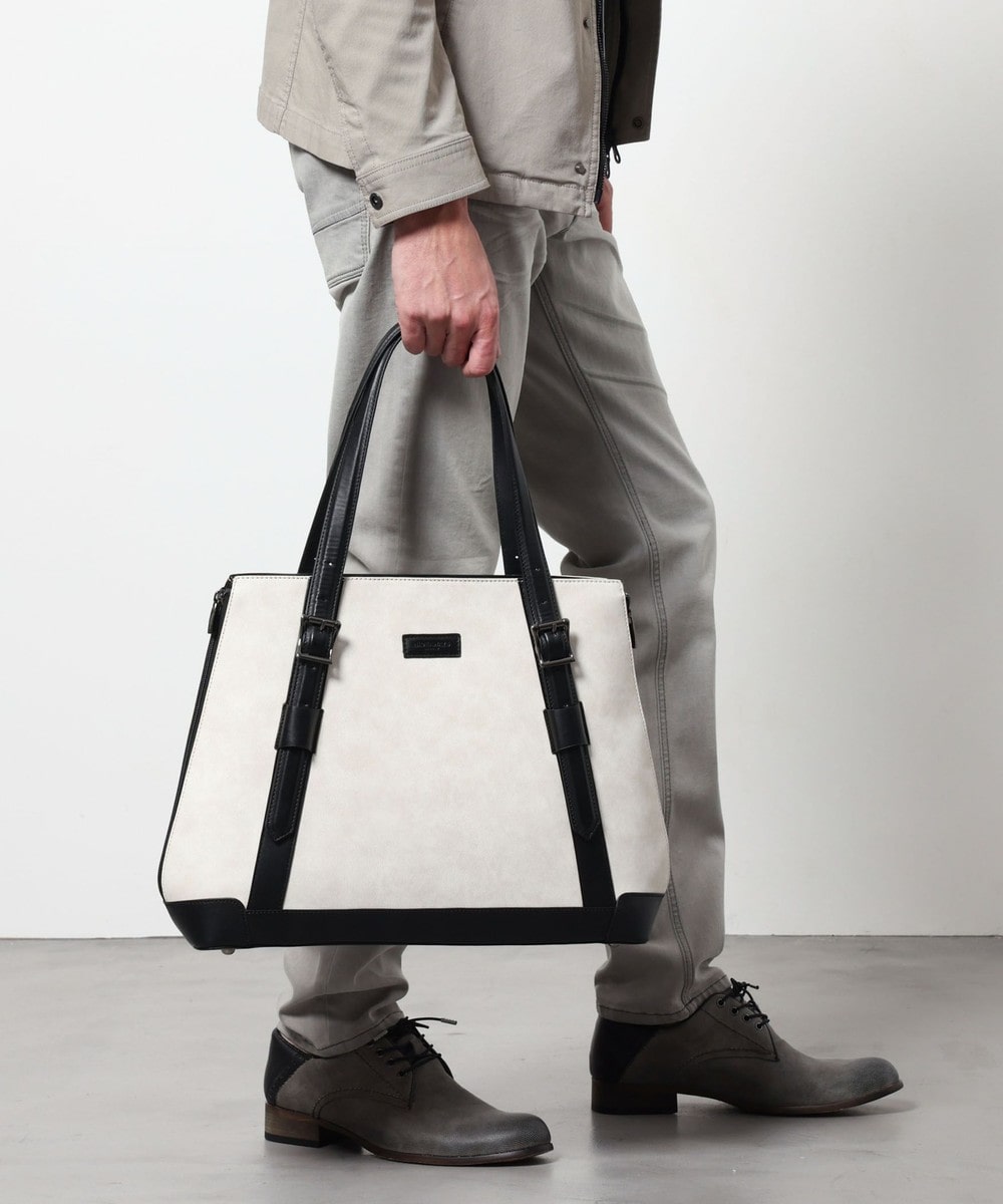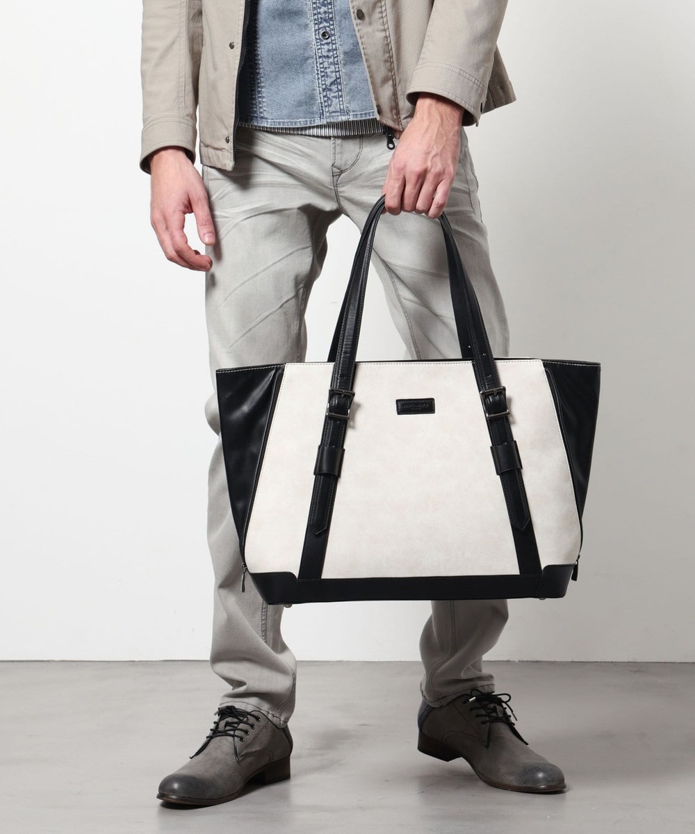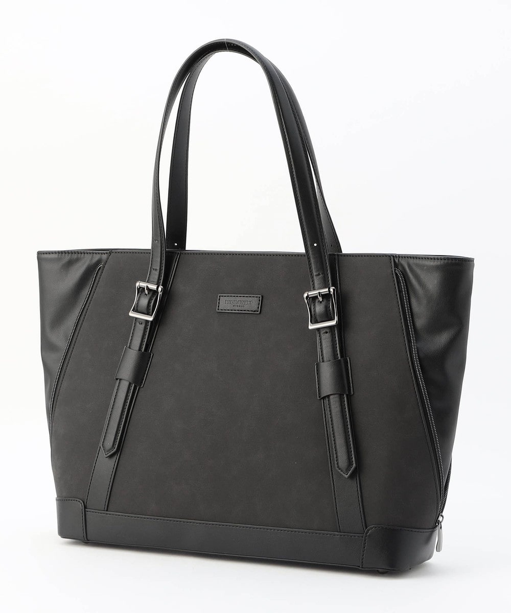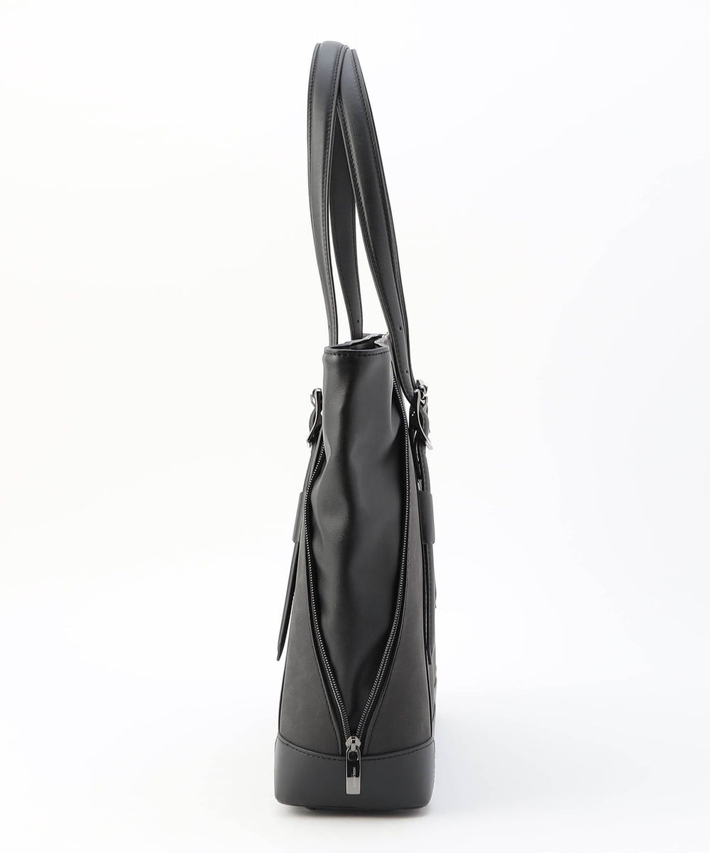 サイドにファスナーデザインをあしらったトートバッグ。