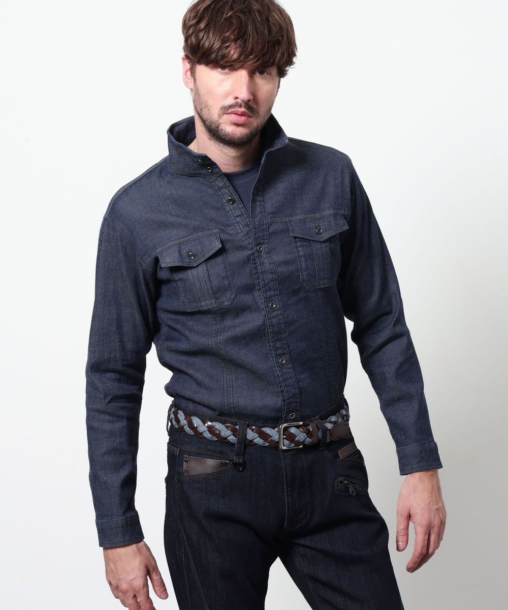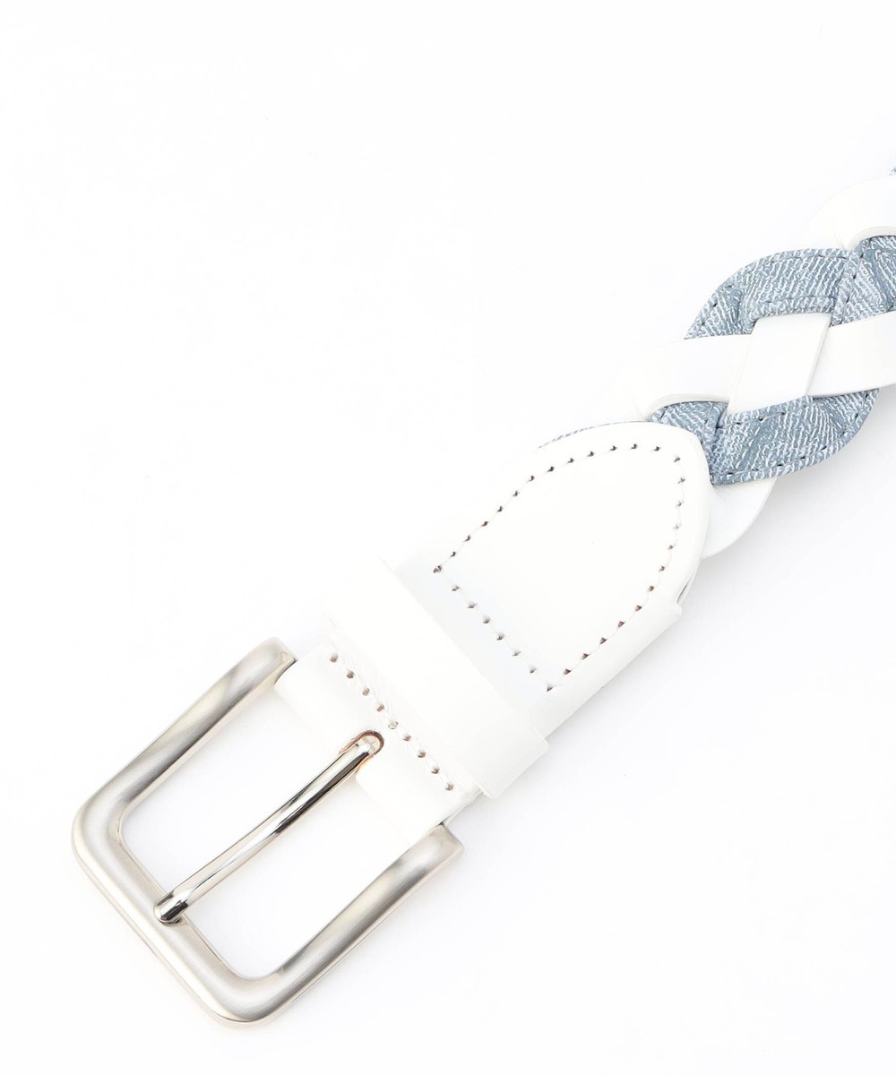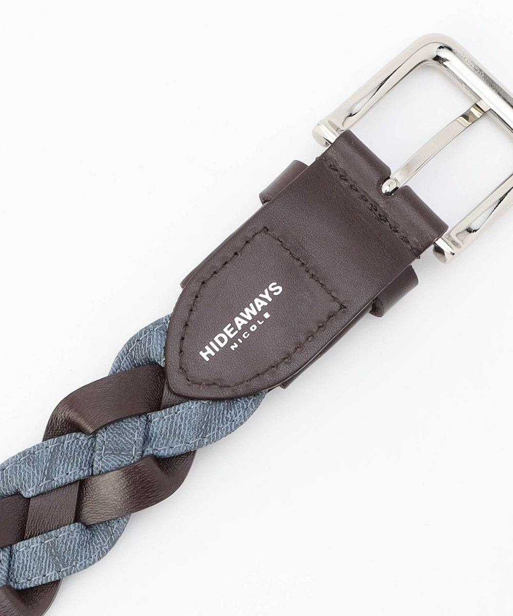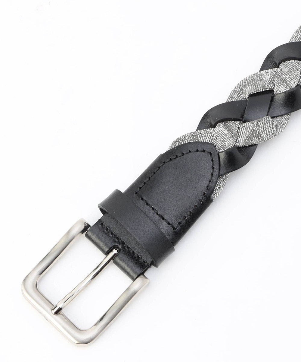 帯部分は皮革繊維再生複合材とウォッシュドデニム調の合成皮革をテープ使いした異素材合わせで編み込んでいます。
