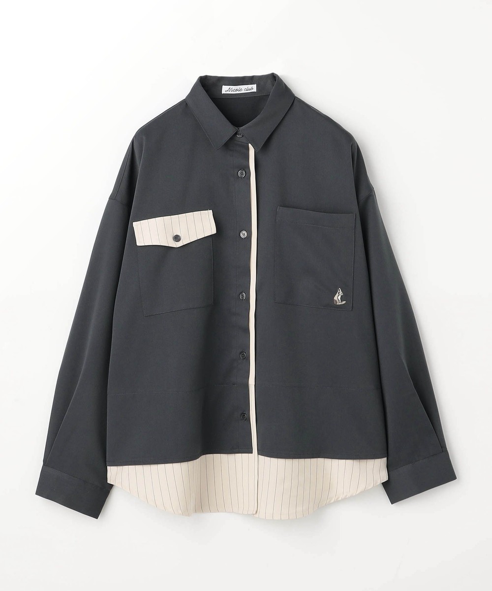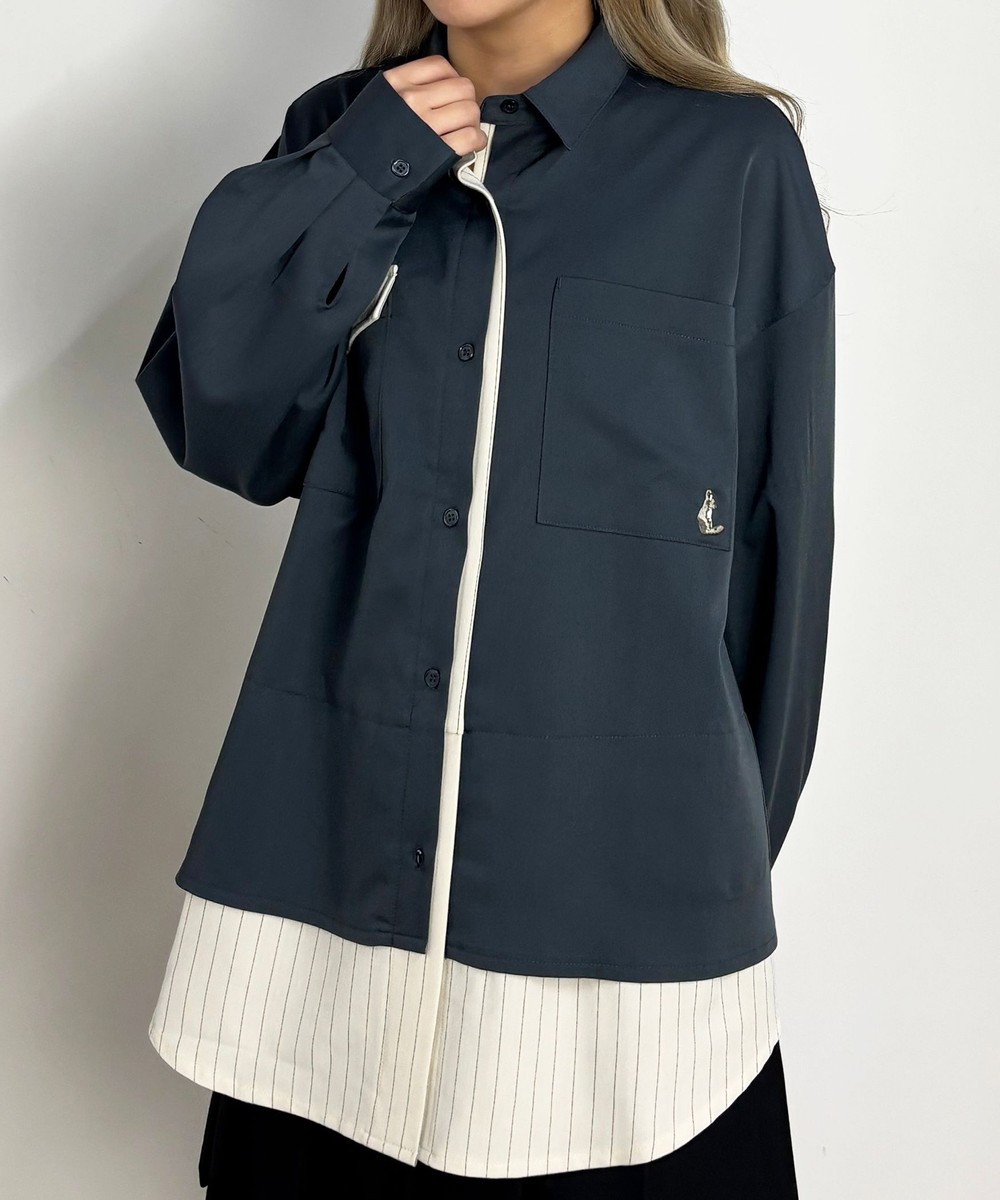 レイヤード風のデザイン+配色が目を惹くシャツ。