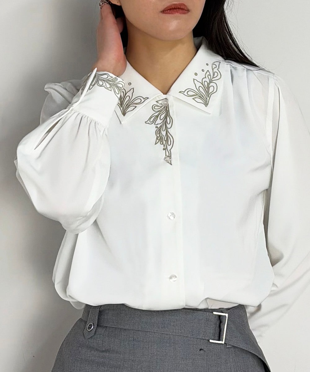 ボタニカルな刺繍が各所にちりばめられたブラウスが登場。