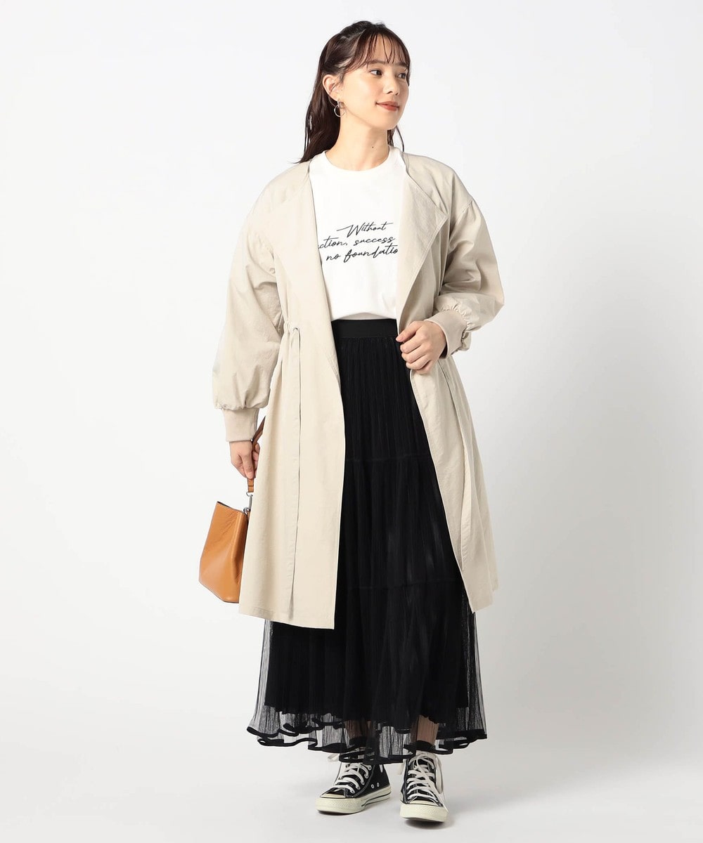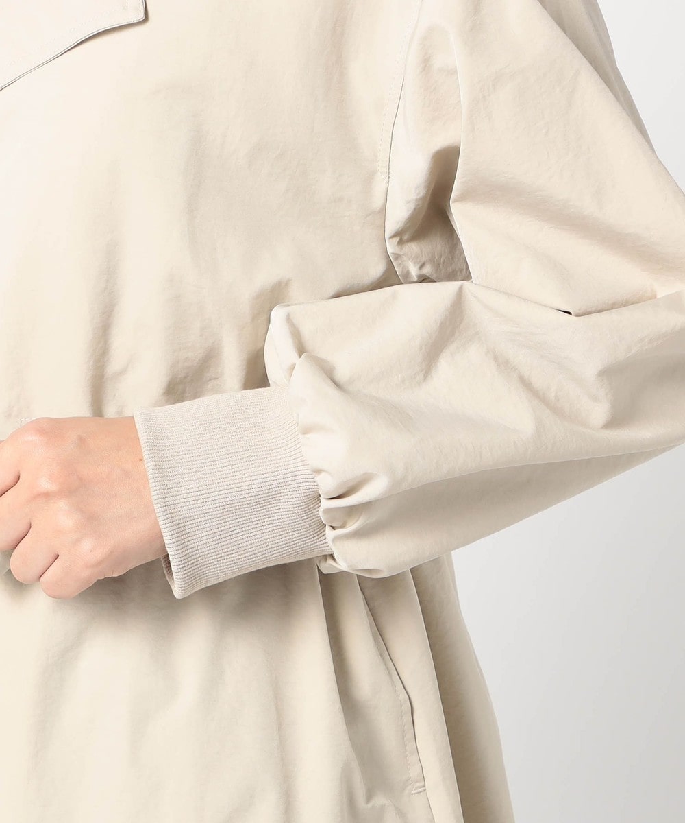 袖リブ周りのふわっとしたシルエットが、ベーシックなロングコートに女性らしい可愛さを加えています。