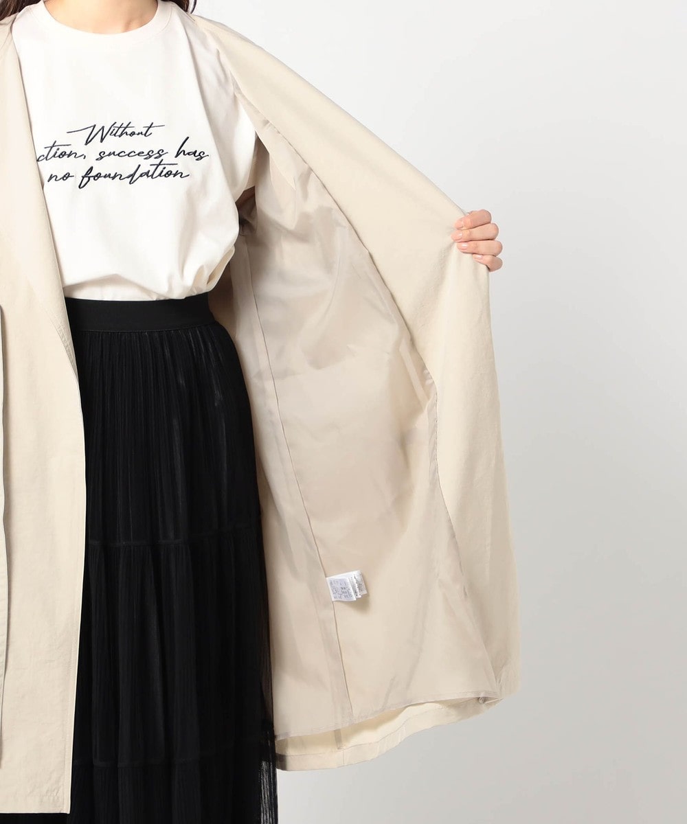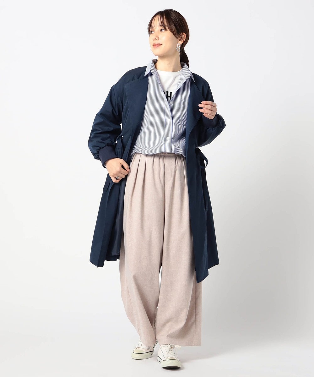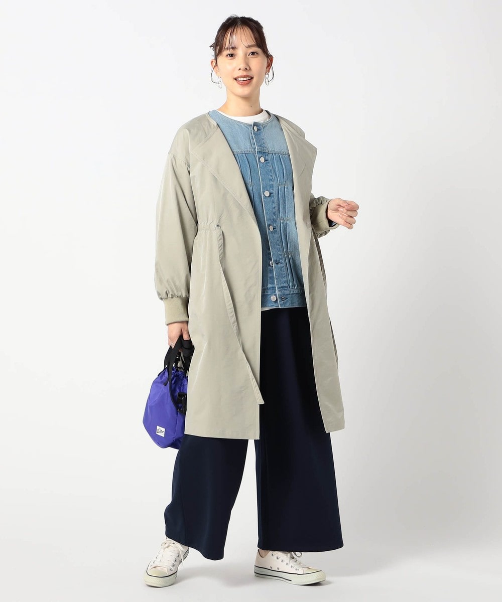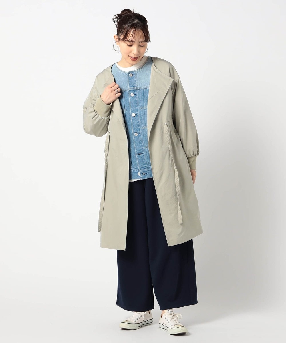コート自体のデザインはシンプルなので、インナー次第でカジュアルにもベーシックにもスタイリング変化させる事が出来ます。
