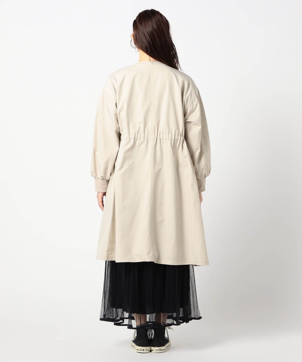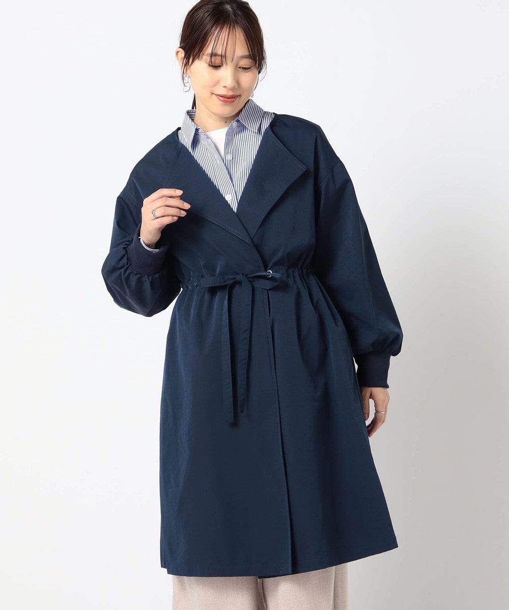 ウエストにドローコードの絞りが付いた、ロングコートです。