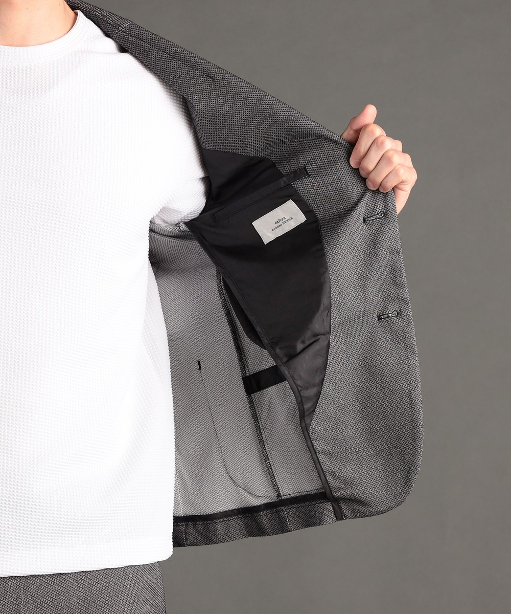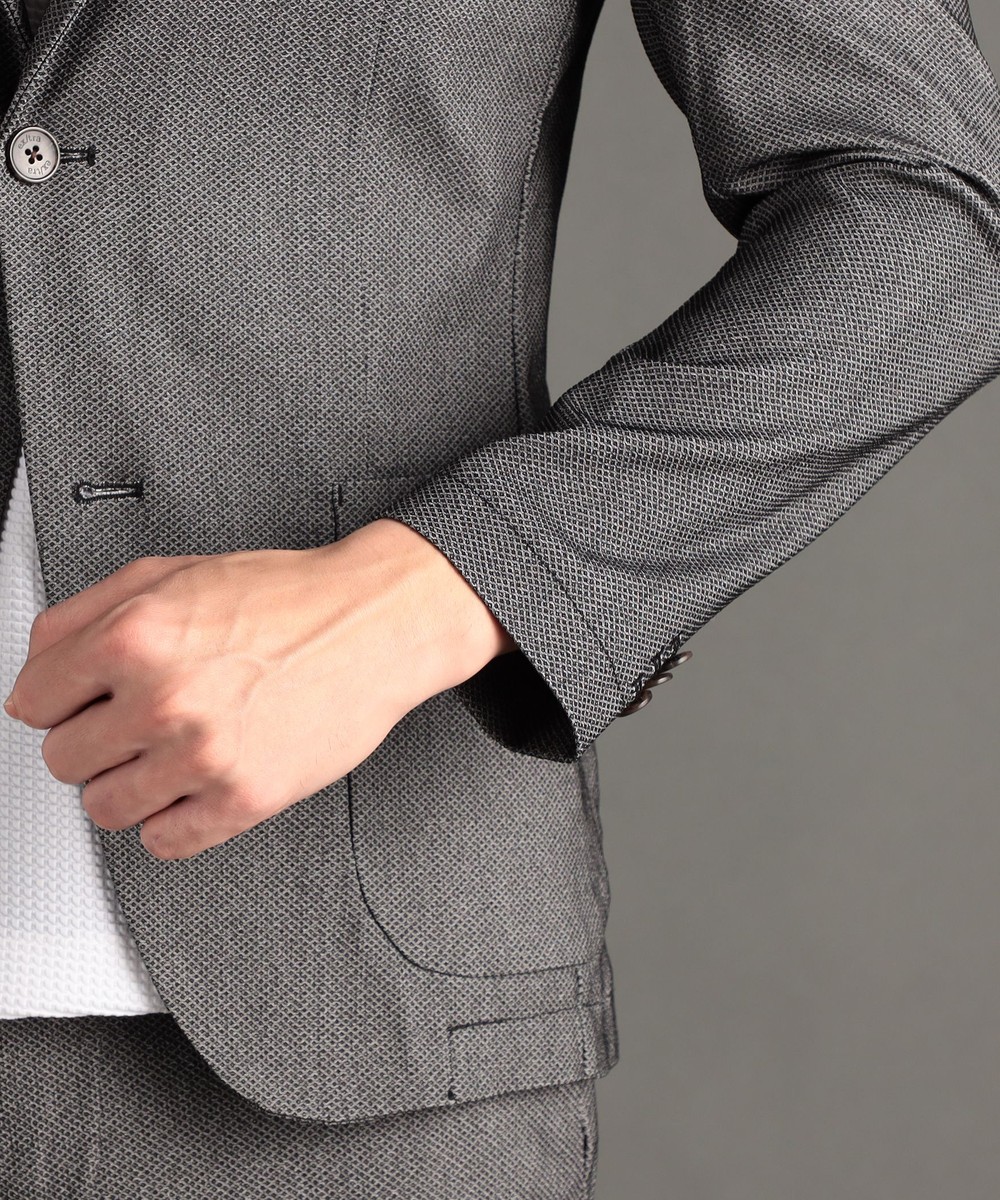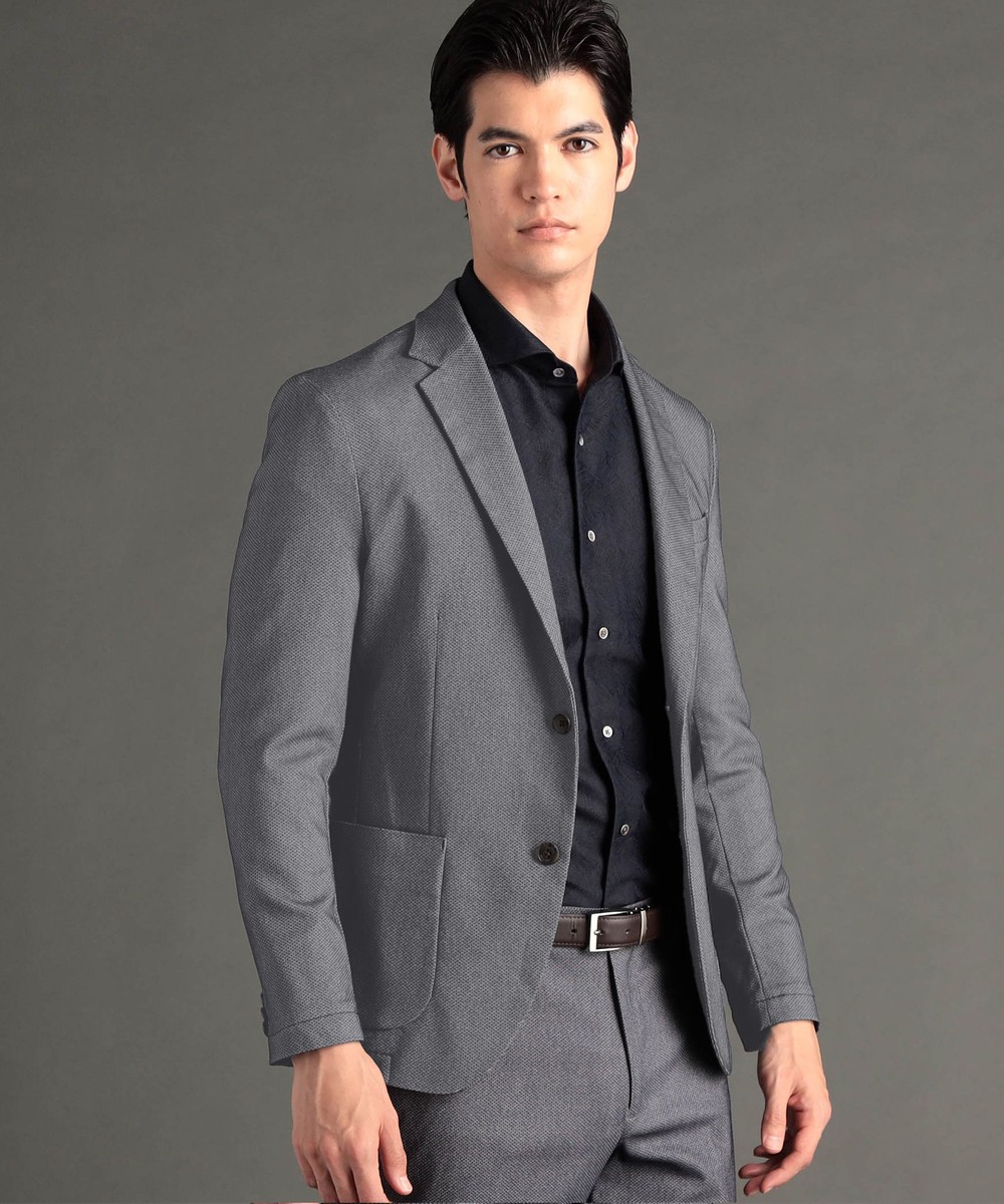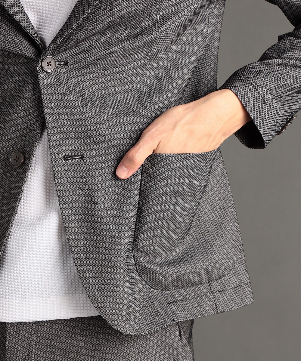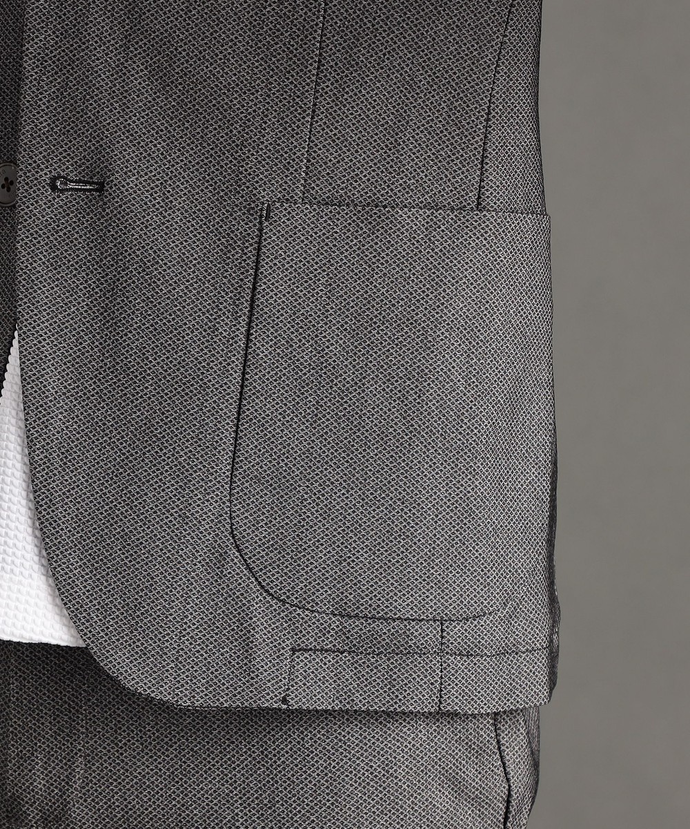 やや低めのゴージラインのナローラペルに、パッチポケットを組み合わせたクラシカルな仕上がり。