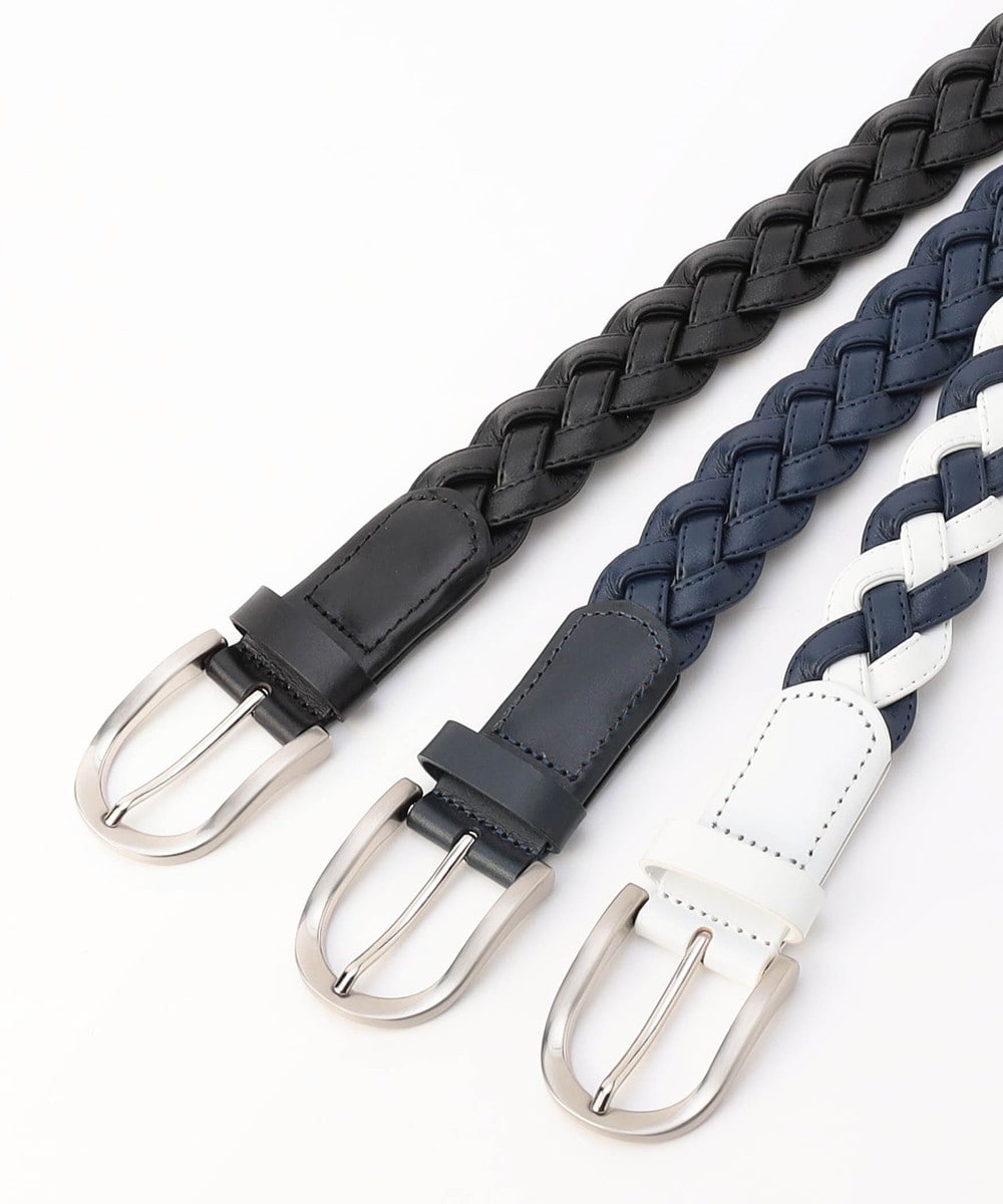 幅広いパンツに合わせやすい設定にしています。サイズ調節不要で、編み込み部分のどこでも留めることができる利便性が特徴です。