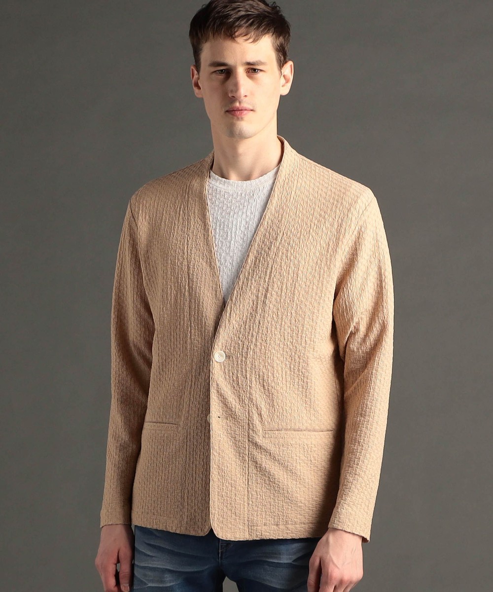 グラフィックジャカード ノーカラーニットジャケット