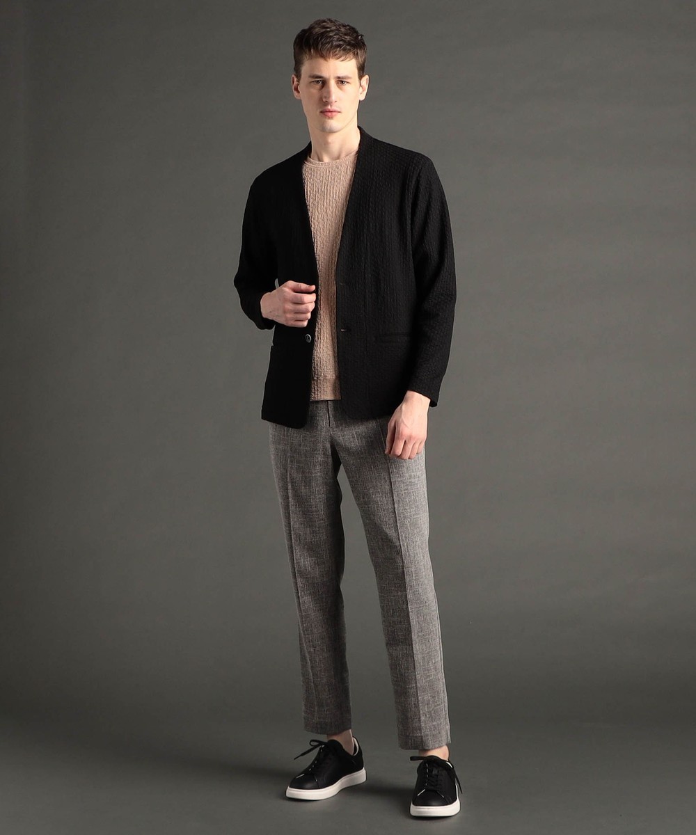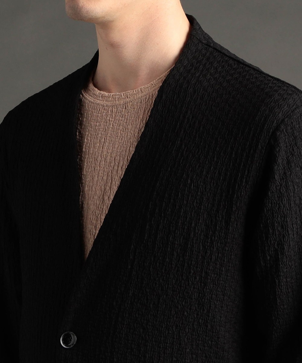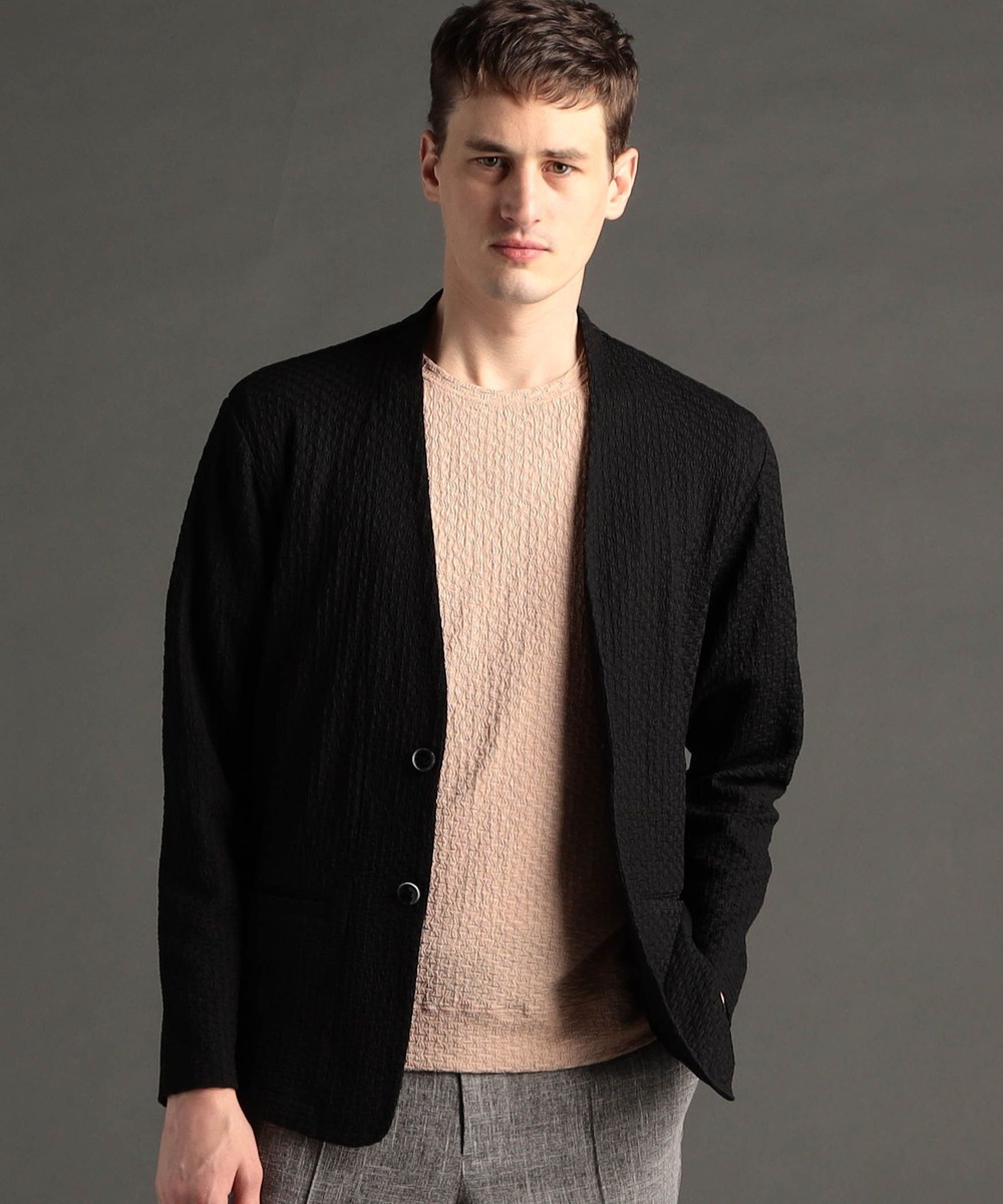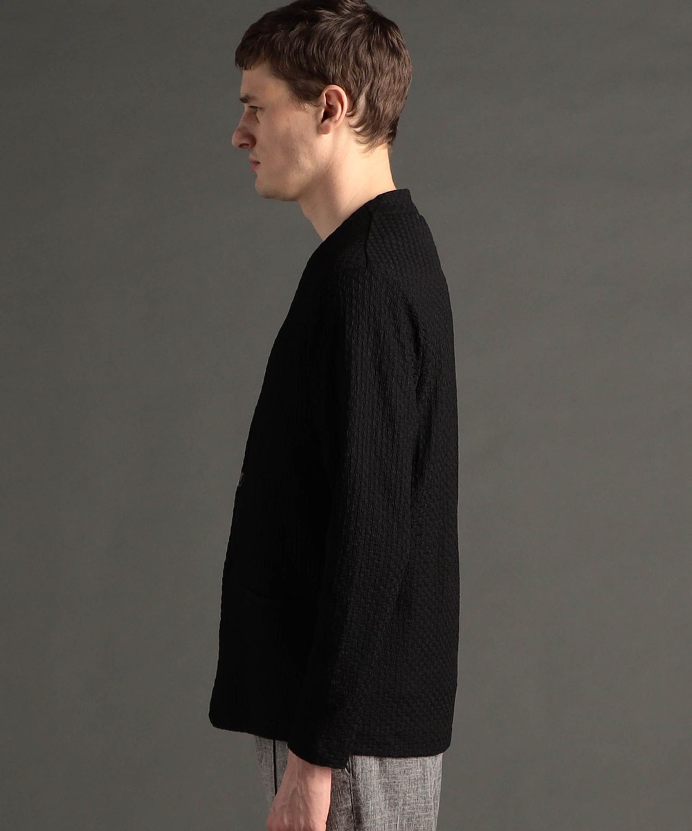 程よい肉感のノーカラーニットジャケット。