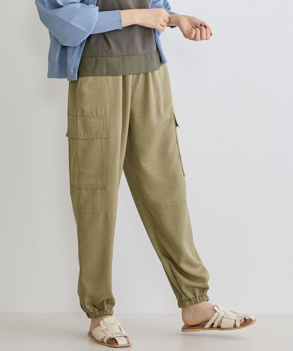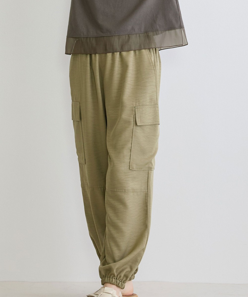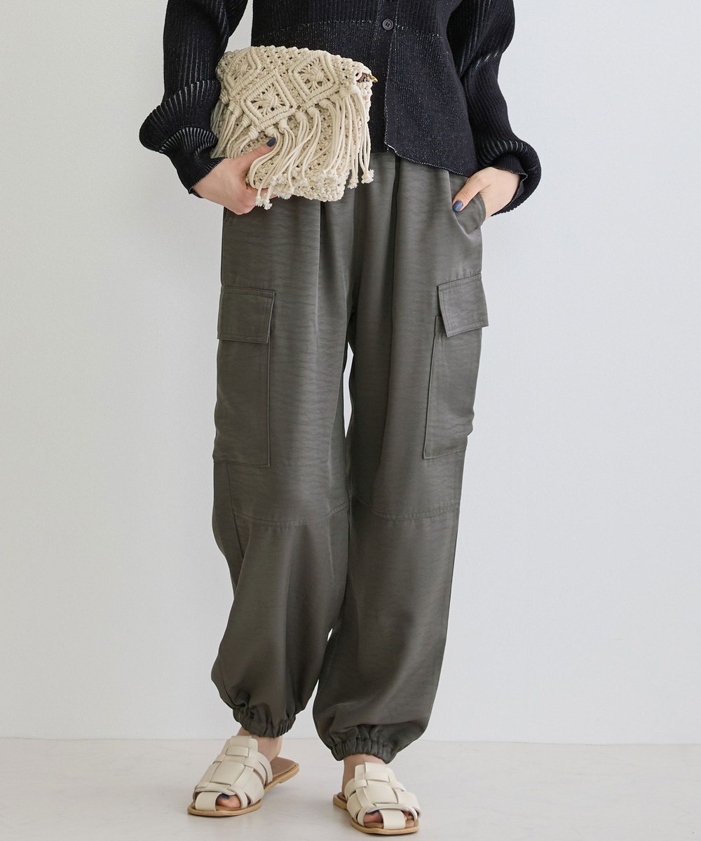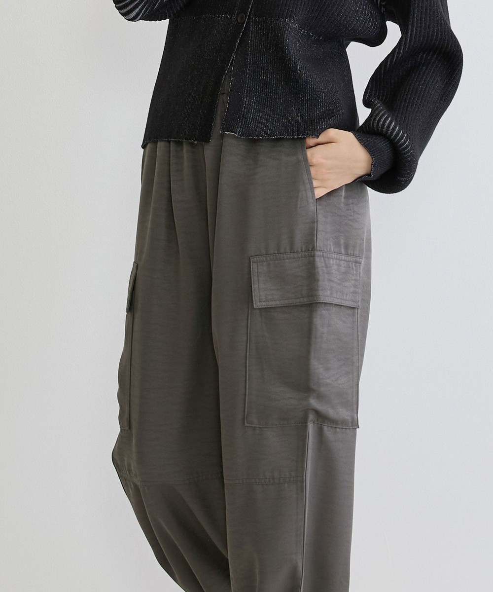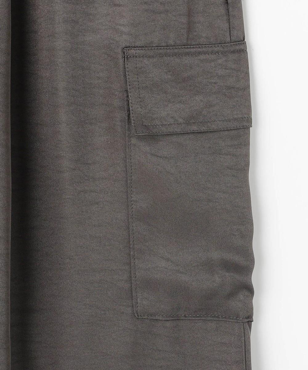カジュアルなイメージのカーゴパンツは、ヴィンテージサテンを使用し大人なパンツに仕上がりました。トロミと光沢感のある素材感がワンランク上の上品な印象を演出してくれます。