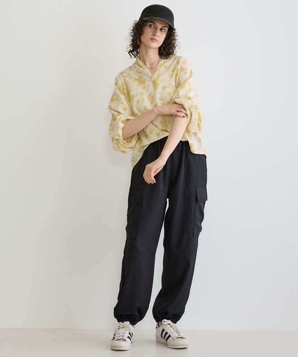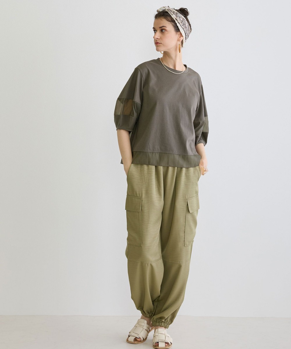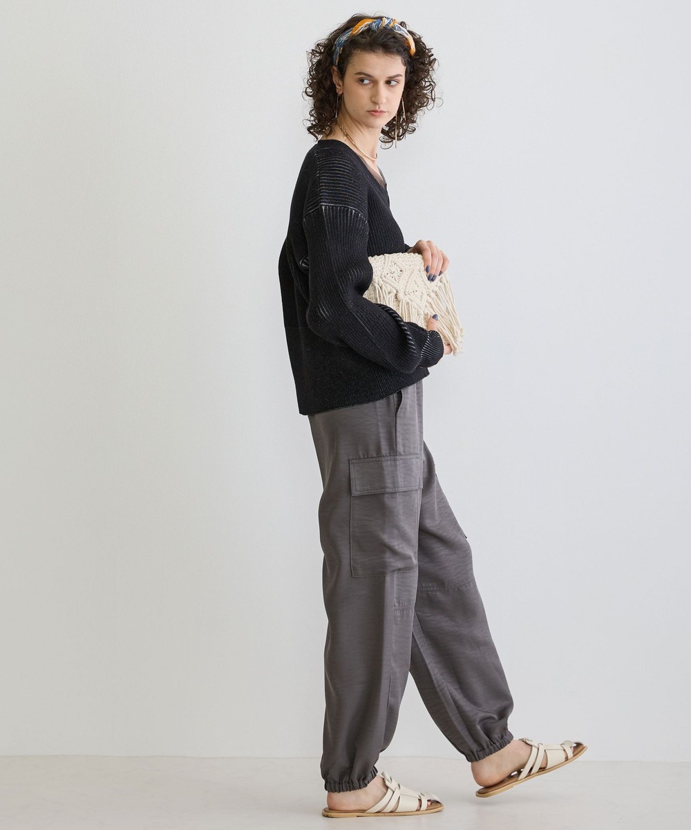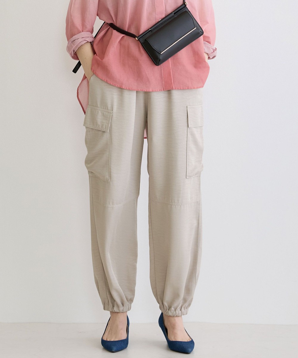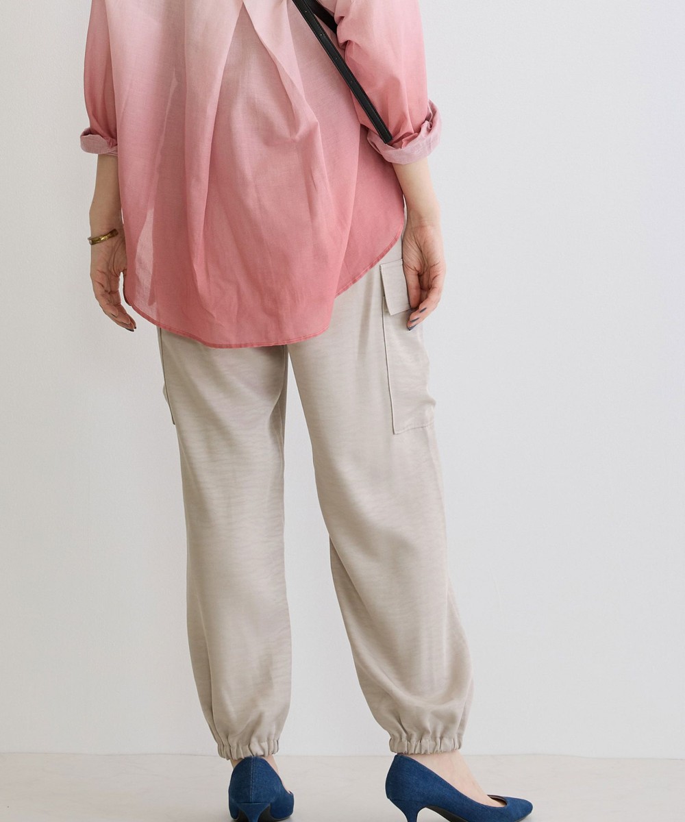 カジュアルなイメージのカーゴパンツは、ヴィンテージサテンを使用し大人なパンツに仕上がりました。トロミと光沢感のある素材感がワンランク上の上品な印象を演出してくれます。
