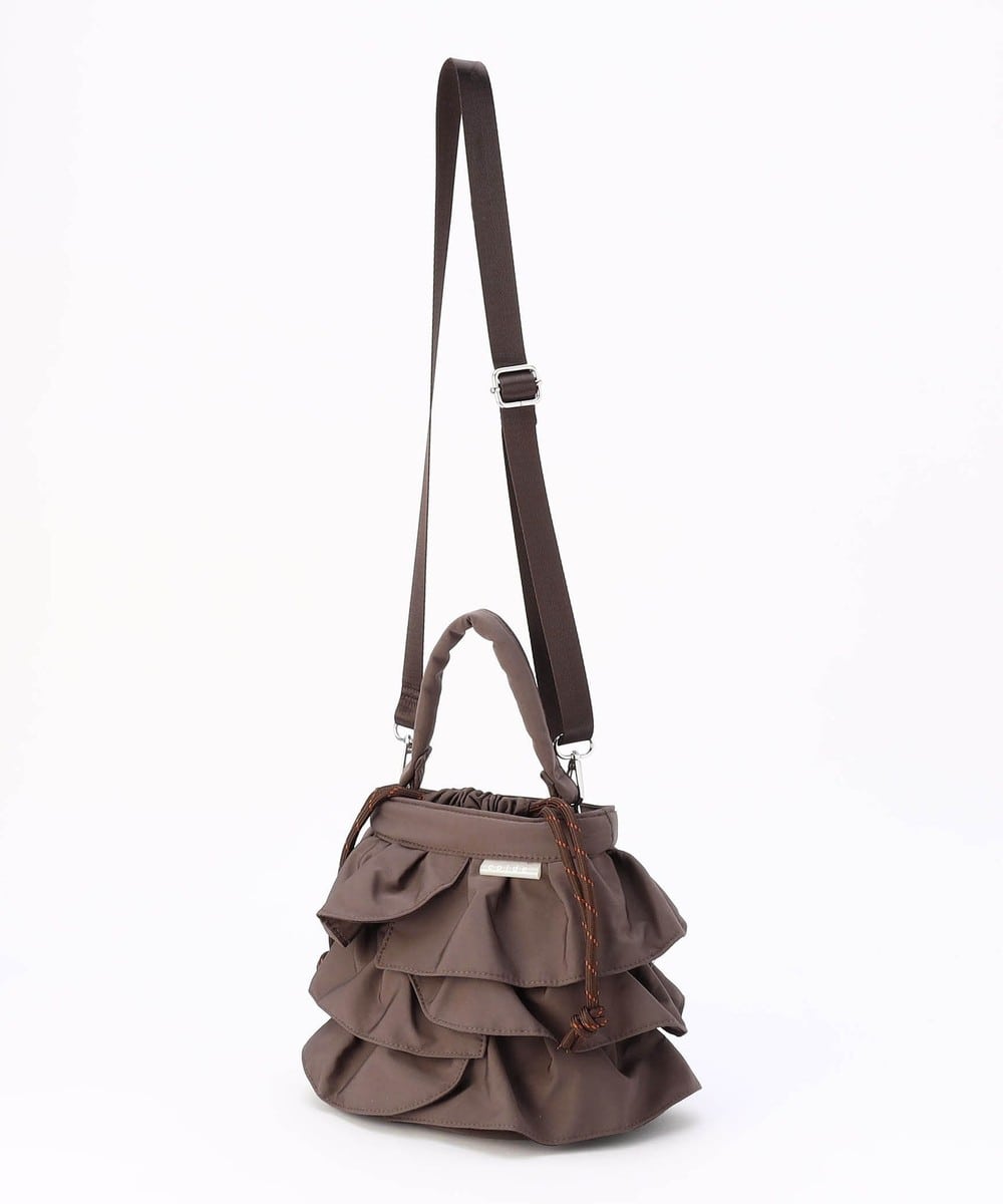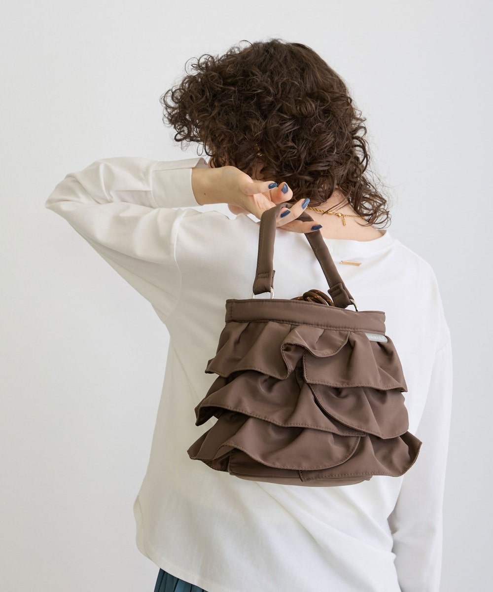 落ち着いたトーンでフリルもガーリーすぎず、バッグを主役にしたスタイリングもおすすめです。