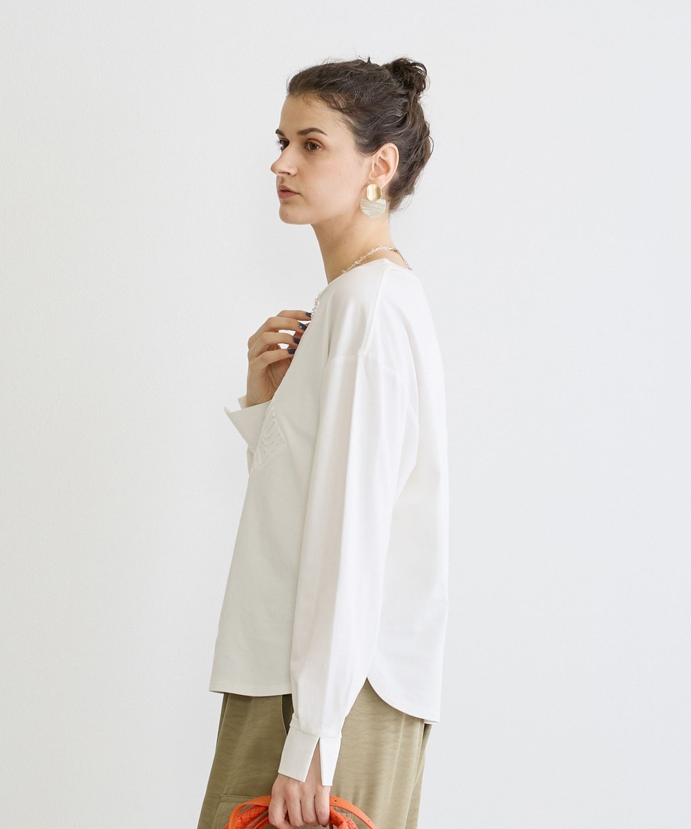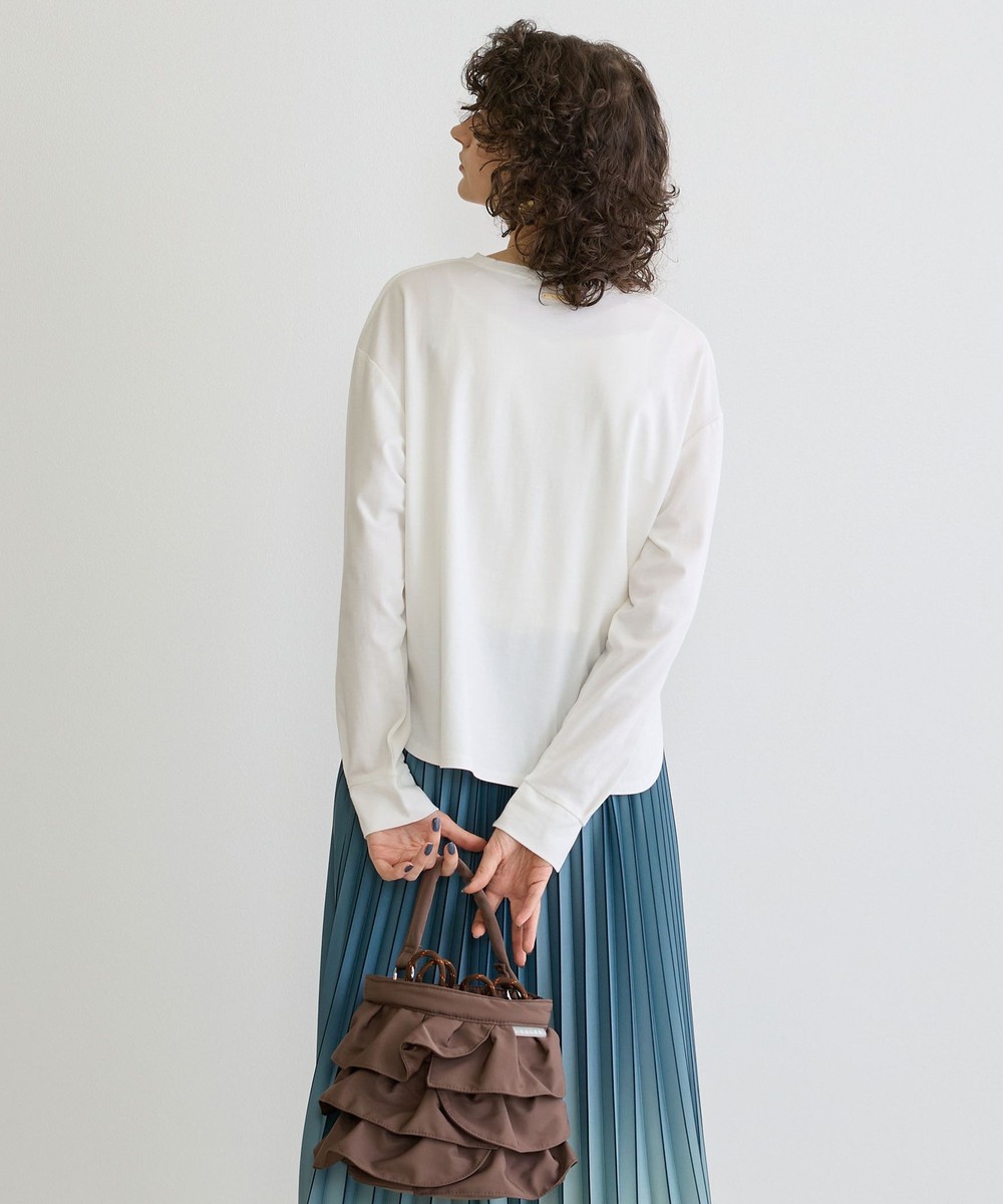 袖裾のスリットや裾ラウンドデザインがカジュアルすぎずレディライクな印象になります。