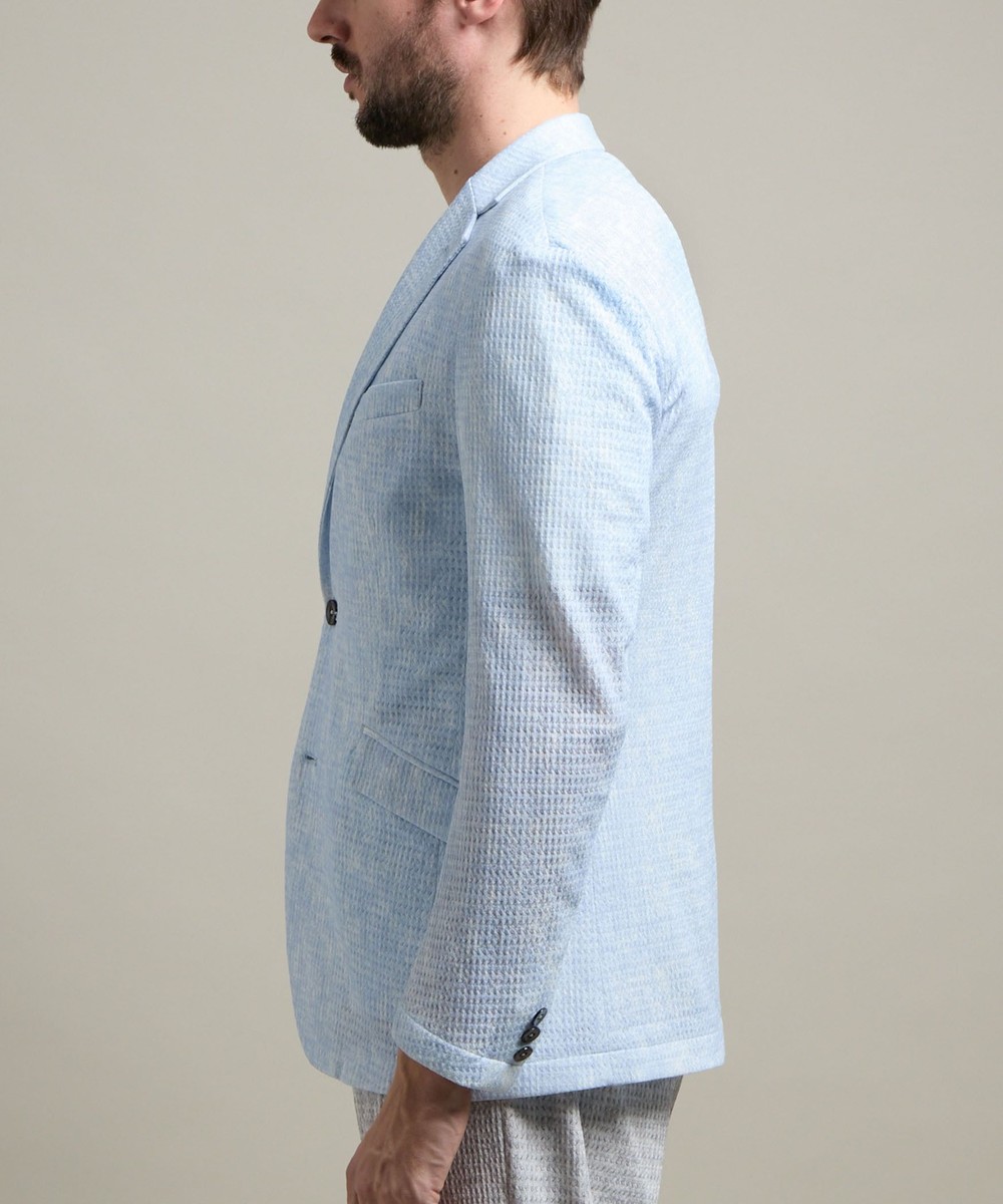 凹凸のある素材感とジャカード編みで表現したメッシュ調の穴が見た目に涼しげな素材です。