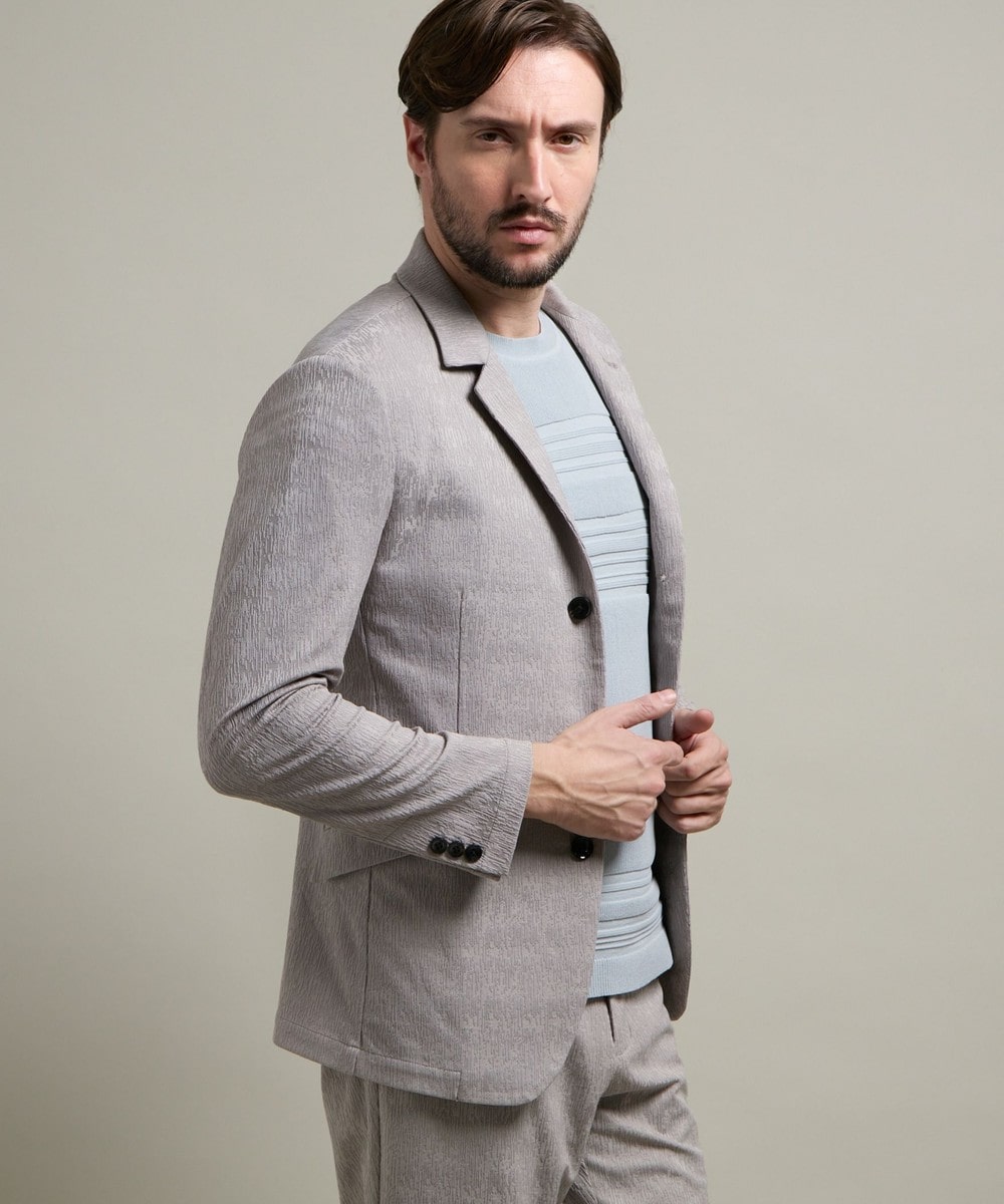 ポリエステル素材ならではのイージーケア性も魅力的で、仕立て映えするハリがあり、カットソー素材ならではのストレスフリーな着心地を提供してくれます。