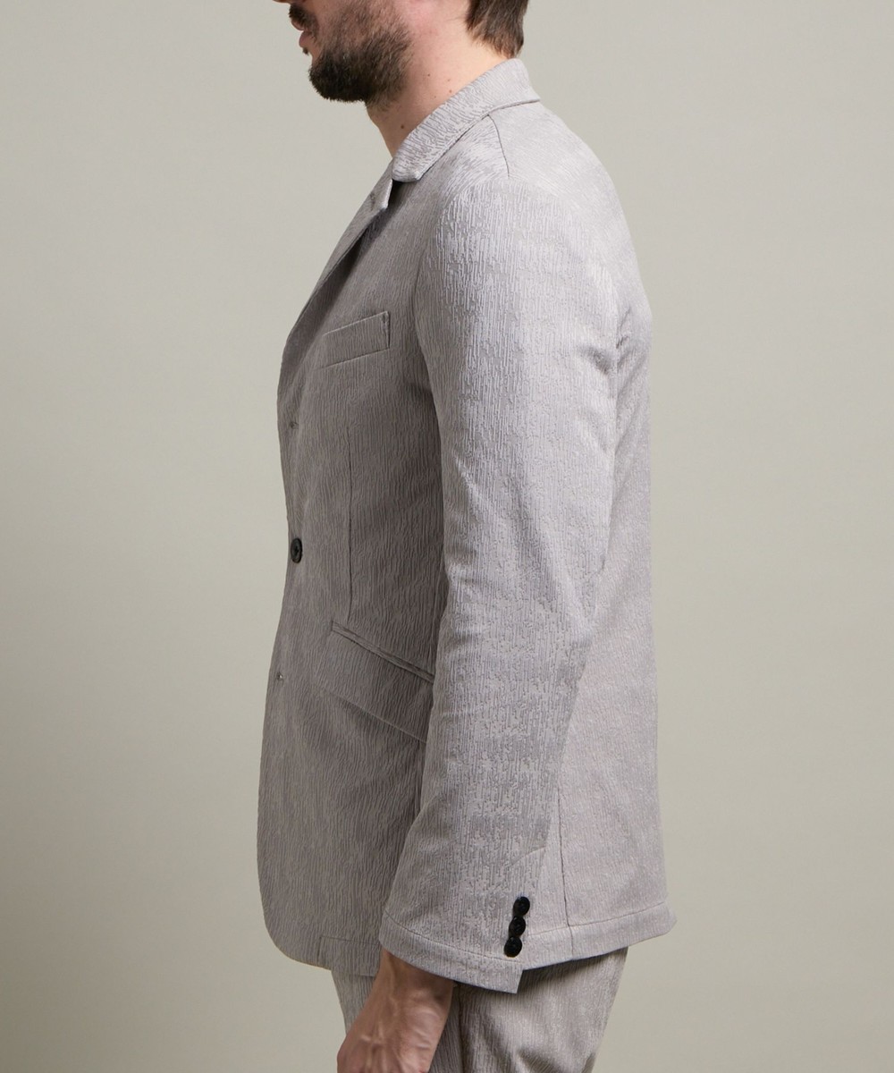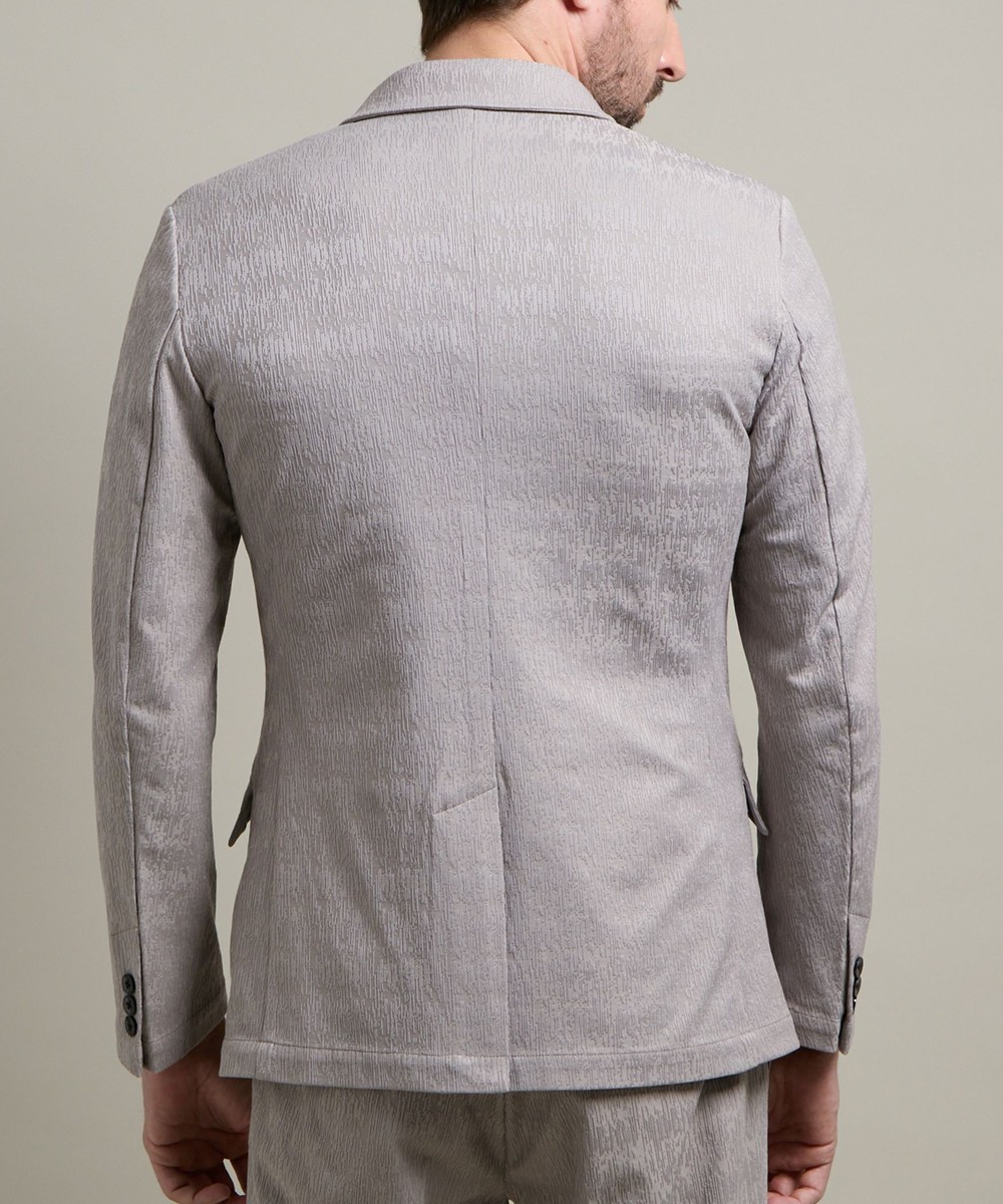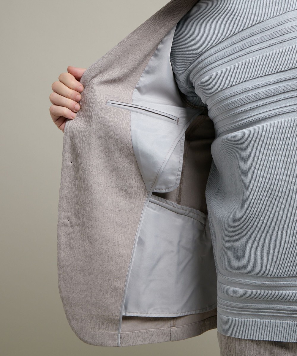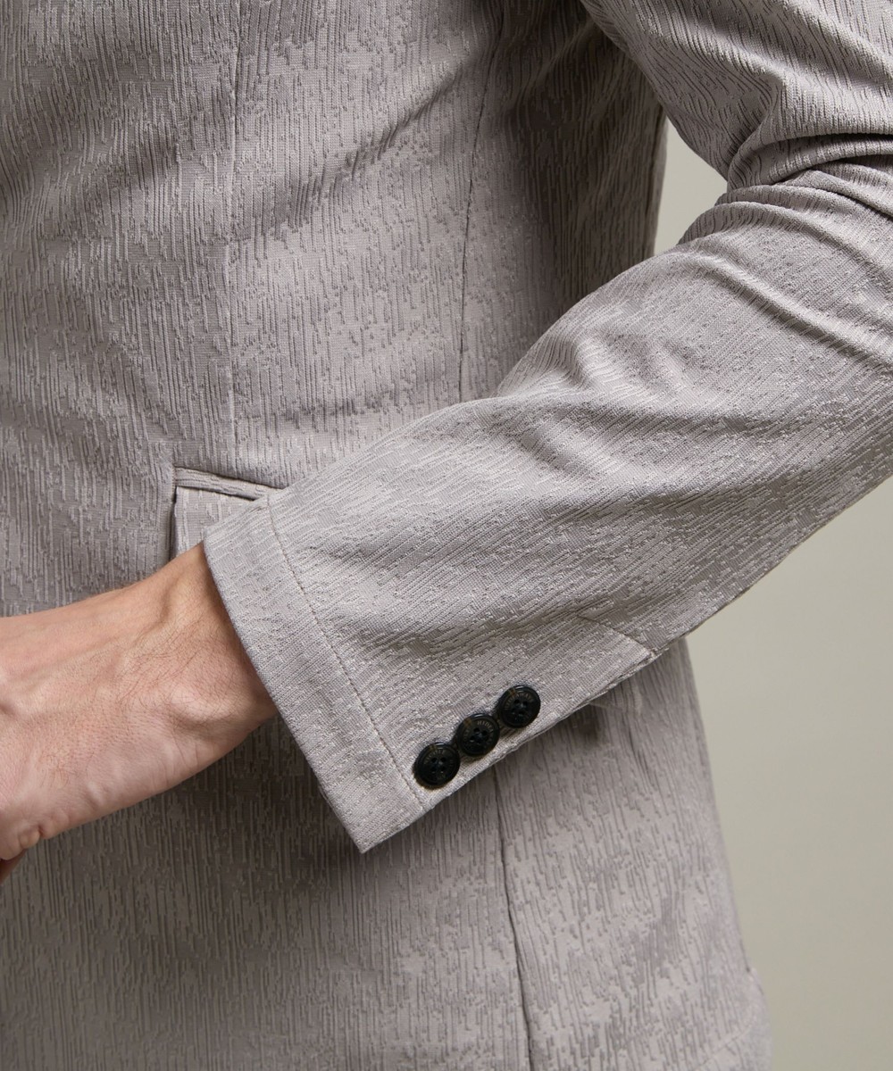 ランダムなストライプ柄が特徴的なポリエステルのカットソー地柄ジャカード素材を使用。