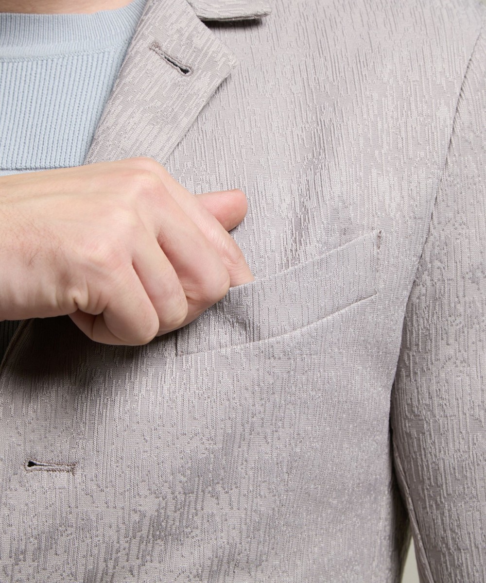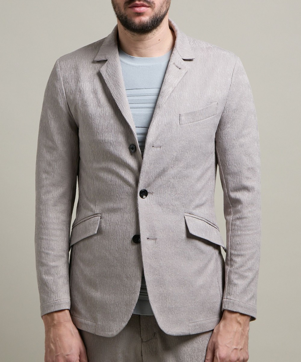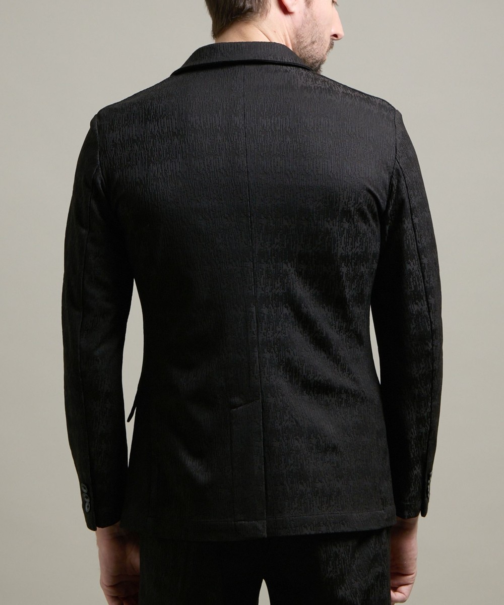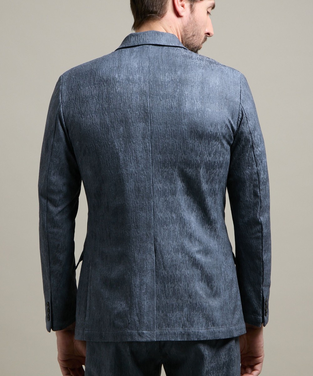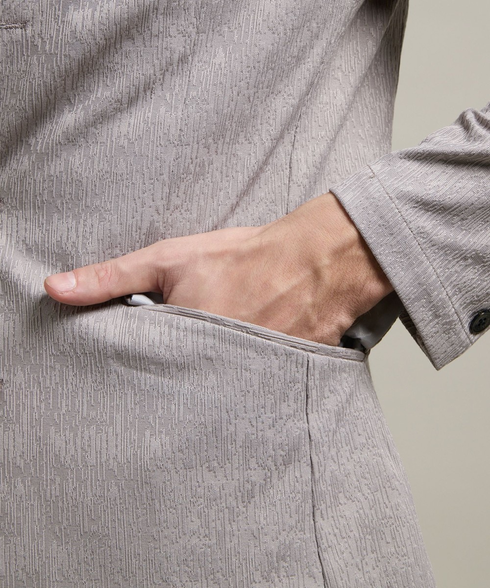 ランダムなストライプ柄が特徴的なポリエステルのカットソー地柄ジャカード素材を使用。