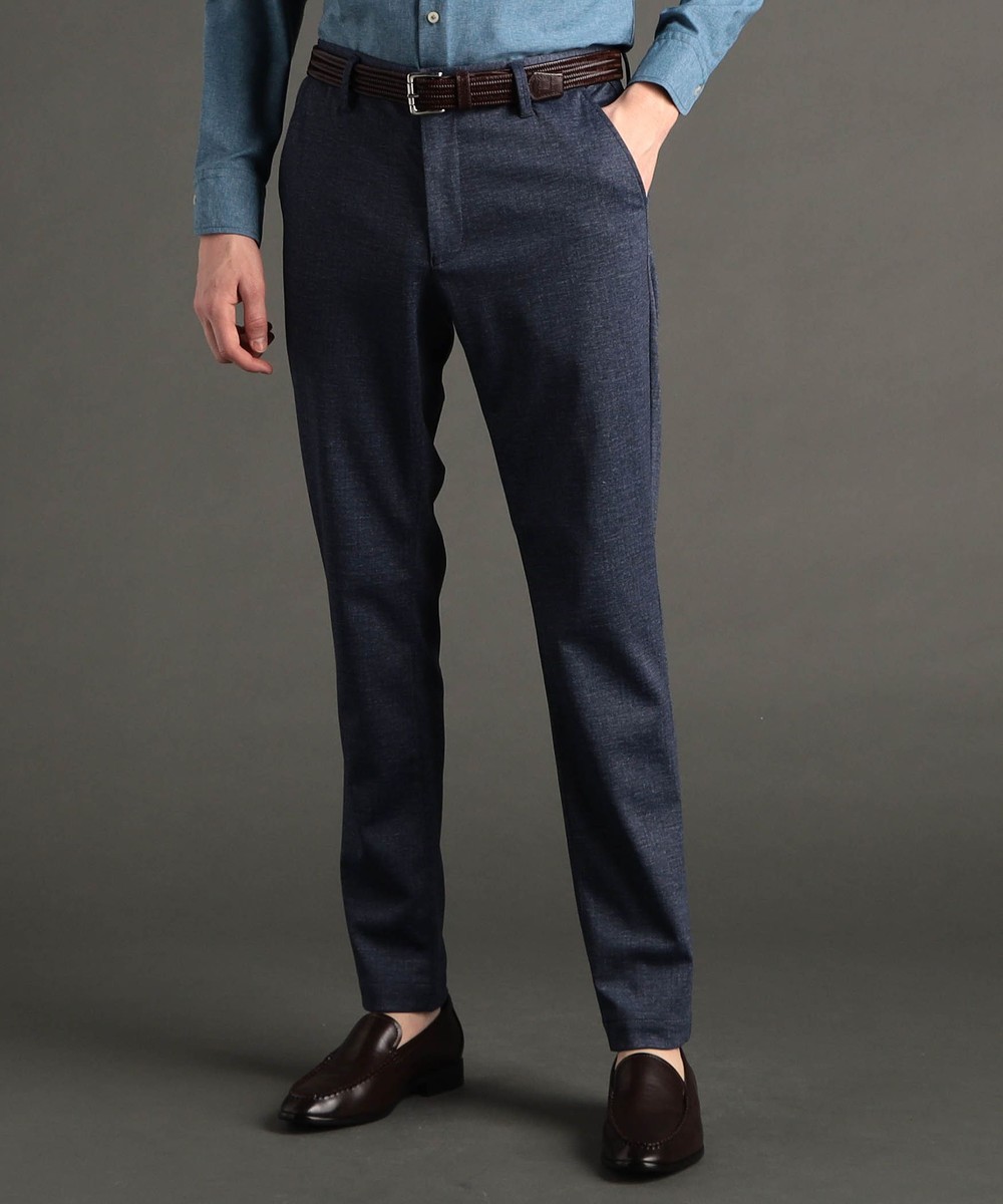 目付250g/?のベース素材にメランジプリントしたムッシュニコル別注素材。絶妙な<張り感とキックバック性>に加え、上品な光沢感を併せ持つベストセラー革新素材。