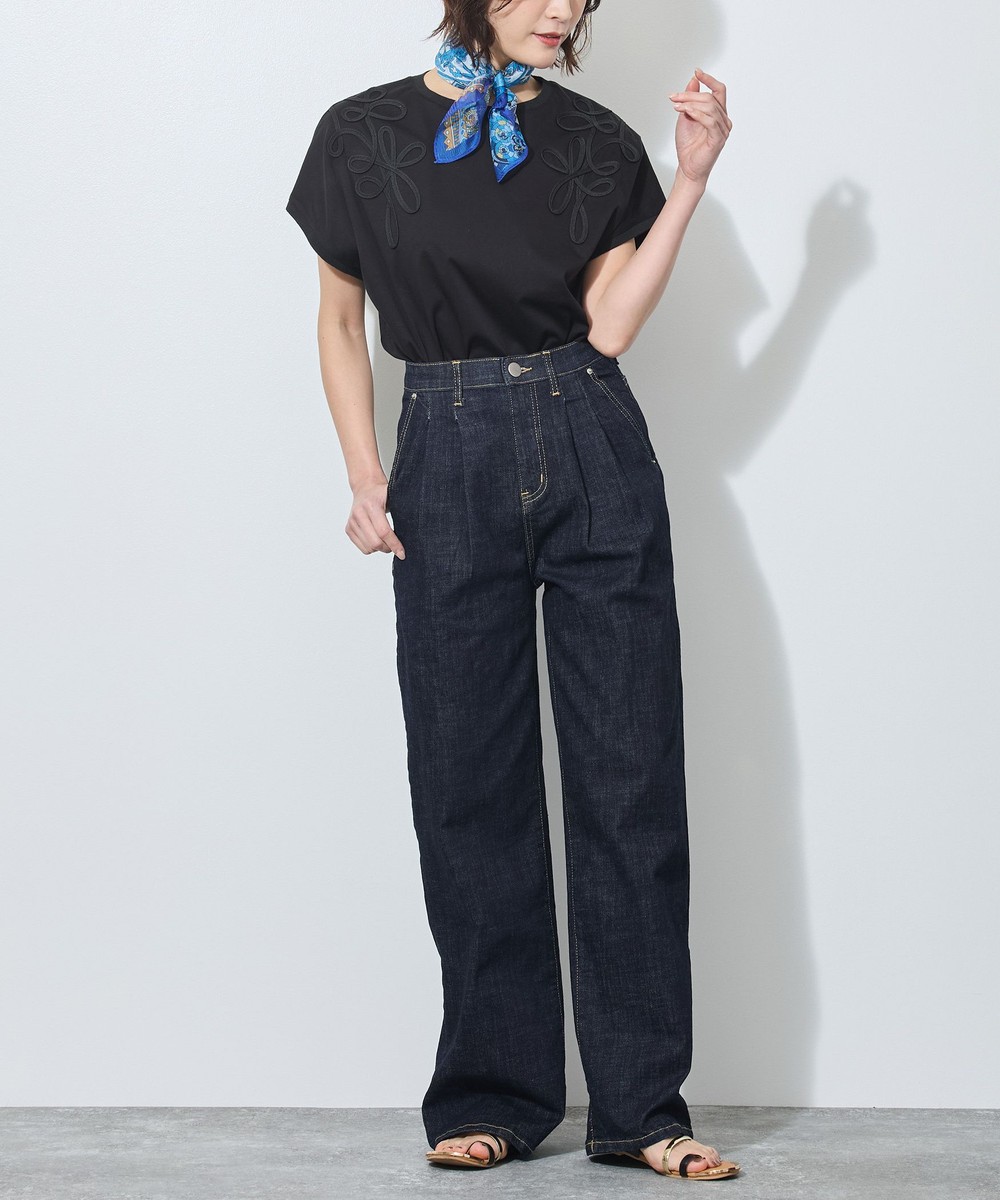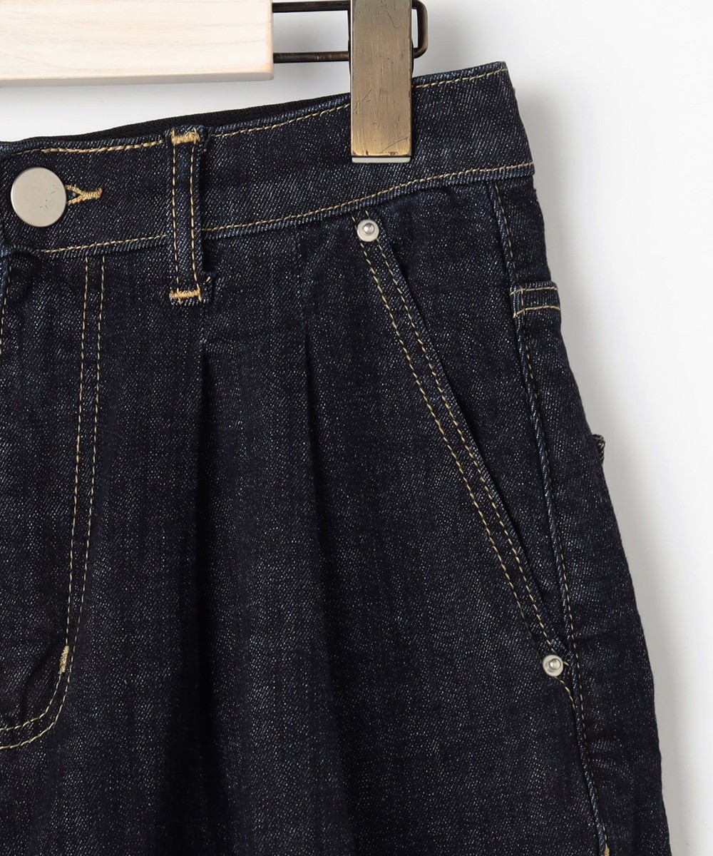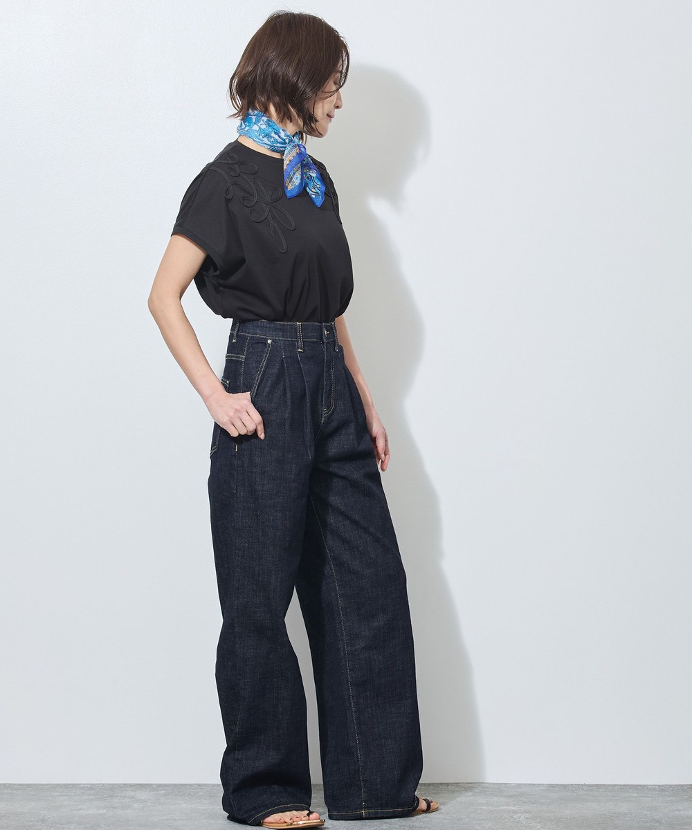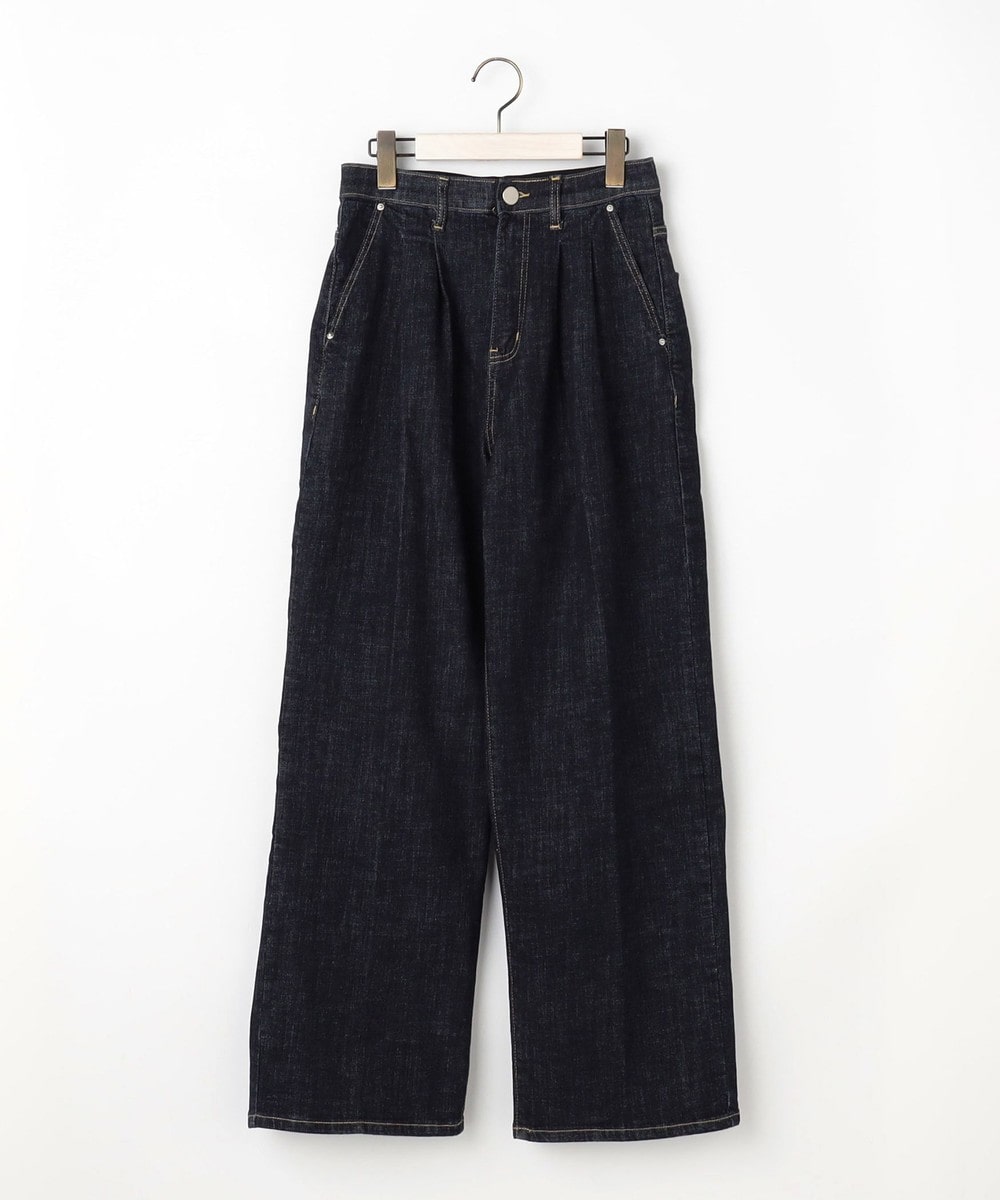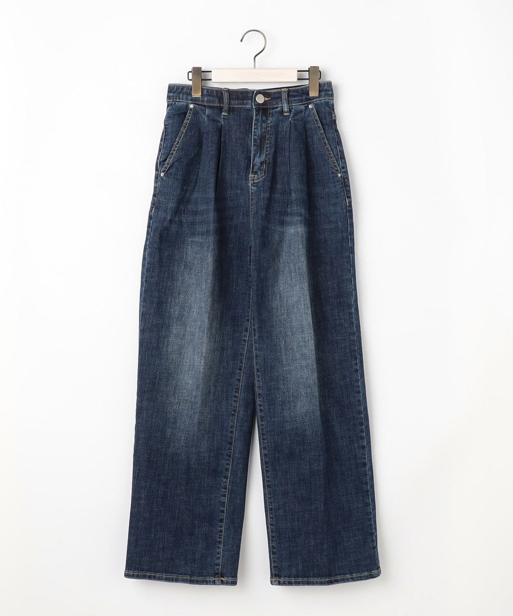 フロントに2本のタックが入ったワイドシルエットのデニムパンツ。