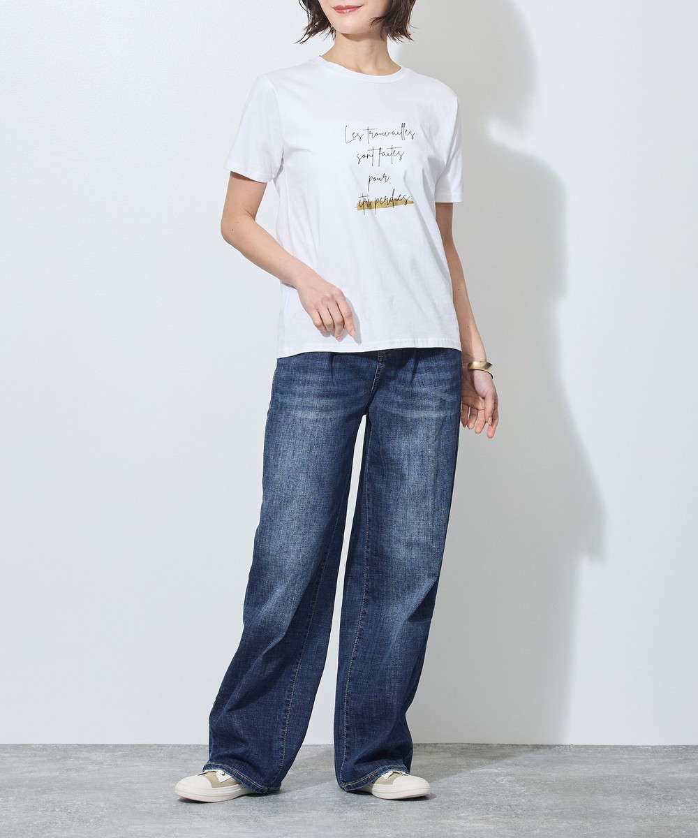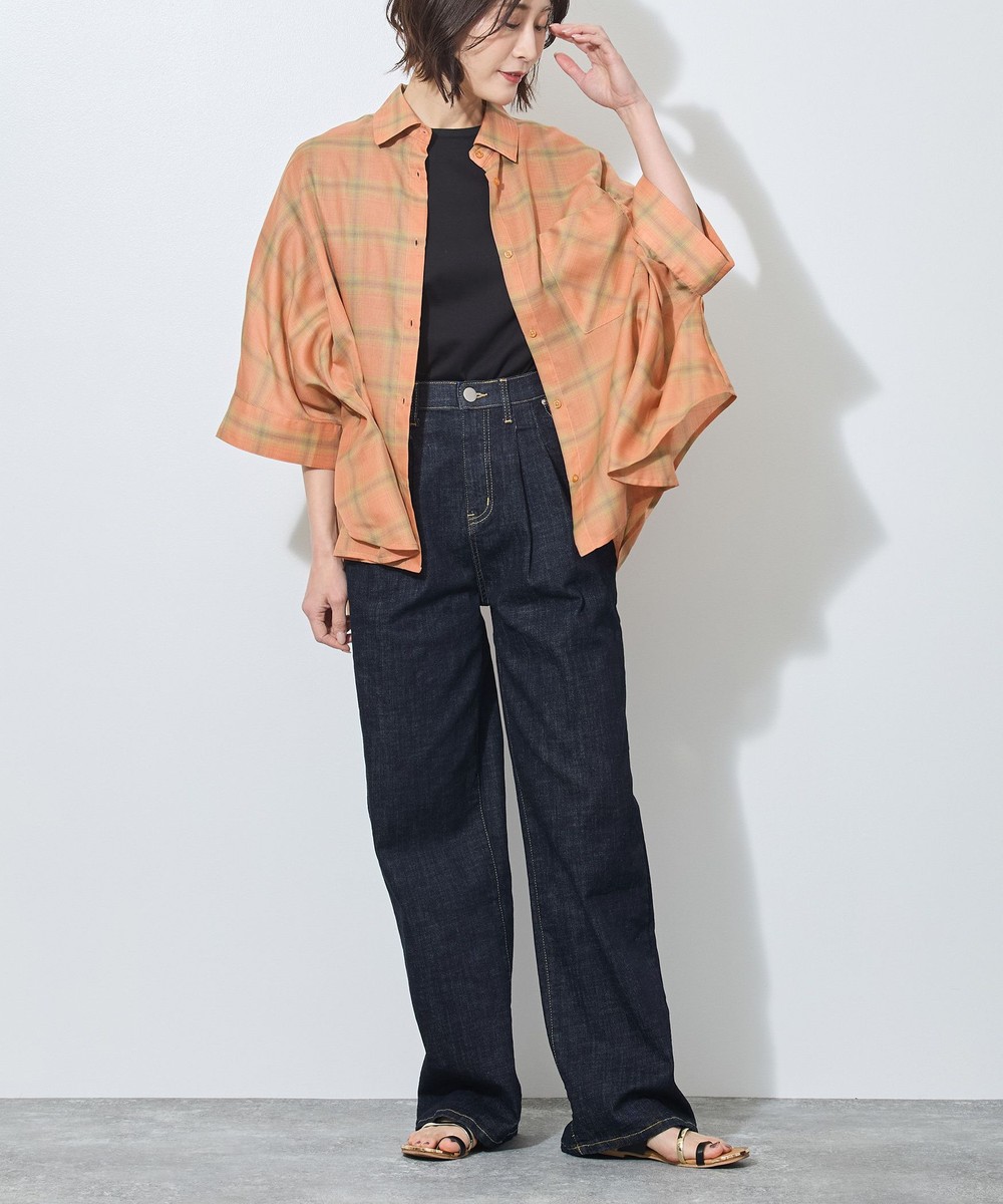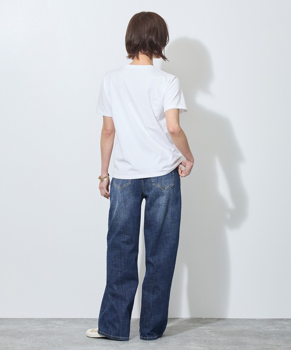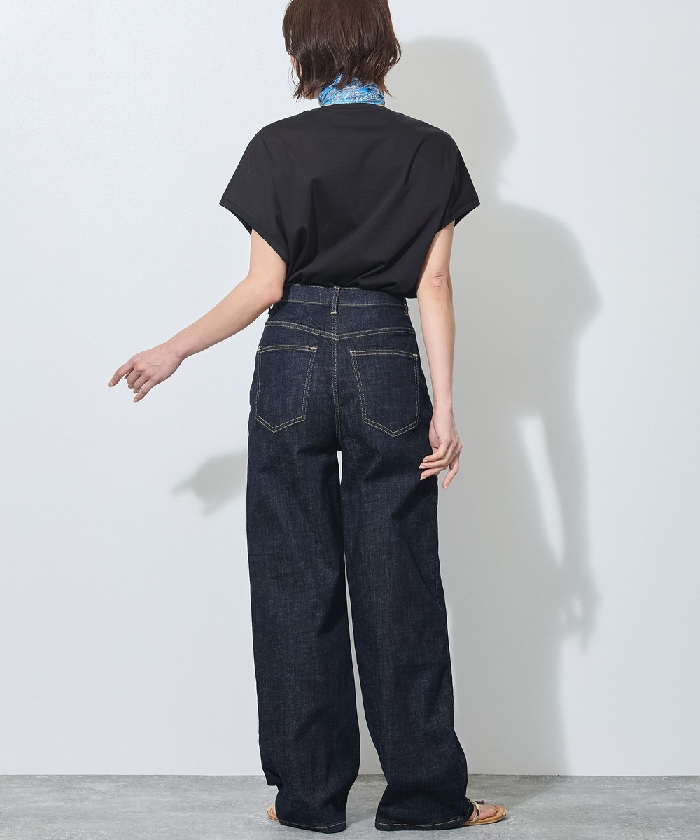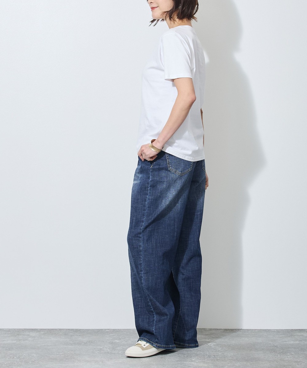 フロントに2本のタックが入ったワイドシルエットのデニムパンツ。