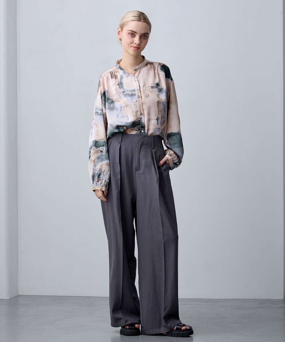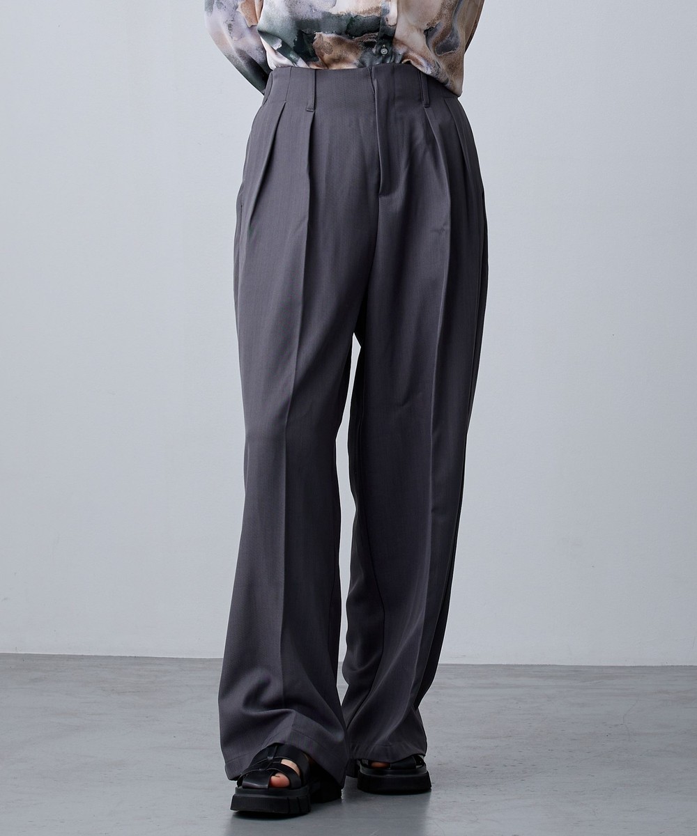 シンプルかつ脚周りが綺麗に見えるタックワイドパンツは春のマニッシュスタイルにはマストアイテム。