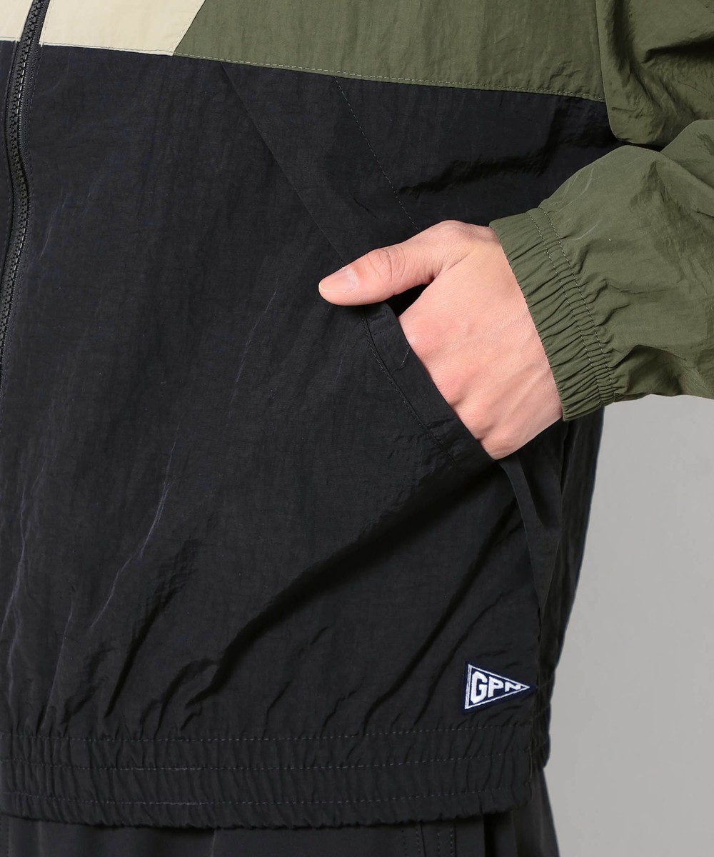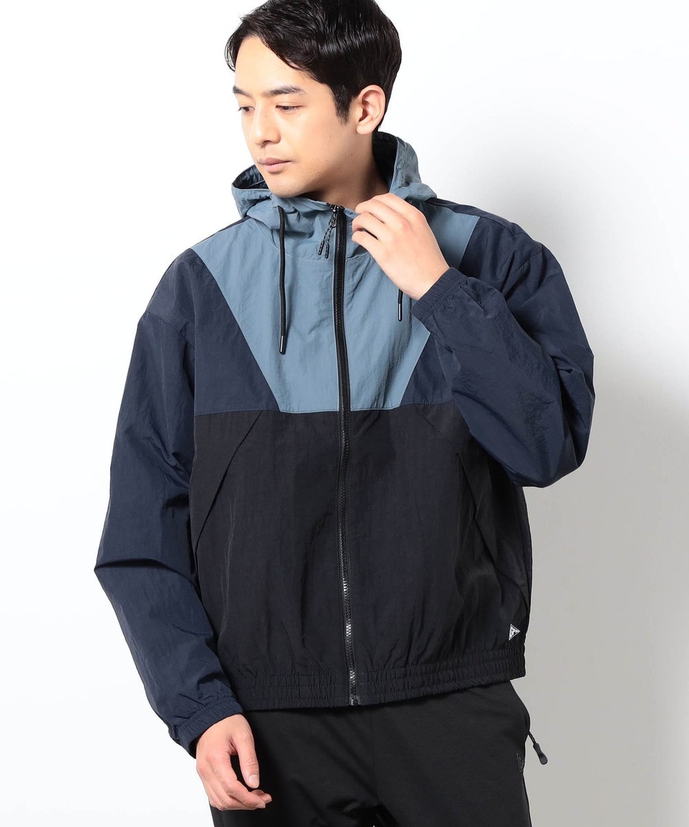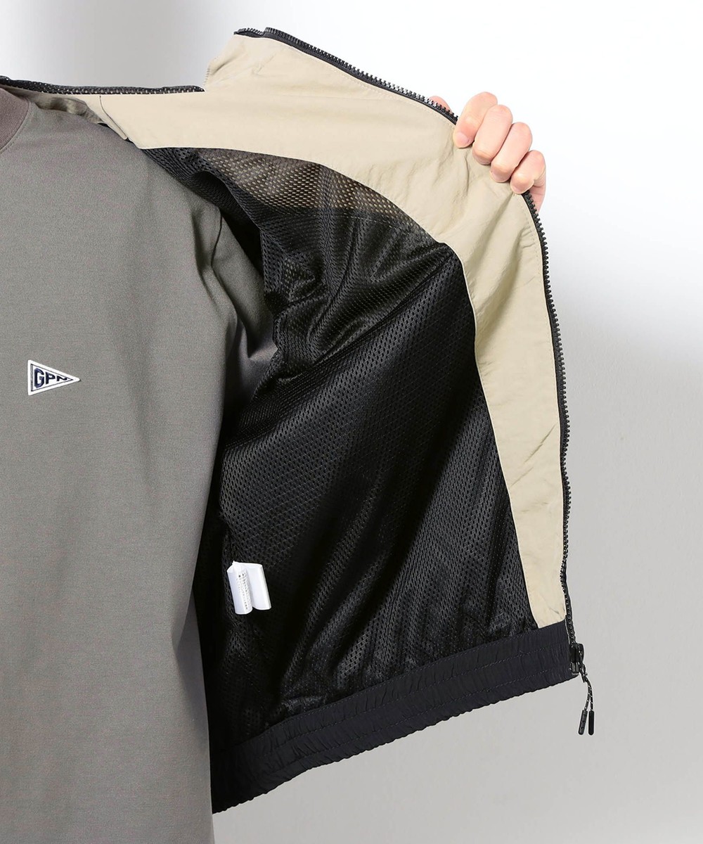マットで落ち着いた表情のフルダルナイロン素材を使用した、配色切り替えがアクセントのフーディブルゾン。