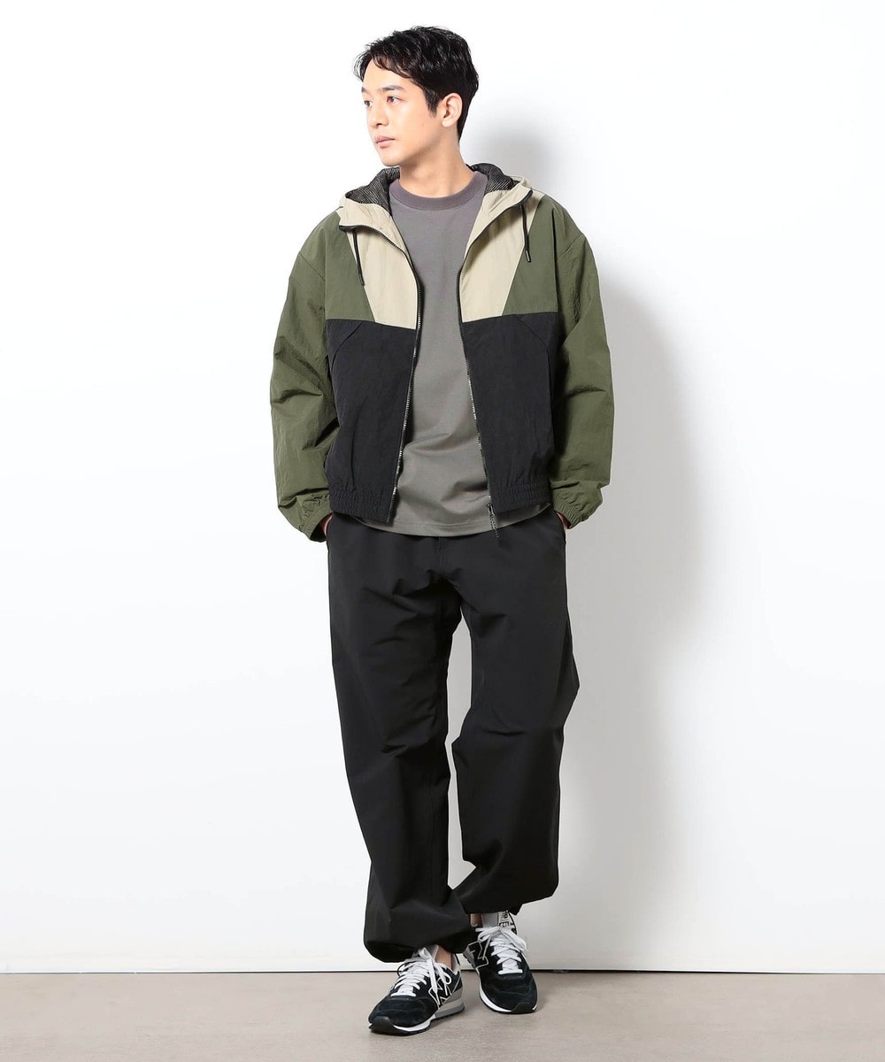 配色がデザインのアクセントになるため、インナーやパンツはシンプルなアイテムがおすすめ。