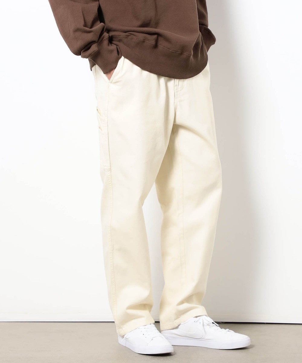ペインターパンツならではのディテールを残しつつ、ウエストはゴム入りのイージーパンツ仕様にアレンジ。