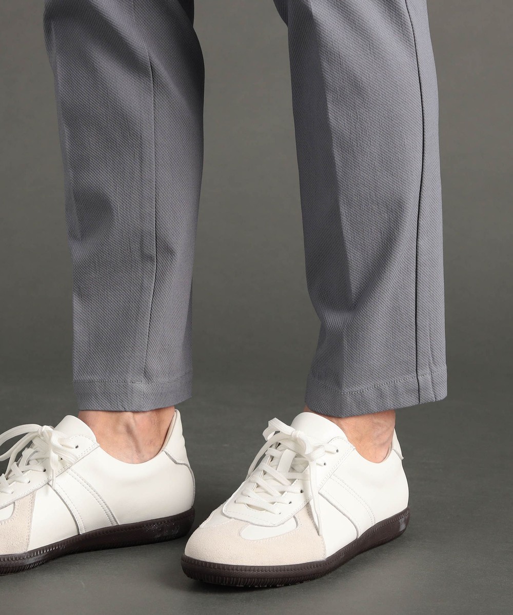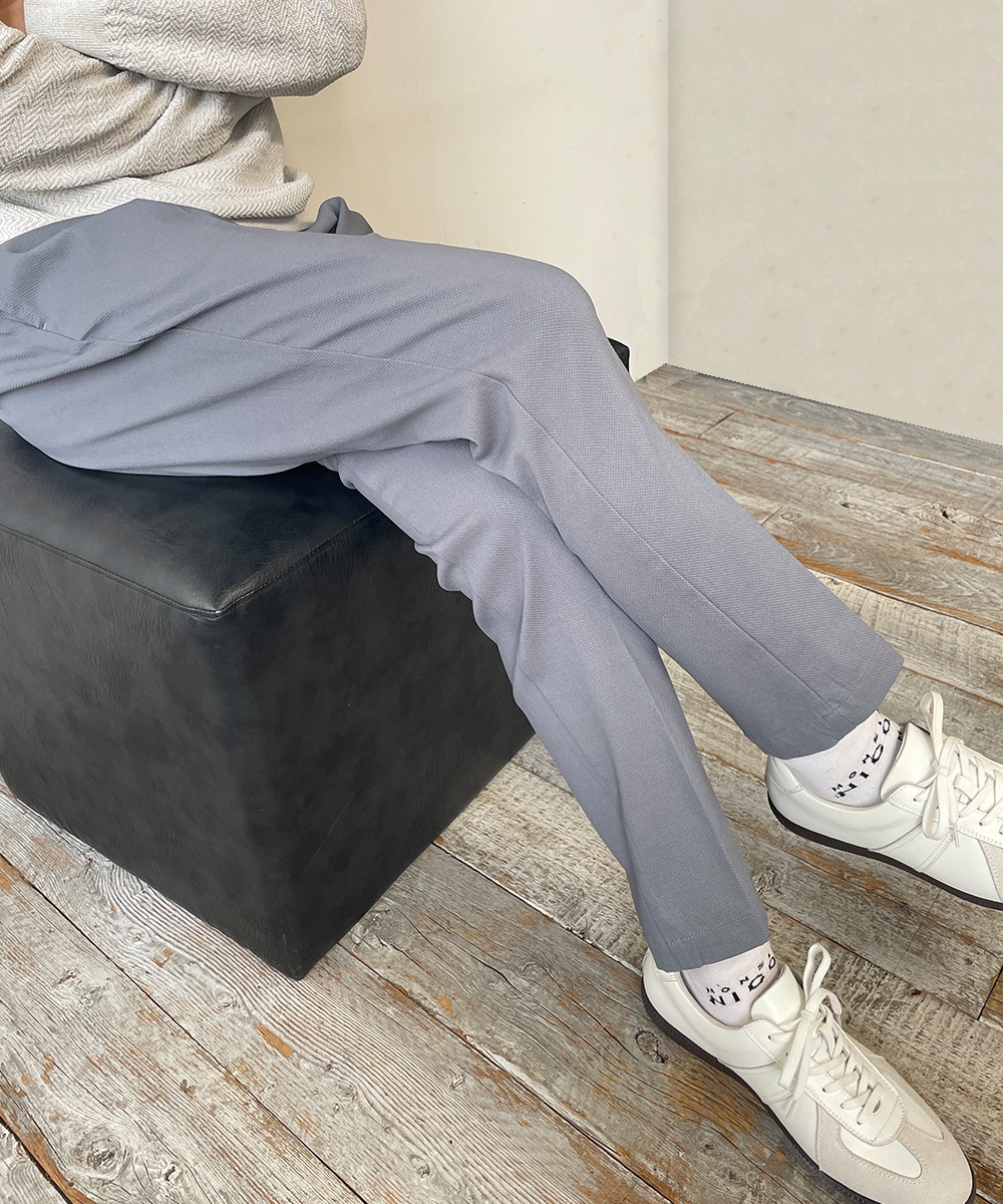 ウエスト部分が拡張するサイドシャーリング仕様のテーパードパンツ。