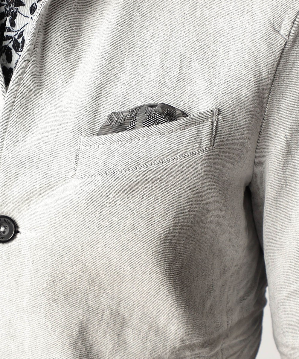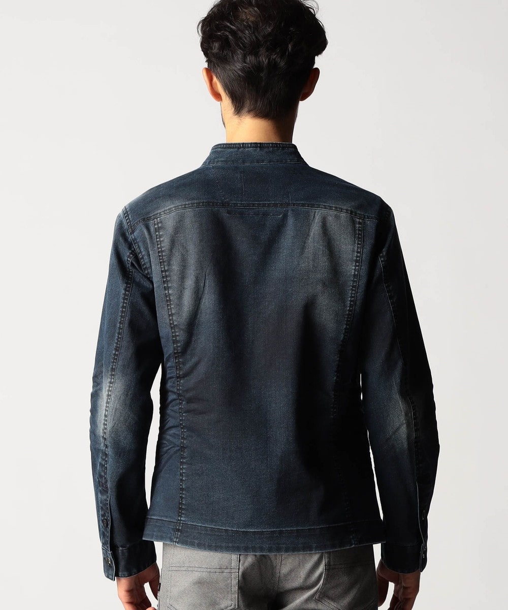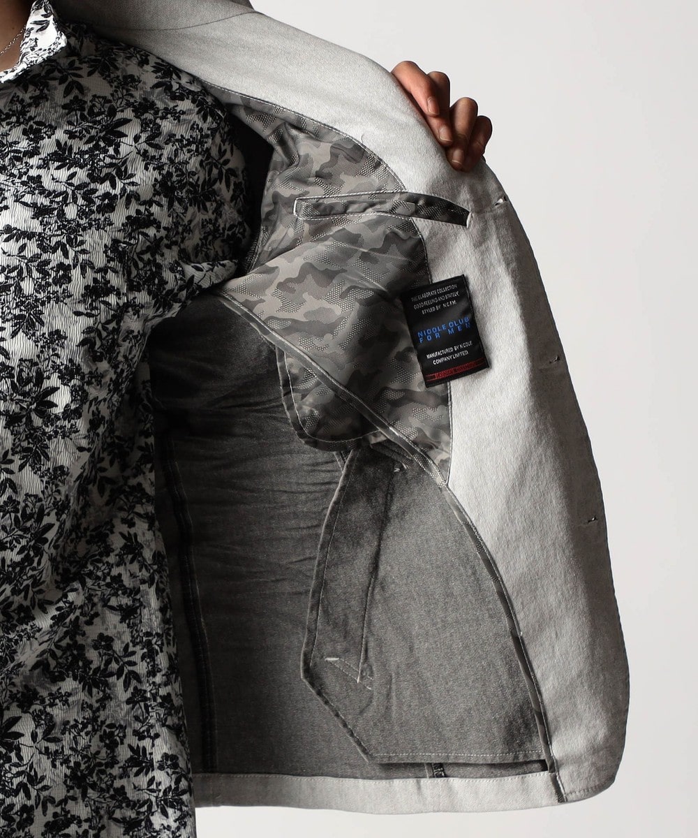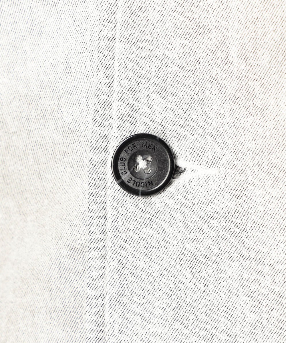 スタンド・イタリアンカラーのカヴァーオールジャケットと、ショートスタンドカラーのGジャンデザインのアラカルト展開。ジャケットは衿は折り返してもラペルとして綺麗に収まる設定、タブで釦止めが出来ます。フロントの一番下の釦は止める設定していませんのでご注意ください。Gジャンは今季新型、細身のシャープなシルエットと衿端にワイヤーを入れたショートスタンドカラーが特徴です。裏側に迷彩柄ジャカード裏地を使用してアクセントにしています。