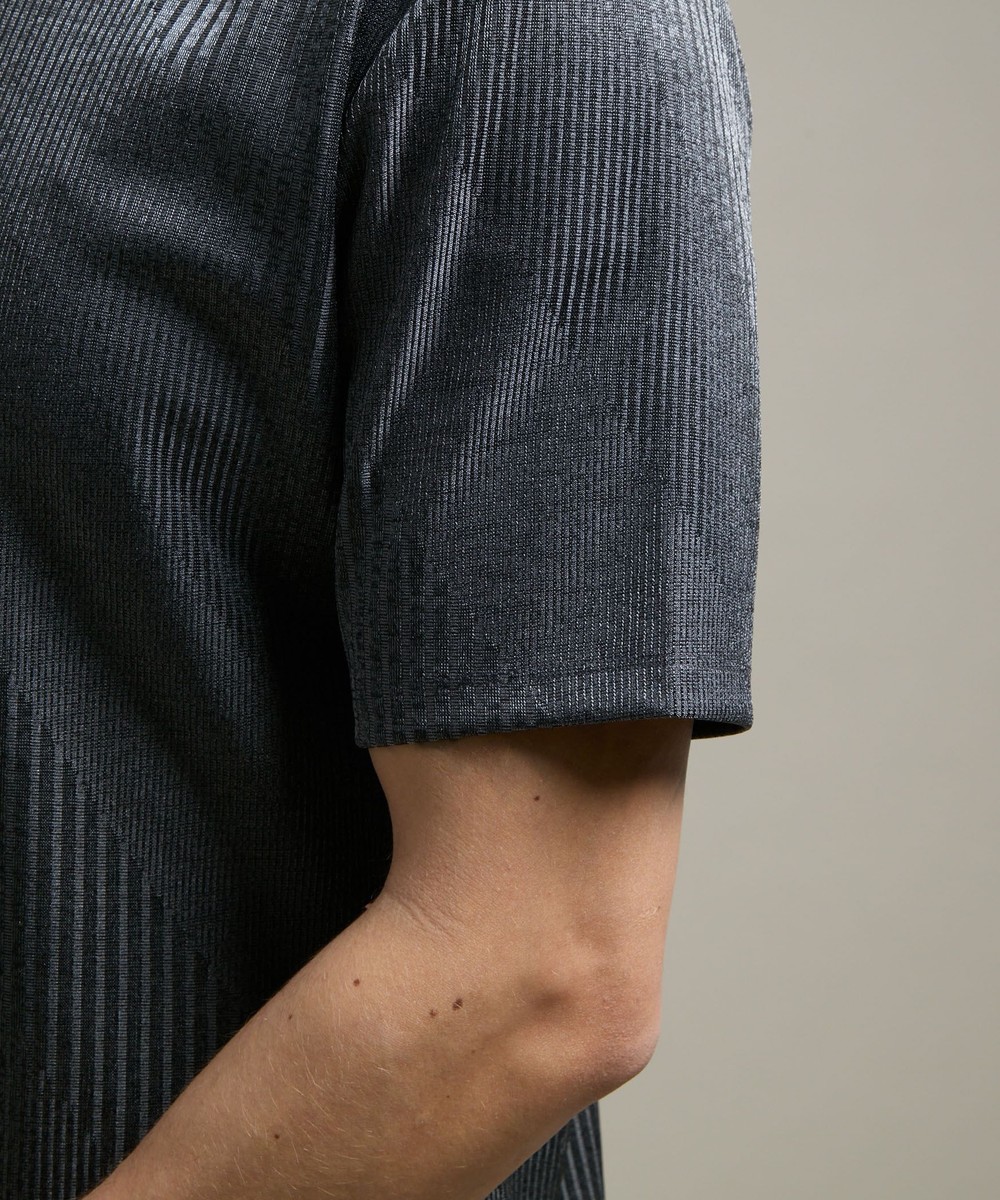 光沢の強いジャカードカットソー素材に薄いメッシュのボンディングを施した素材を使用。