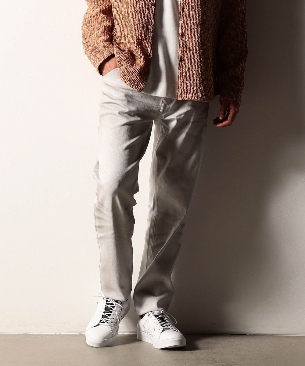 腰周りは少しタイトめに調整、裾口を広くしたテーパードストレートシルエットのすっきりした綺麗なシルエットです。