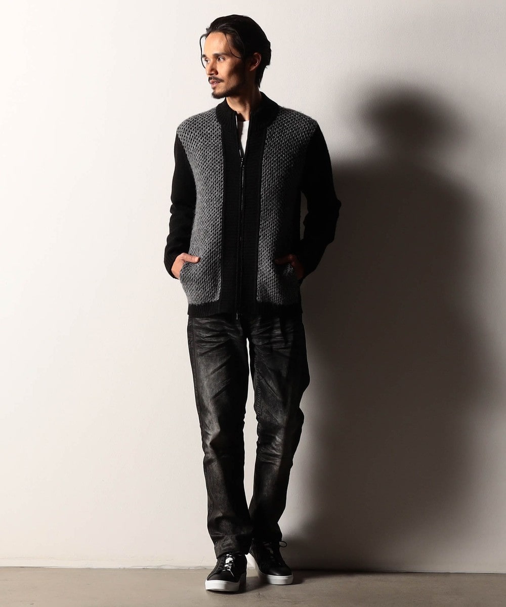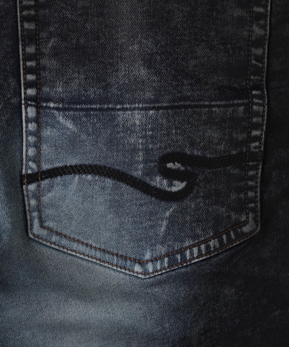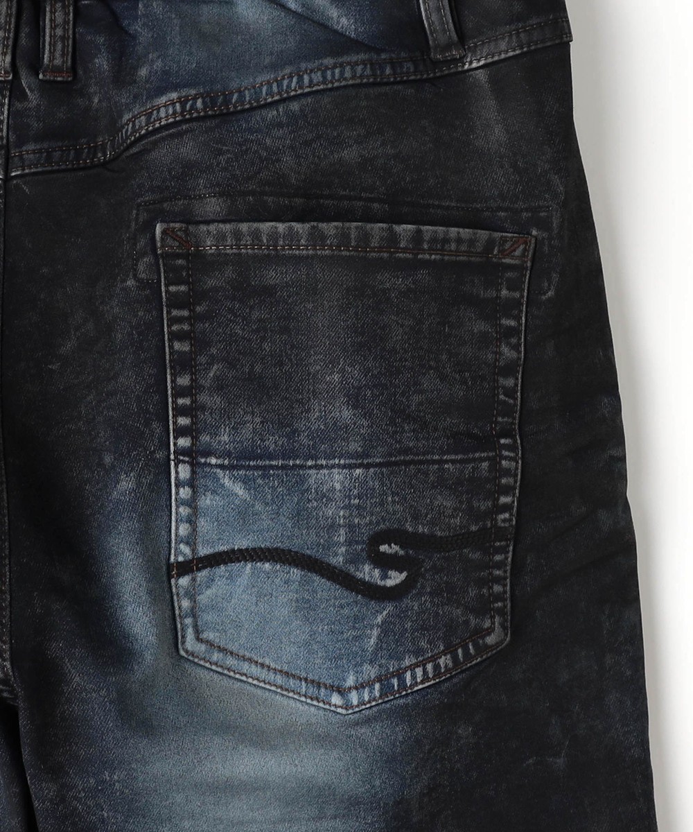 39チャコールは、硫化染めのジャージ調ブラックデニム素材。