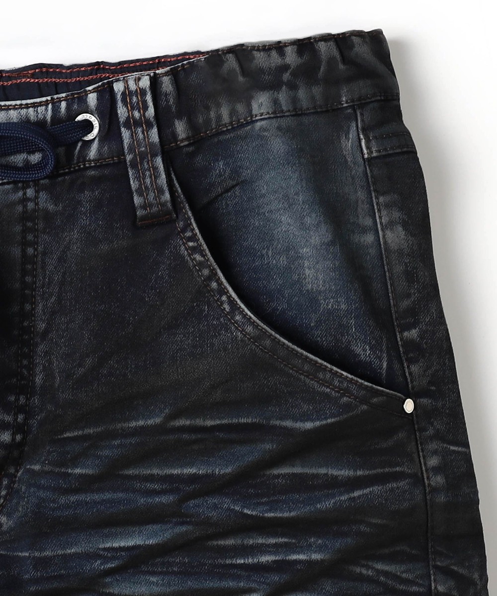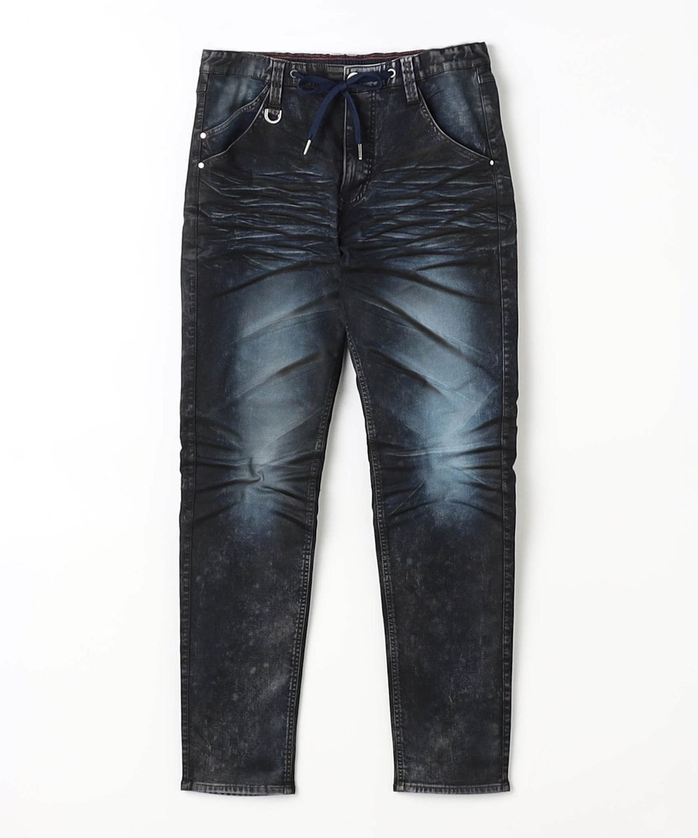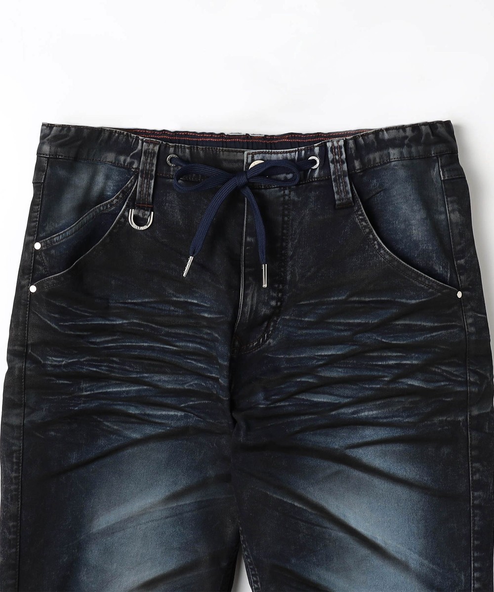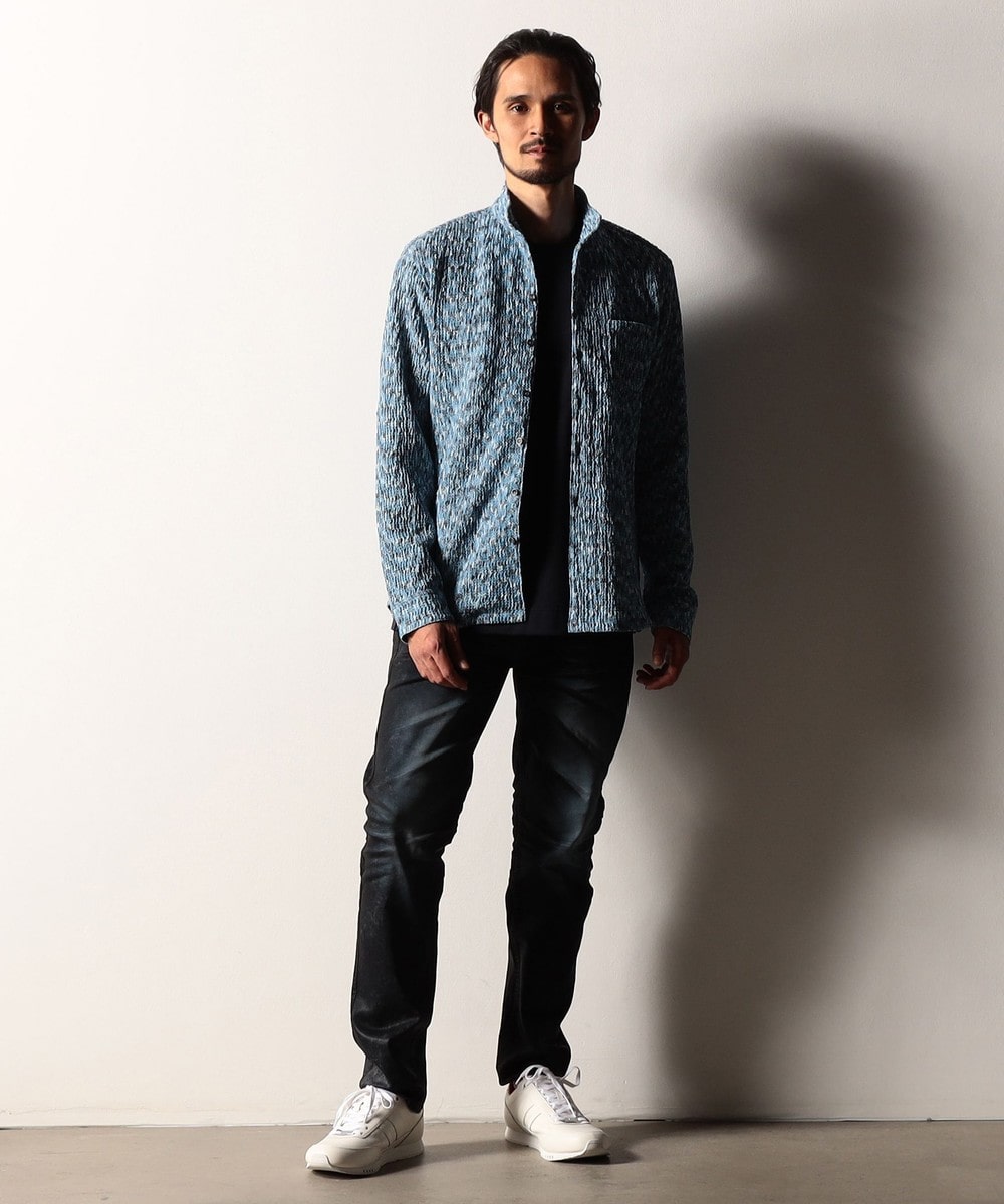 60ブルーと67ネイビーは、濃色インディゴ染めのジャージ調デニム素材。