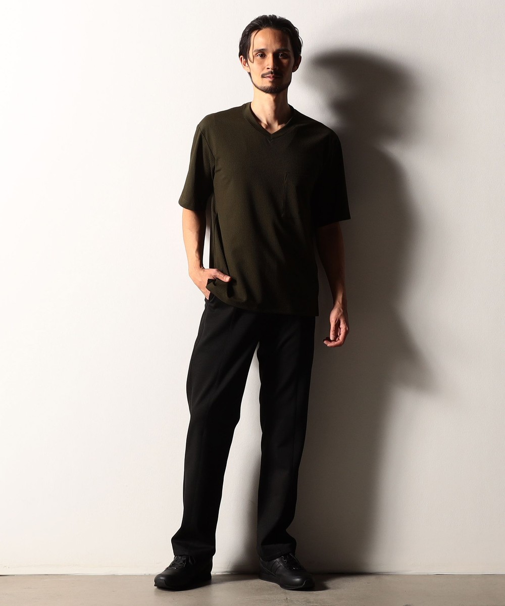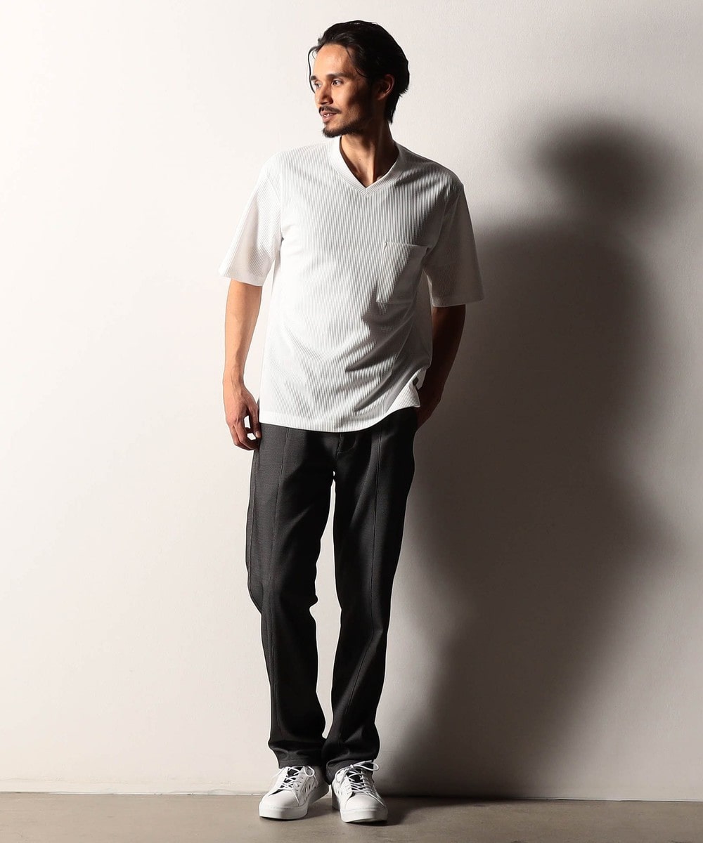 ナチュラルなストレッチ性を備えながら布帛のようなハリ感を併せ持つ次世代の国産サッカートリコット素材「Aircomfee?」を採用。