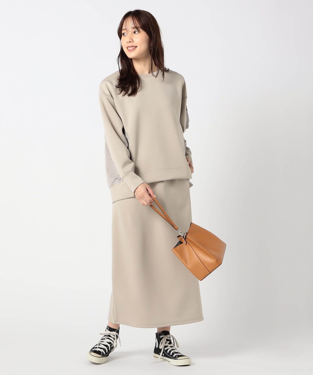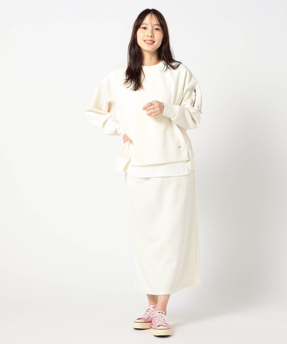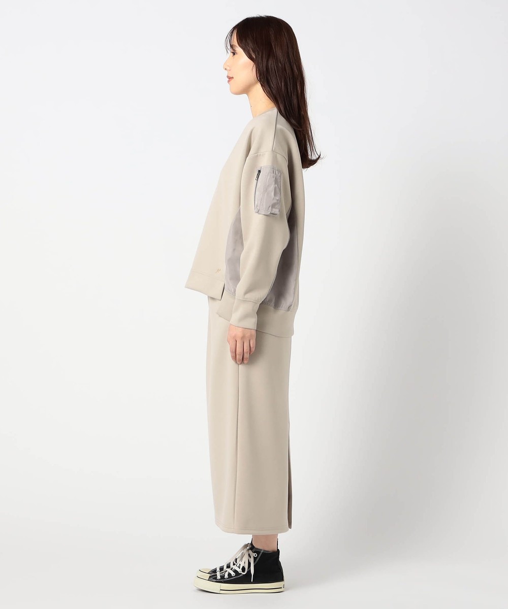 アクセントになるMA-1ポケットが付いたトップスに、シンプルなスカートをセットにした、日常使いに最適なセットアップです。
