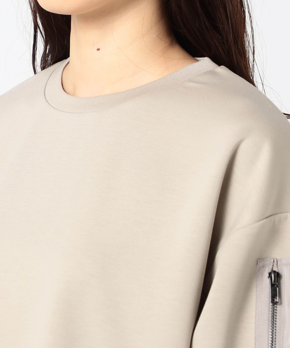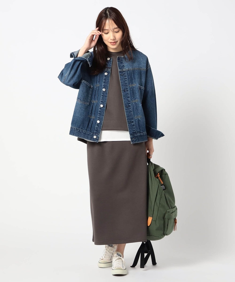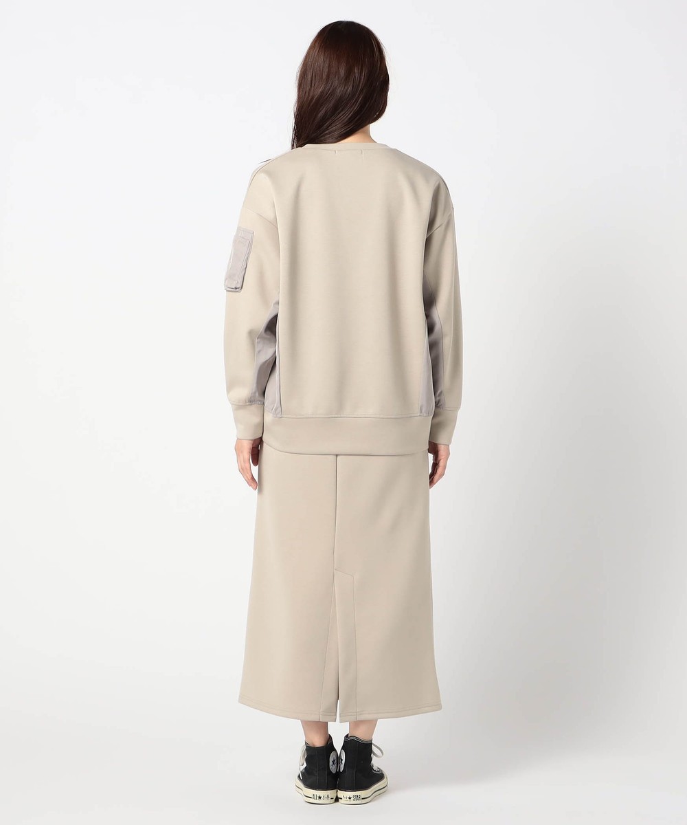 アクセントになるMA-1ポケットが付いたトップスに、シンプルなスカートをセットにした、日常使いに最適なセットアップです。