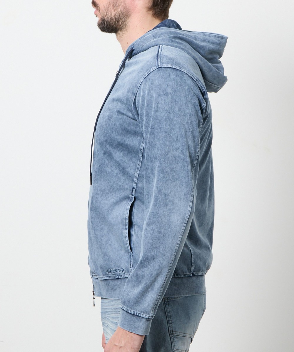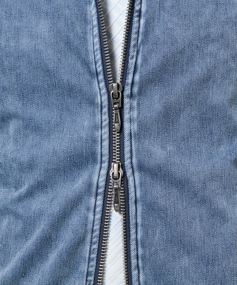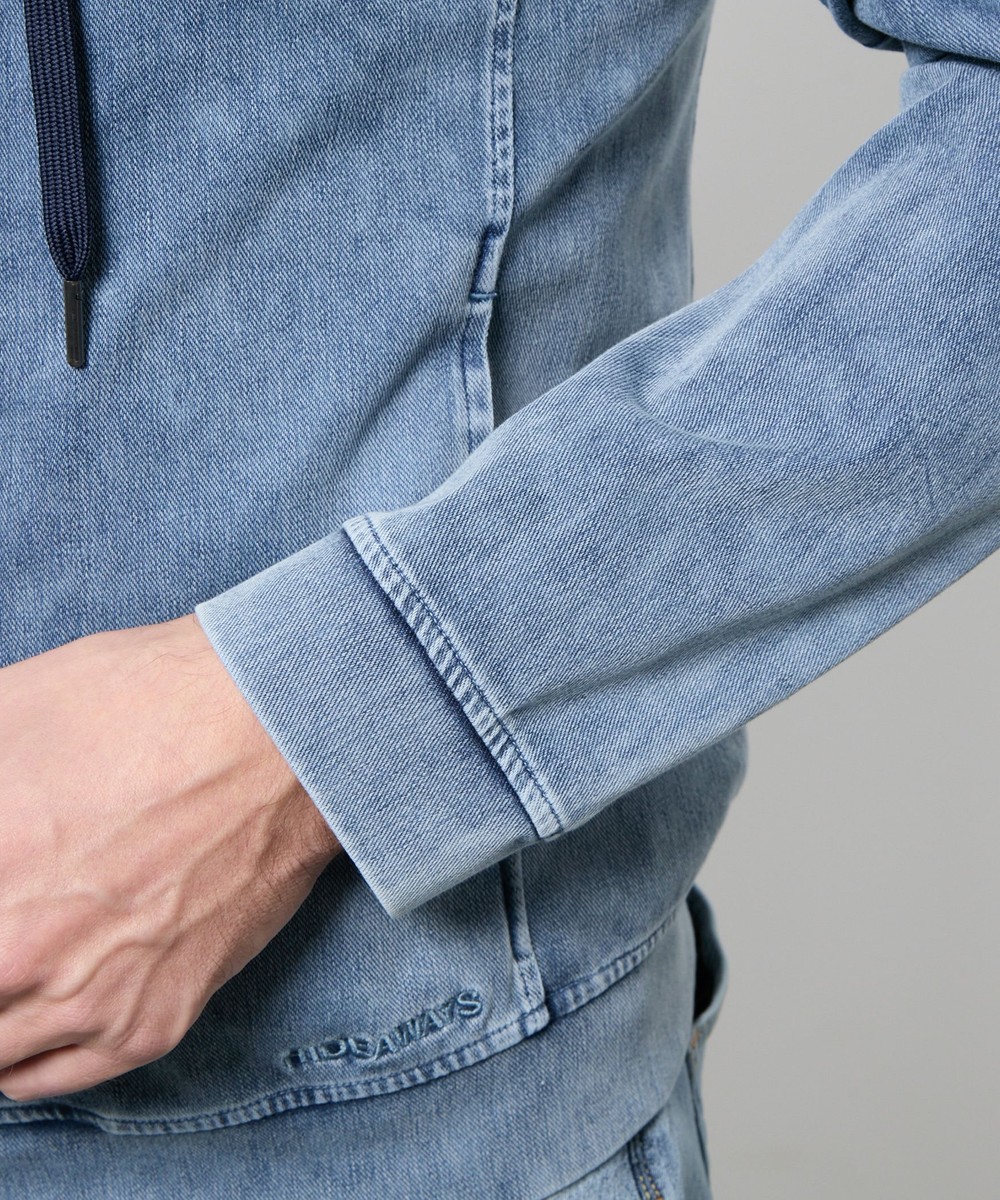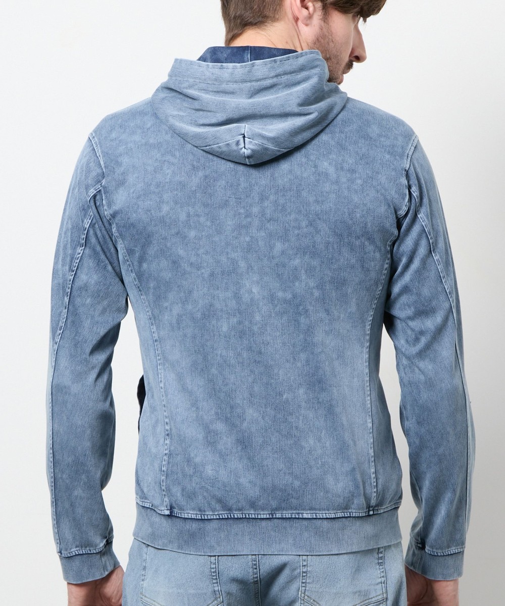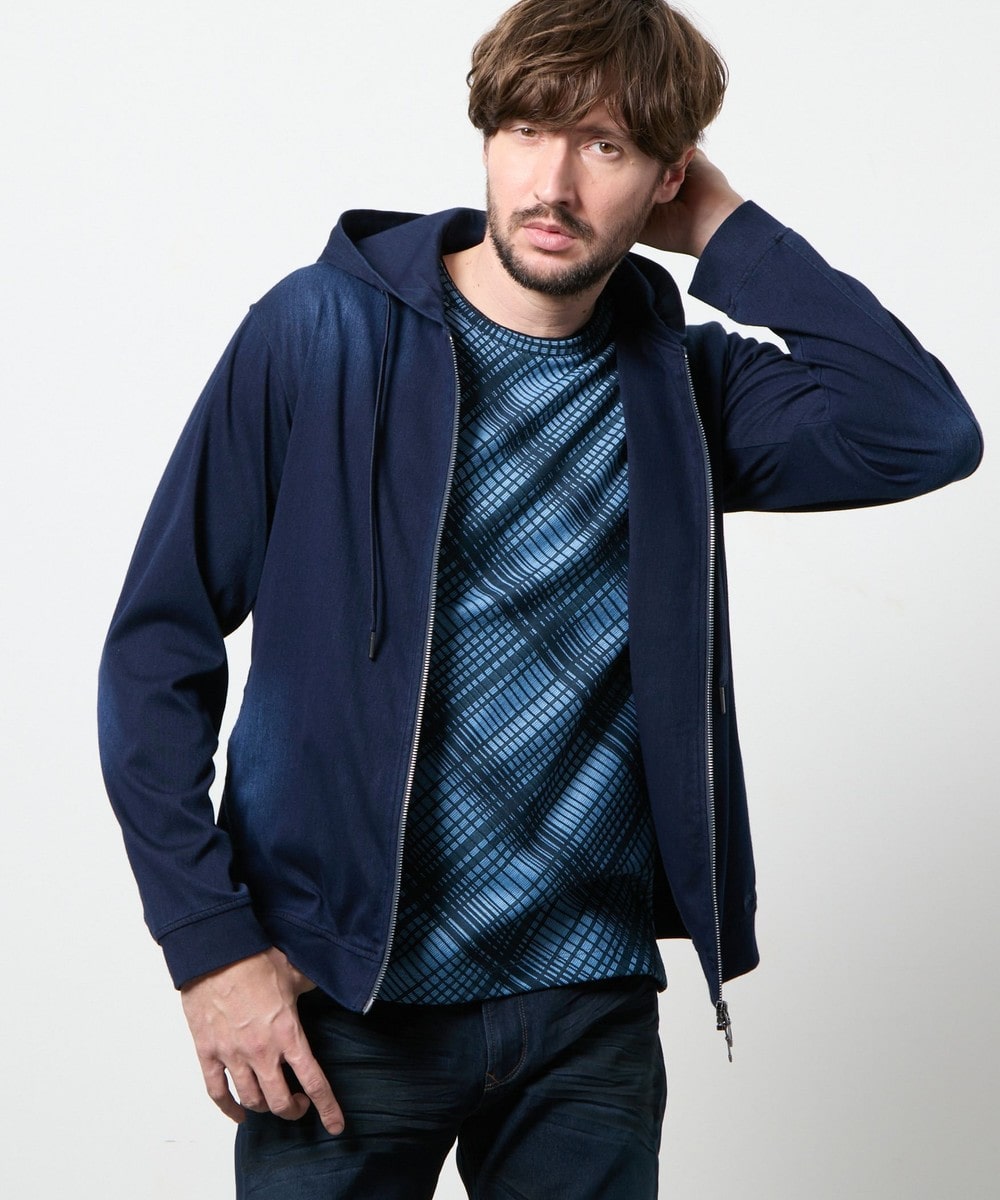 一重のジップアップパーカー。細腹をとり、袖も2枚接ぎにする事で普通のパーカーとは一線を画す綺麗なシルエットに仕上げています。切替を活かしたシームポケットはスッキリしたデザインで、左裾にブランドロゴの同色刺繍を入れています。フロントの逆開ファスナーや、フードを2重にする事で立ちが良く小顔見え効果も図っています。春から初夏に向けてTシャツの上に羽織るのに丁度よい肉厚感とサイズ感で、上にアウターを着用しても着ぶくれしないスッキリしたシルエットです。