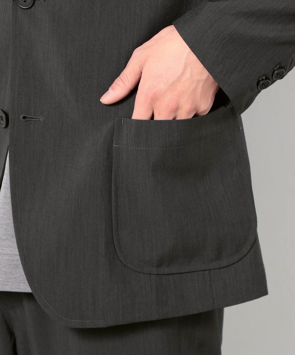 ウエストの絞りを抑えたトラッドテイストの2つ釦デザインに、パッチポケットを採用。