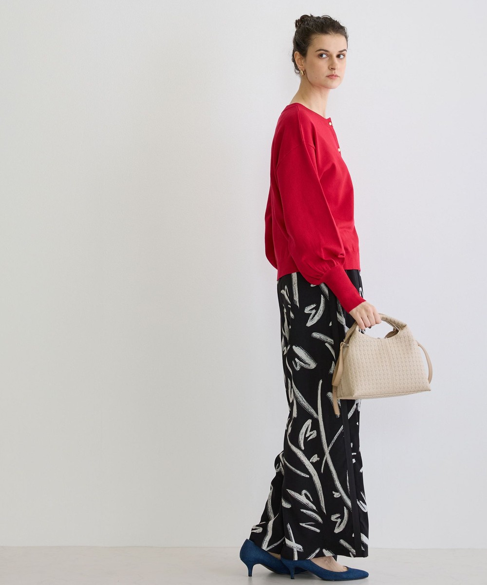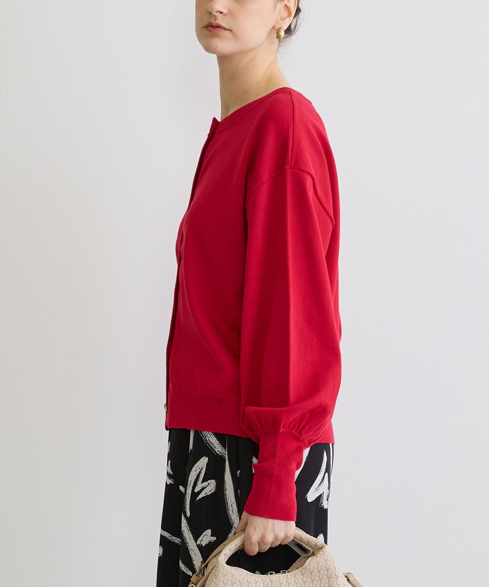 金ボタンがアクセントなので、ニットだけでもコーディネートの主役として、前をあけてレイヤードスタイルにもピッタリ。