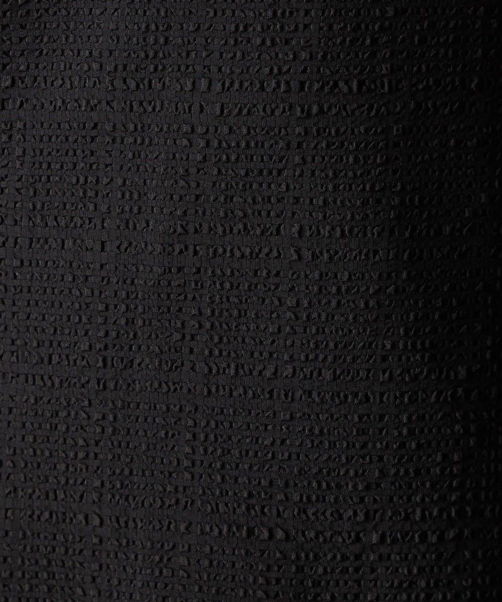 ポリエステルのシアサッカー素材。チェック柄に織られたドビー組織になります。ポコポコした表面のリップル感を抑えて綺麗に見える様に仕上げています。エアリーな軽とキックバックの効いた程良いマルチストレッチ性があり、シワになりにくく乾きやすいので、家庭洗濯で取り扱いが楽なイージーケアが特徴です。