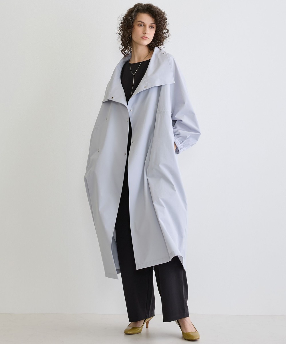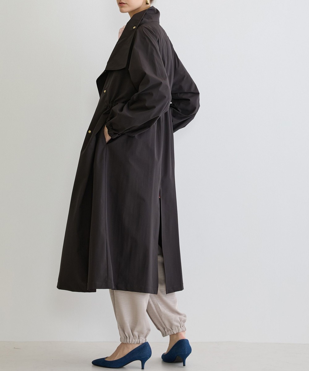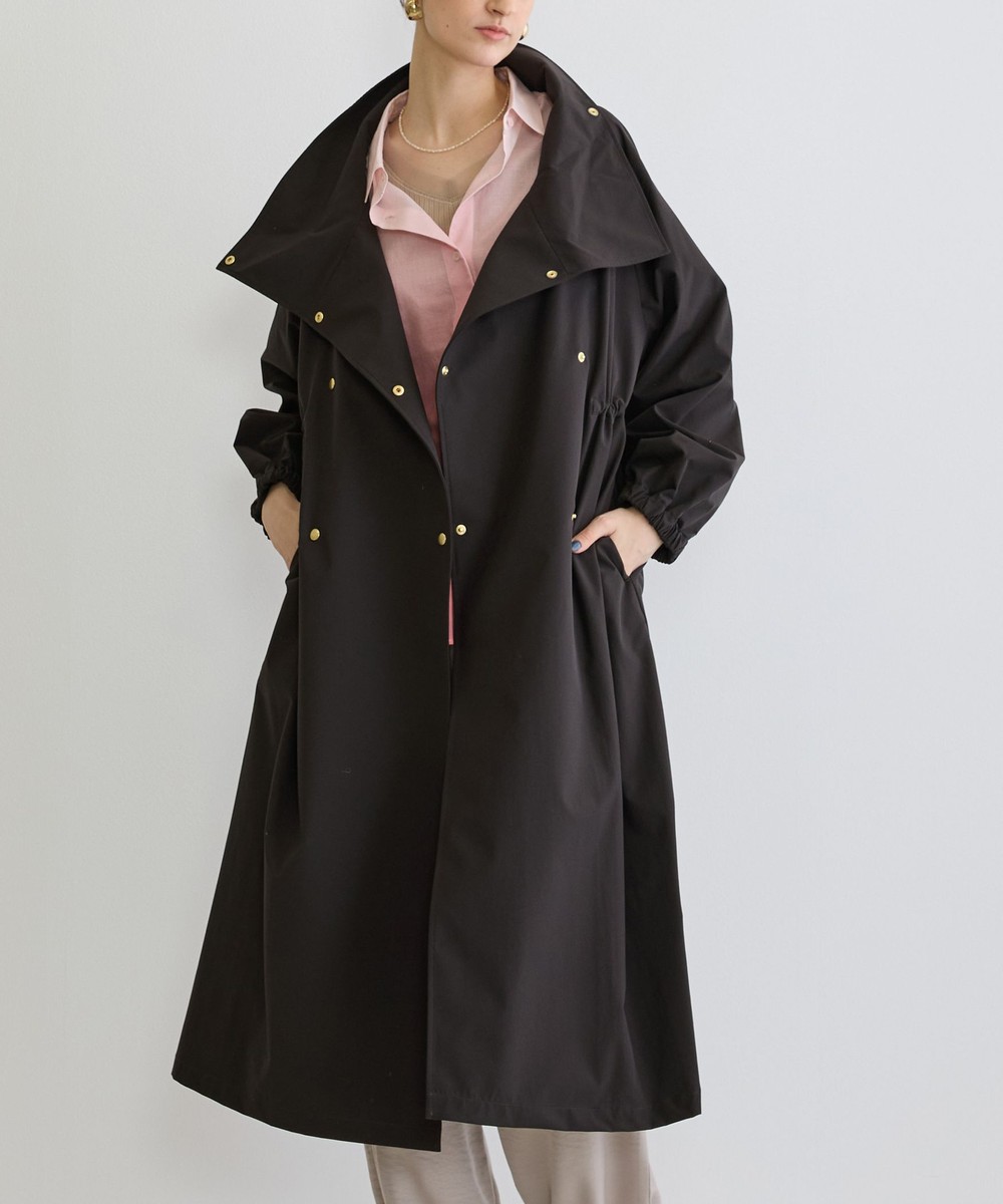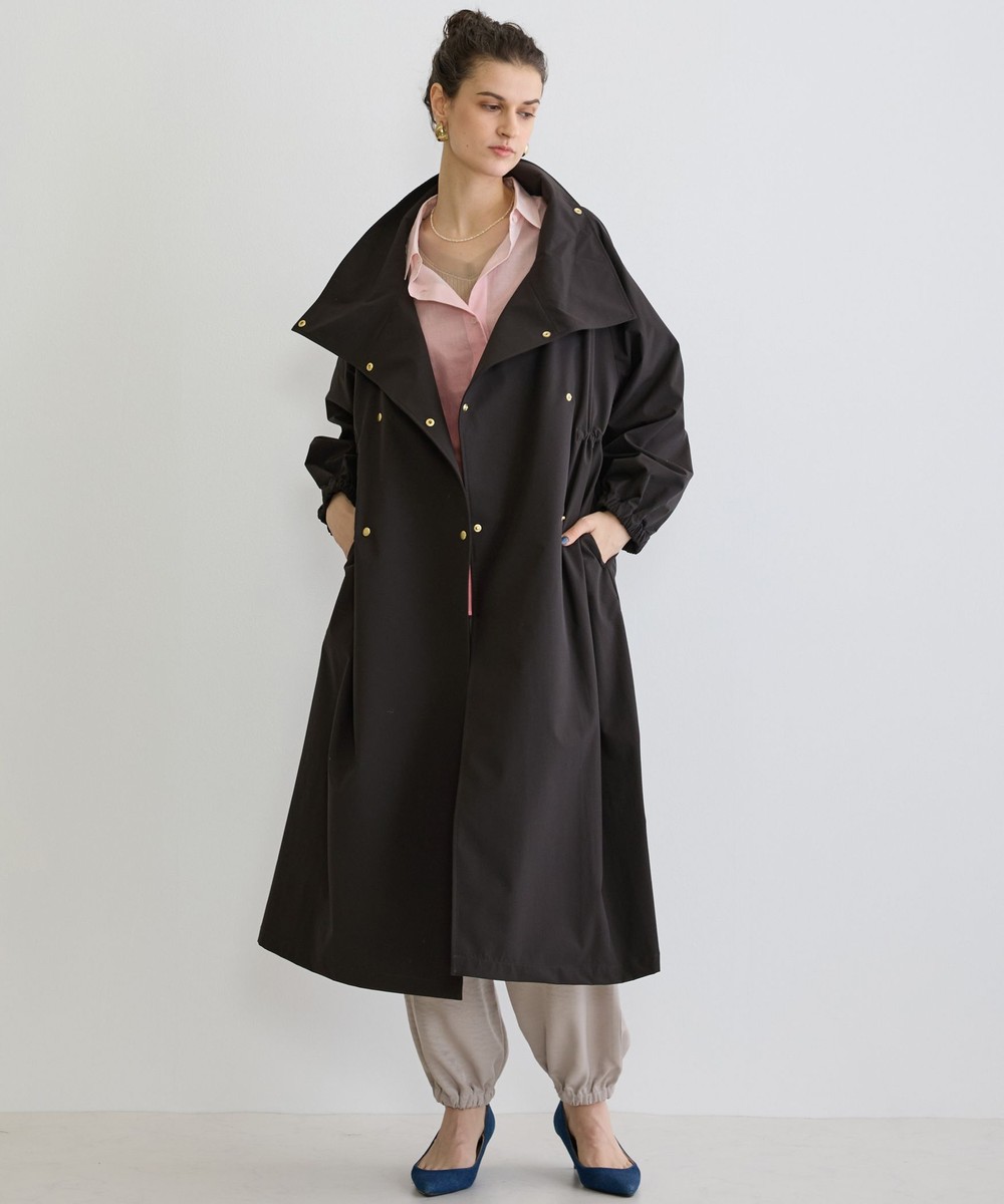 トレンド感あるスタンドコート、軽量でさらっと羽織れます。